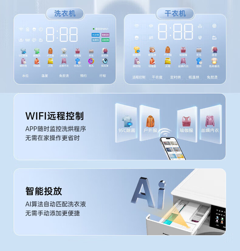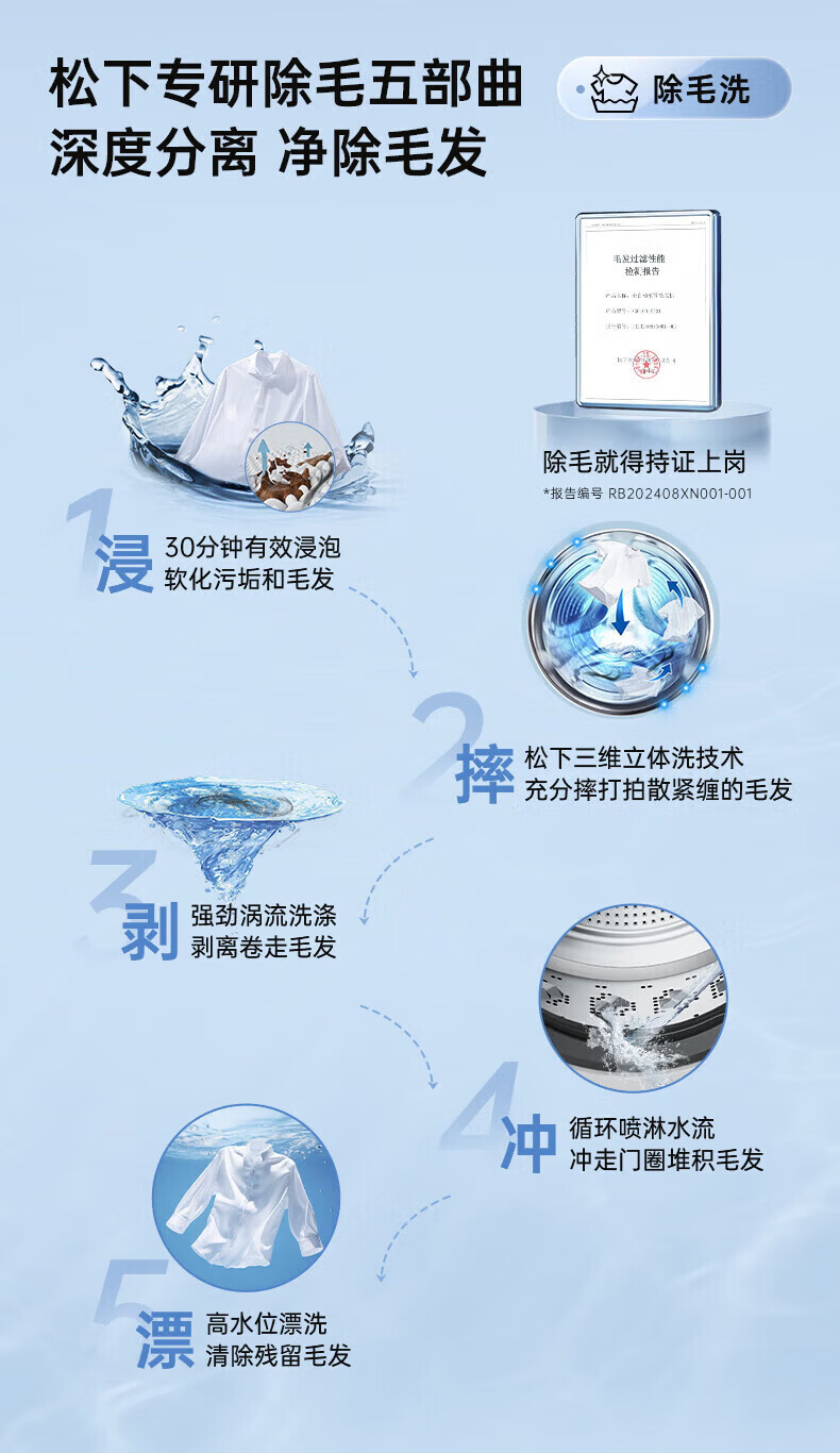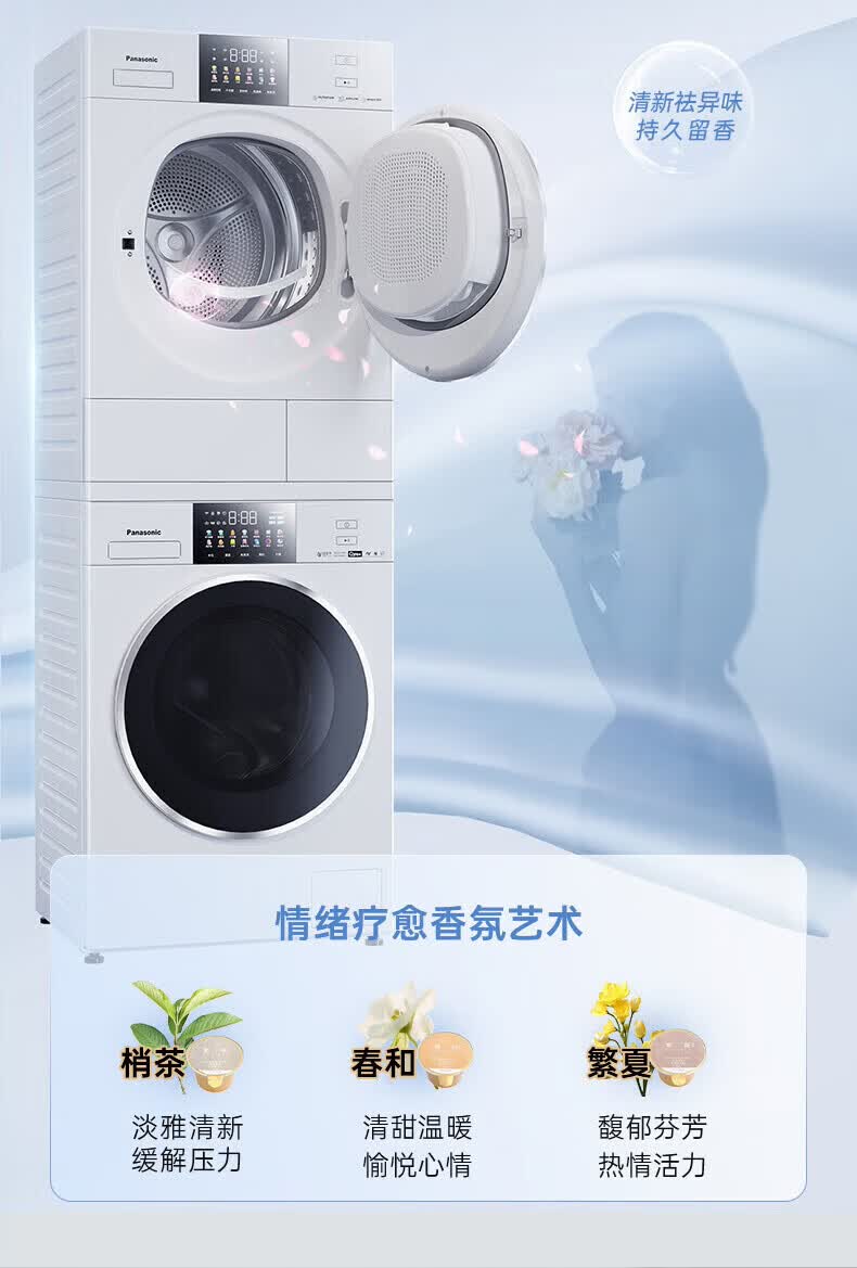 松下(Panasonic)白月光5.0轻奢洗烘超薄套装10+10公斤变频热泵烘干机家用全自动滚筒洗衣机除菌除螨静音大容量嵌入式彩屏 N531T+N531TR洗烘套装