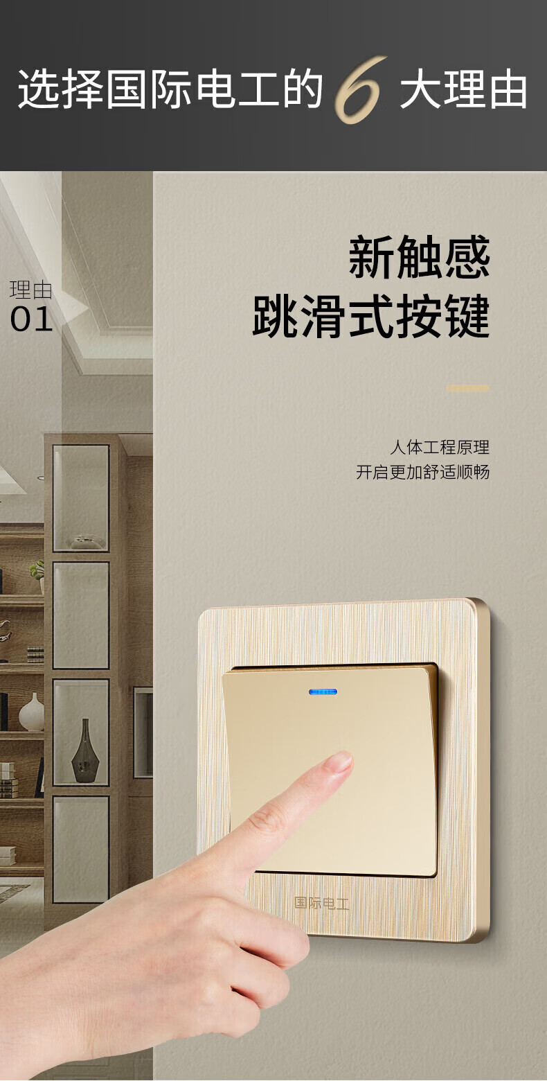 国际电工(FDD)86型开关插座全屋套装超薄面板家用墙壁暗装电源单双控五孔插座 一开单控