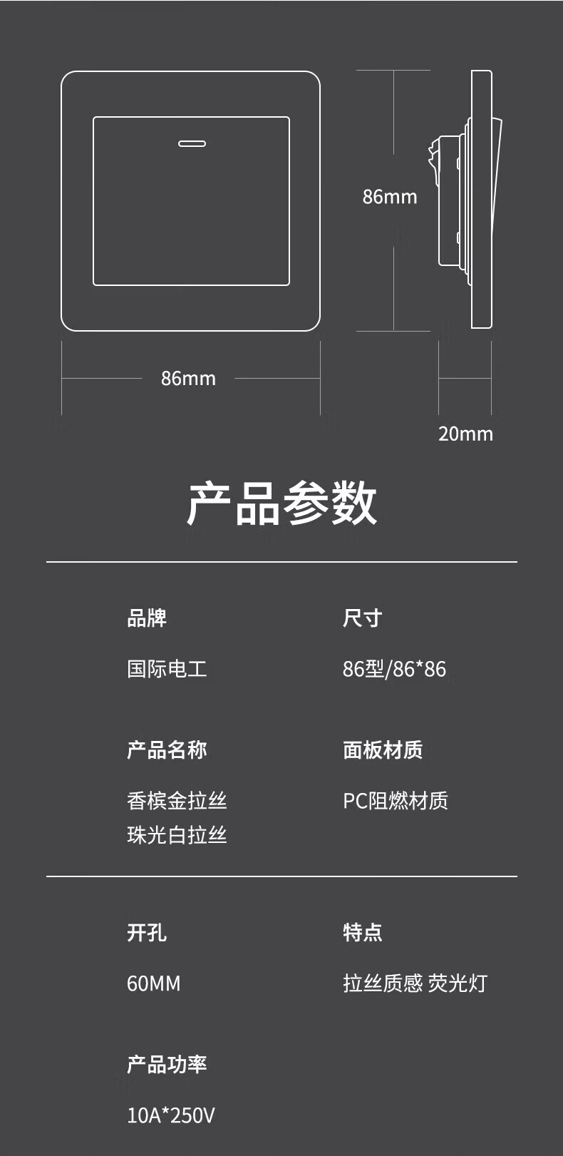 国际电工86型开关插座面板暗装经典小板家用一开五孔单双控空调16A电源插 五孔插座