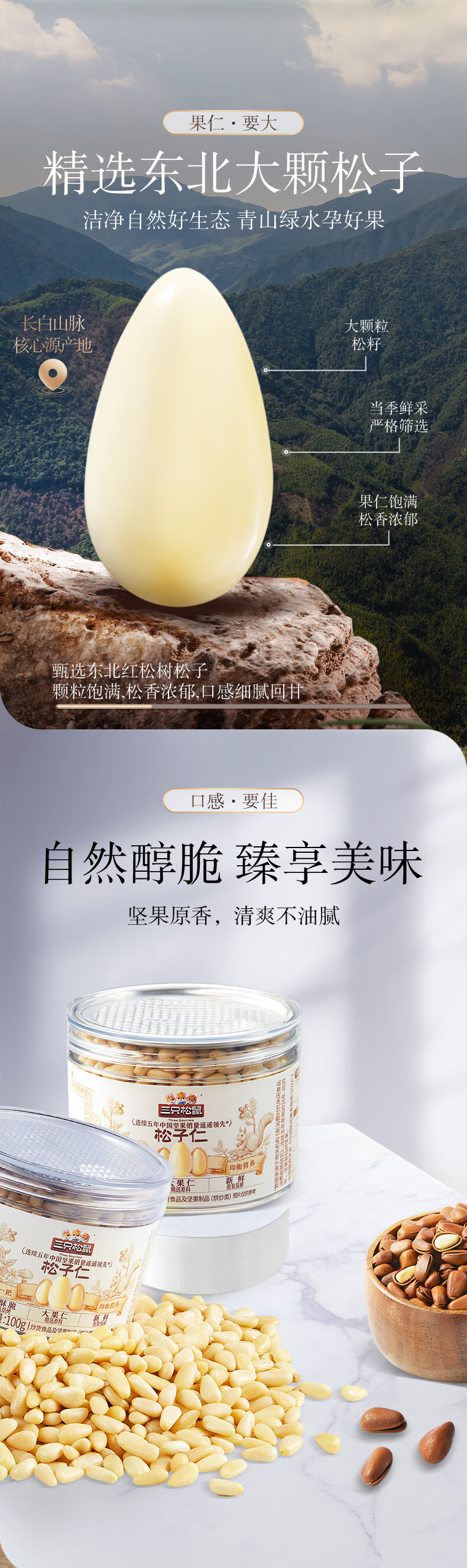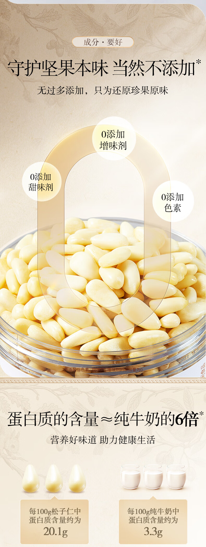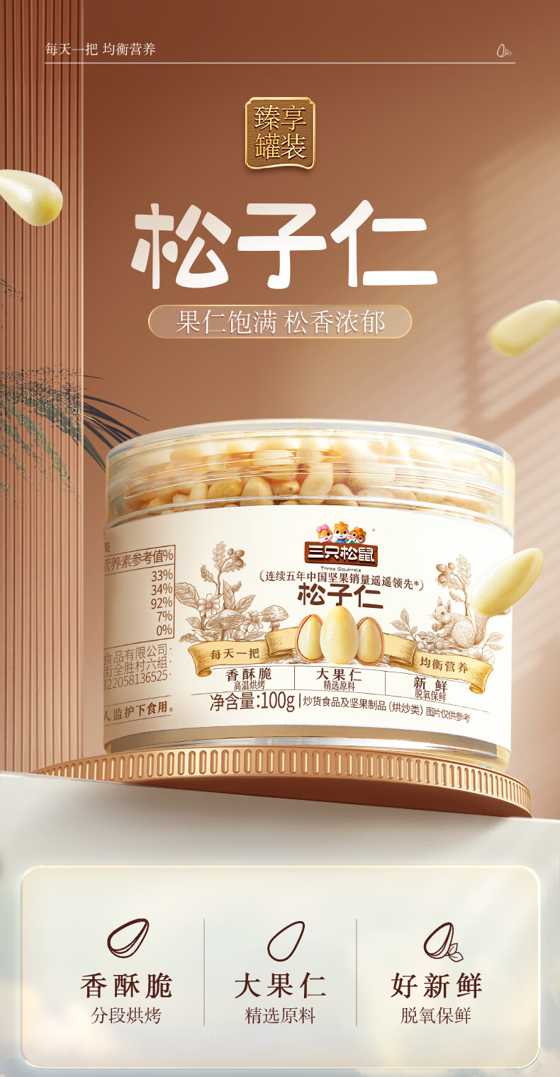 三只松鼠松子仁100g/罐 东北松子每日坚果果仁炒货休闲零食原味去壳非油炸