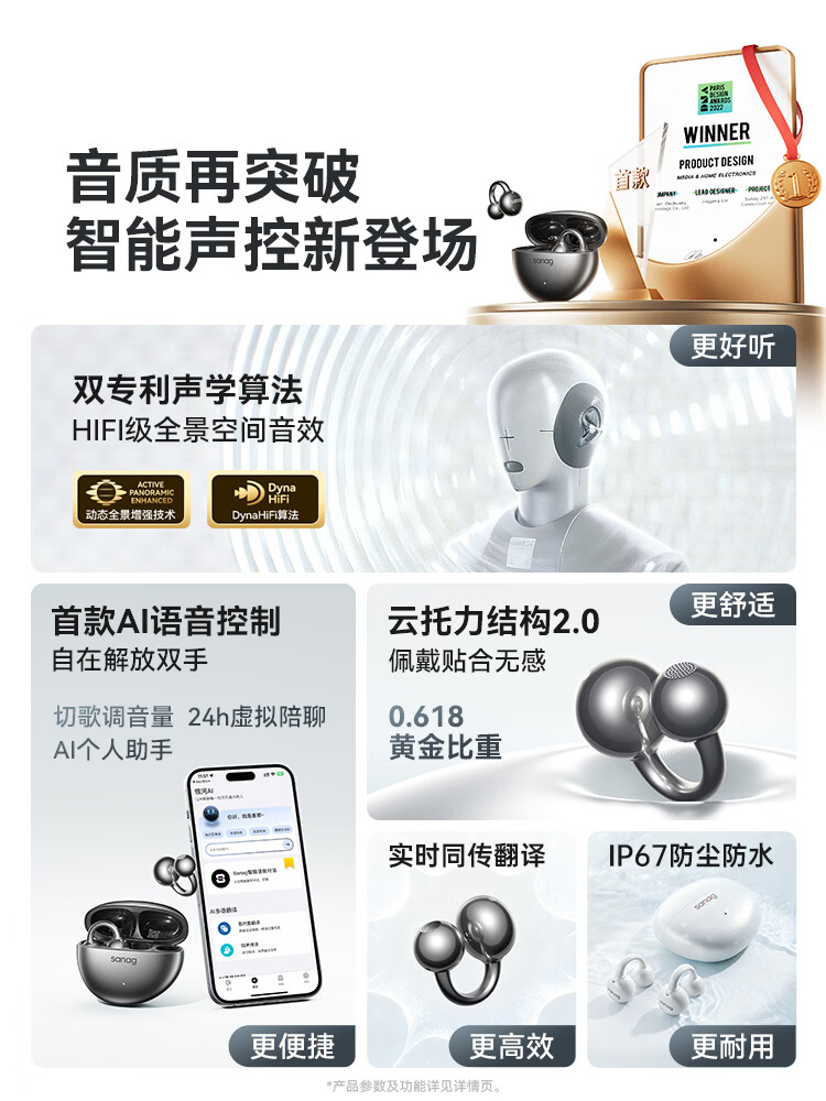 SANAG塞那S7SUltra【双重补贴25%】蓝牙耳机耳夹式运动无线 气骨传导概念金榜AI翻译机 人鱼姬