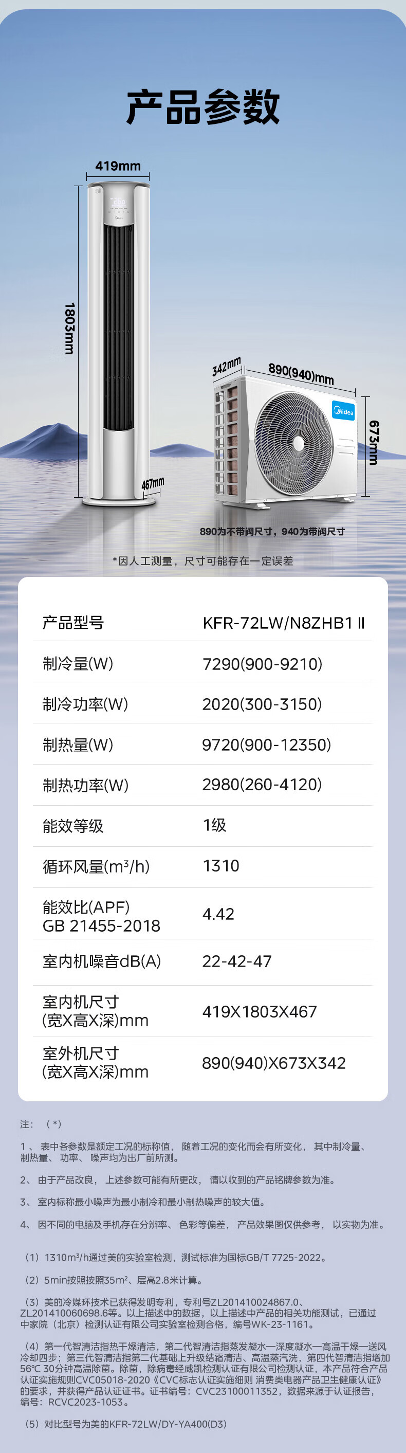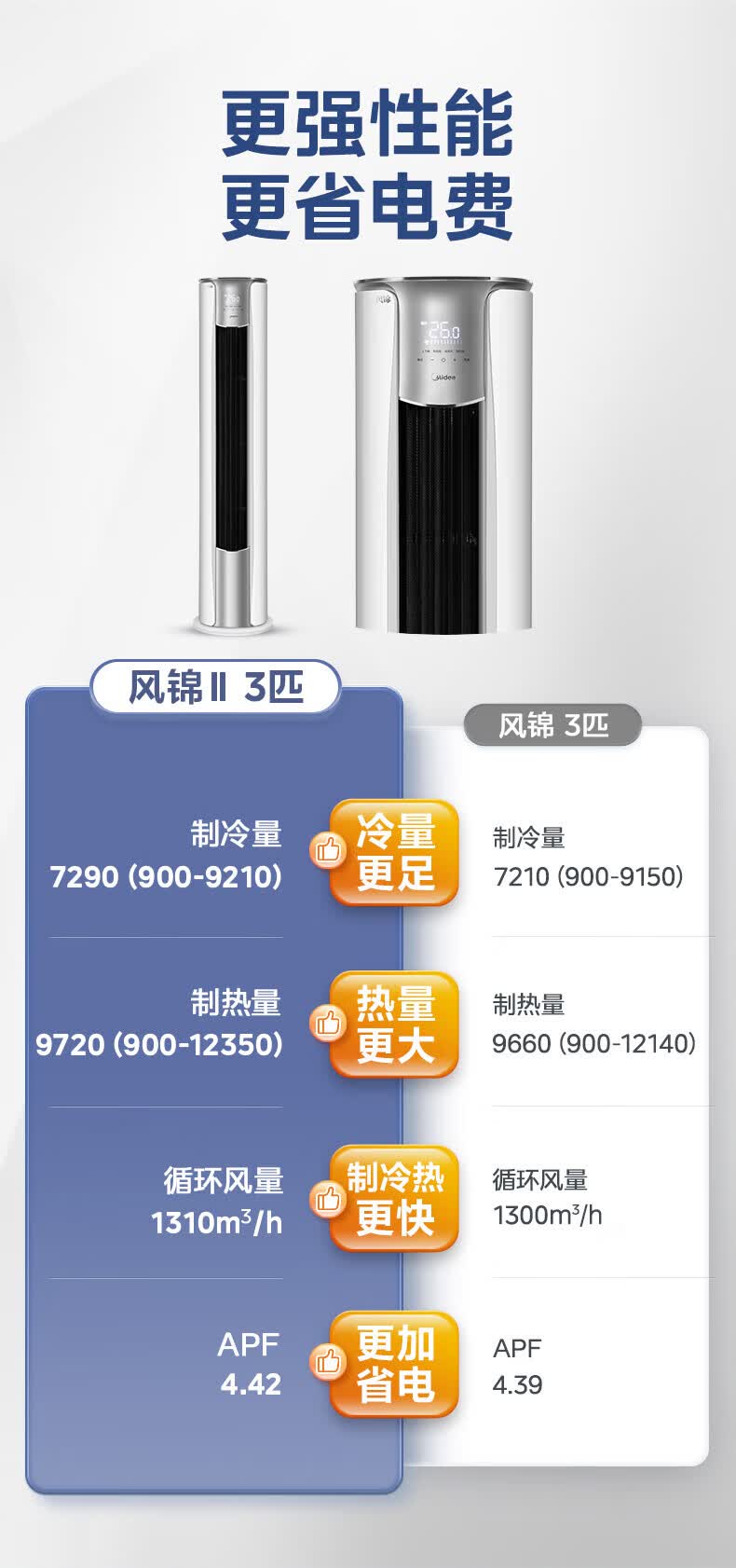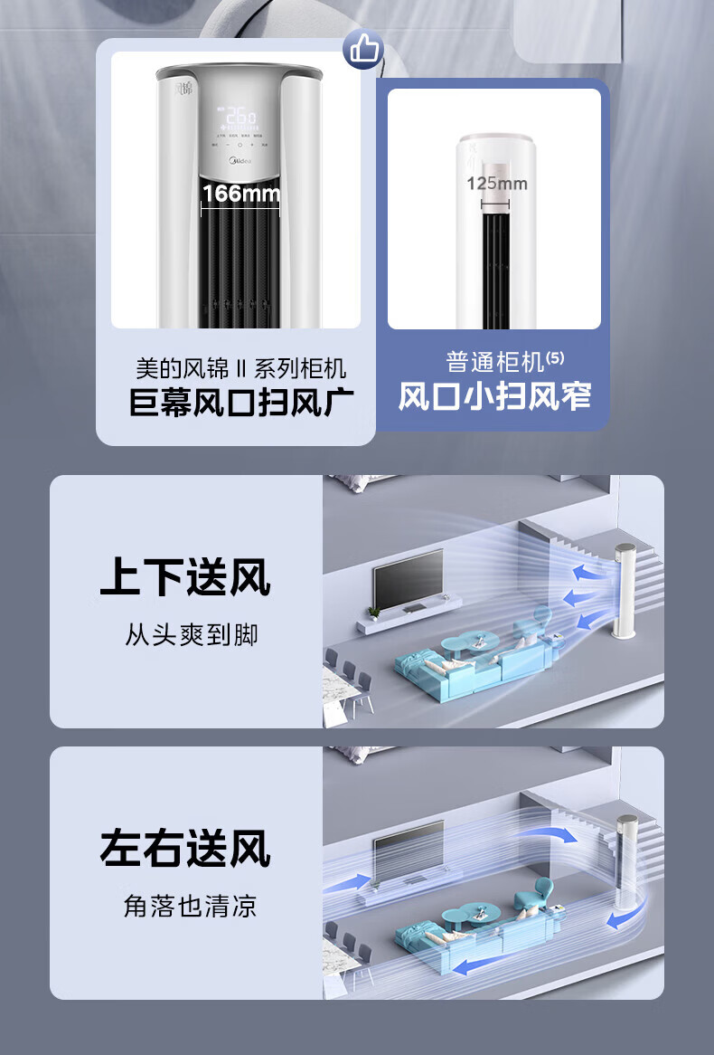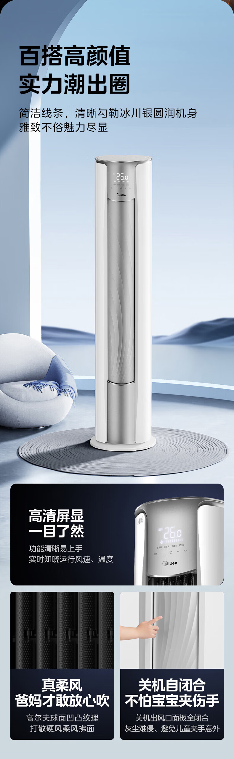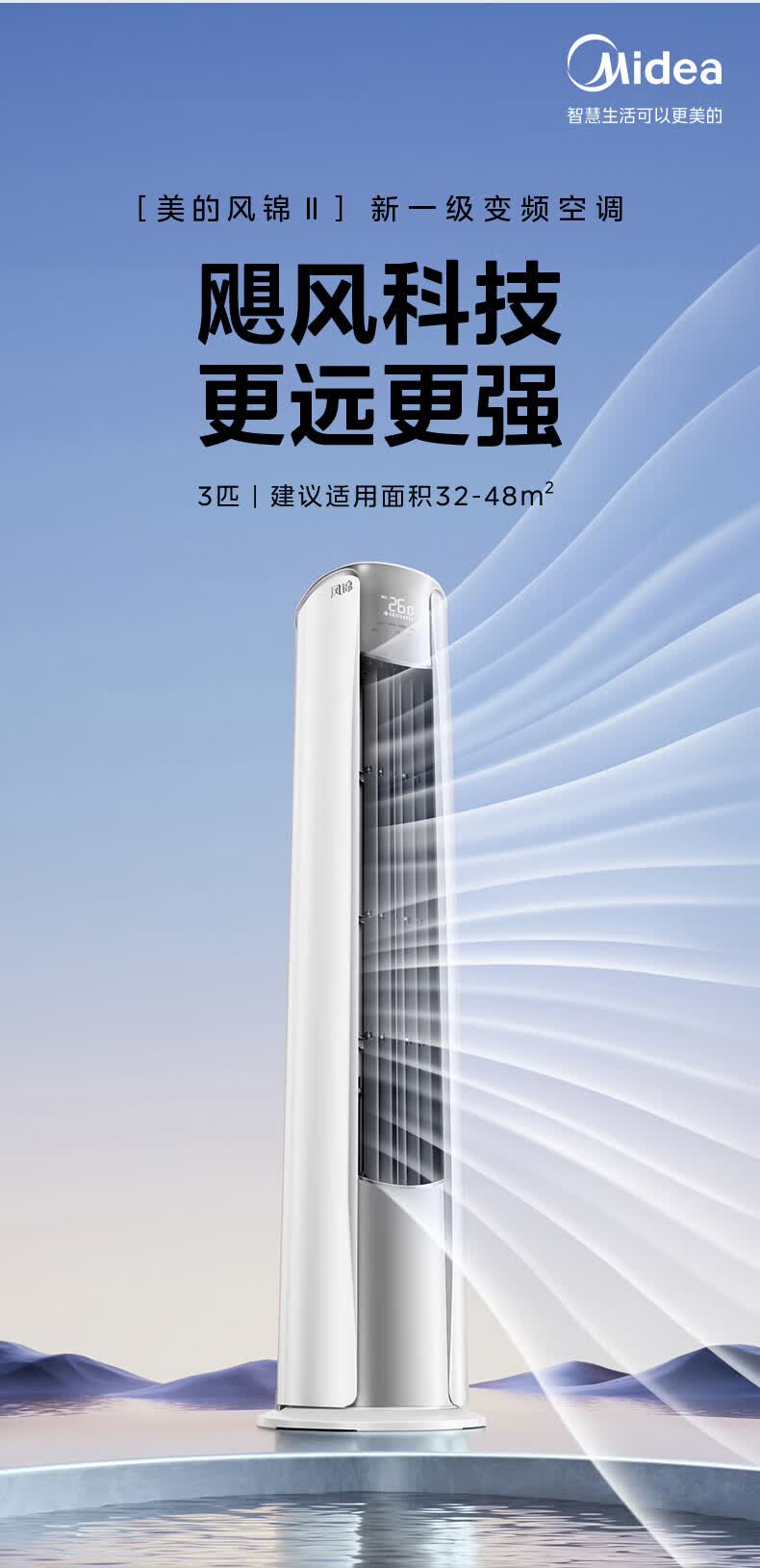 美的(Midea)3匹空调锐静二代新一级能效变频冷暖大风口家用客厅空调立式柜机美的家电 大3匹 一级能效锐静二代(大风口)