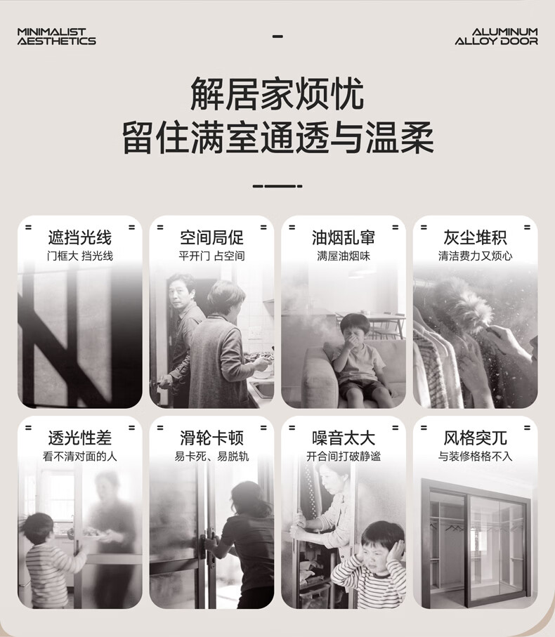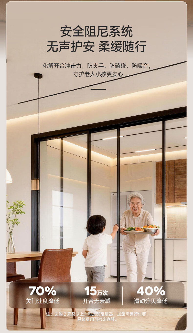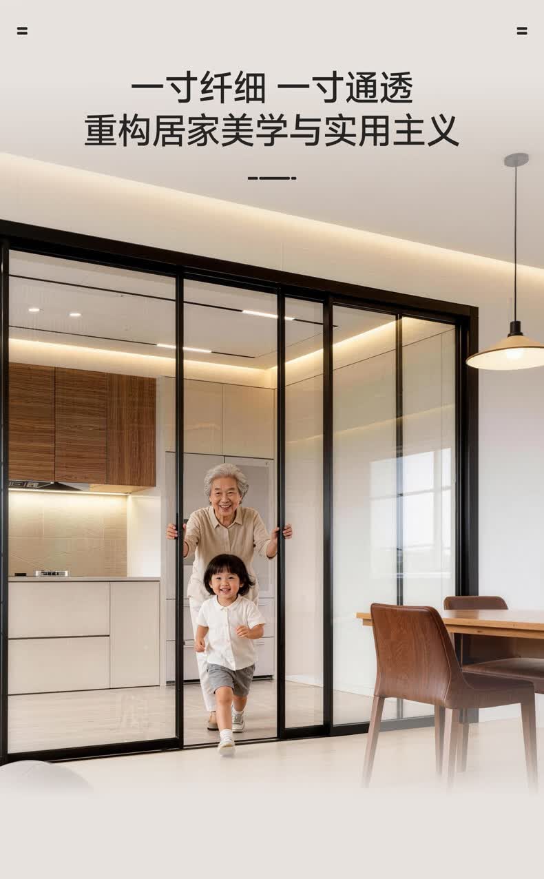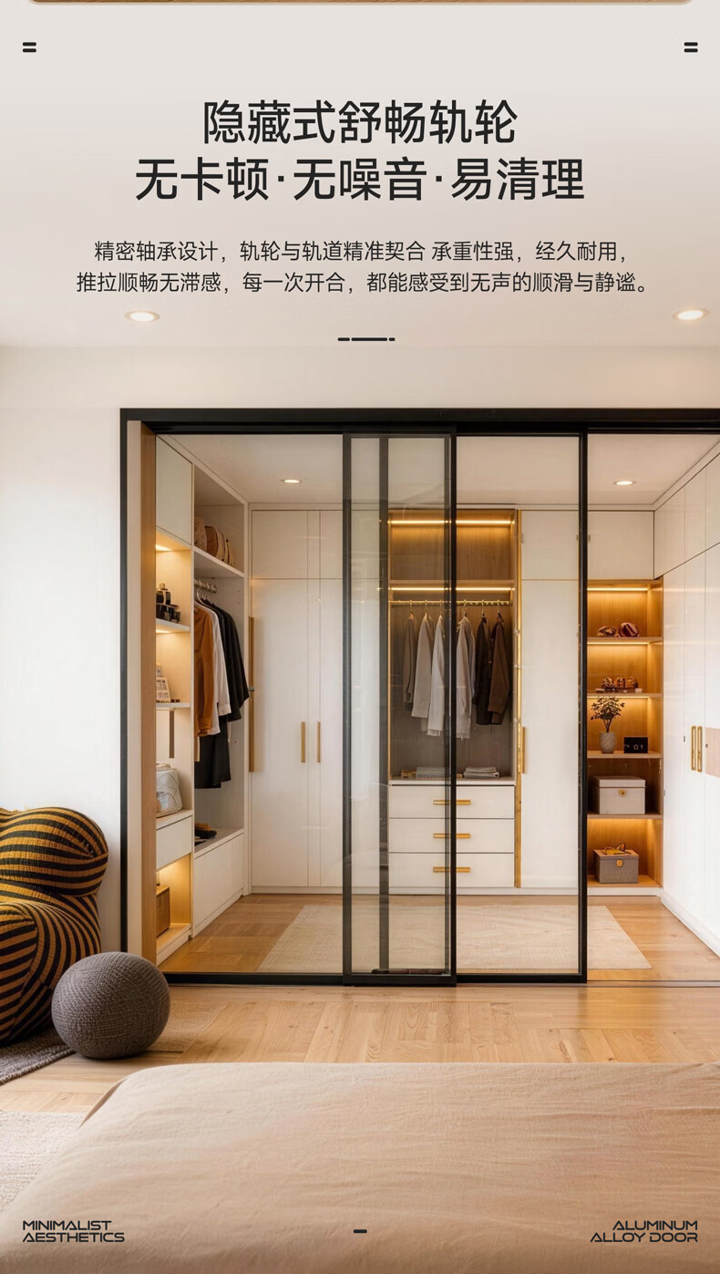 亚太天能厨房推拉门铝合金平移推拉门阳台移门隐形折叠门玻璃门 吊轨-极致-三联动1009/㎡(单扇1.5㎡起算)