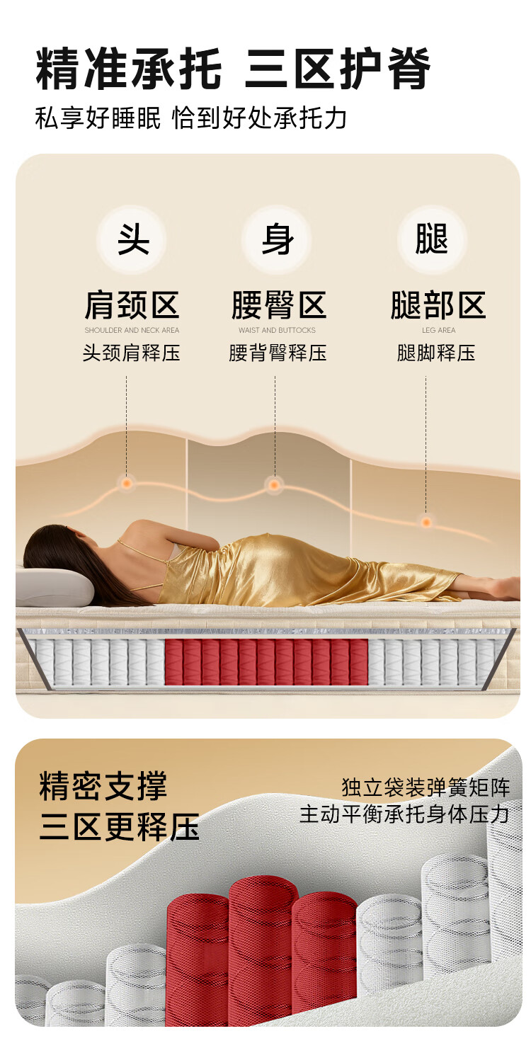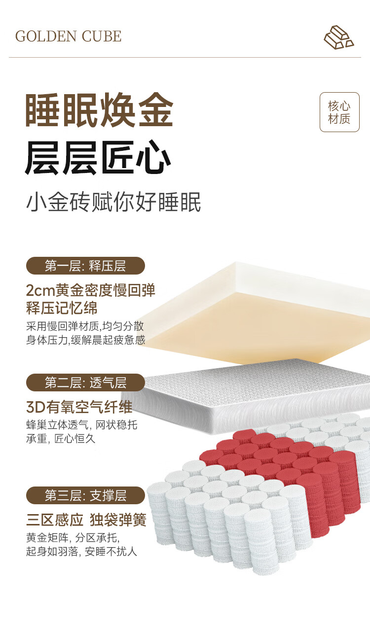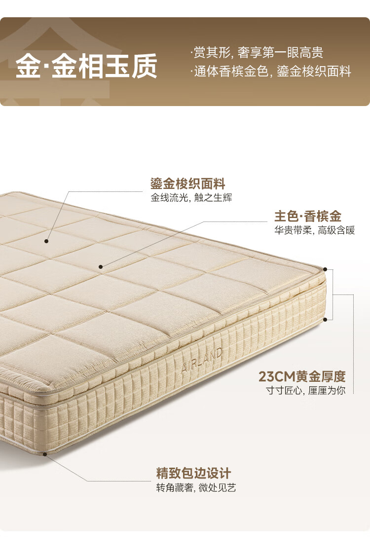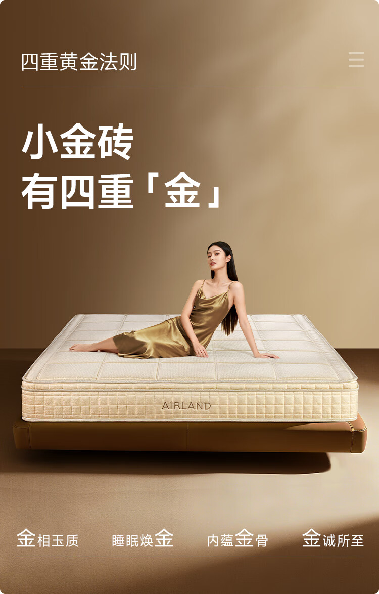 雅兰(AIRLAND)【线下同款】 小金砖 2cm记忆棉3分区独袋弹簧床垫 超体1.5*2米