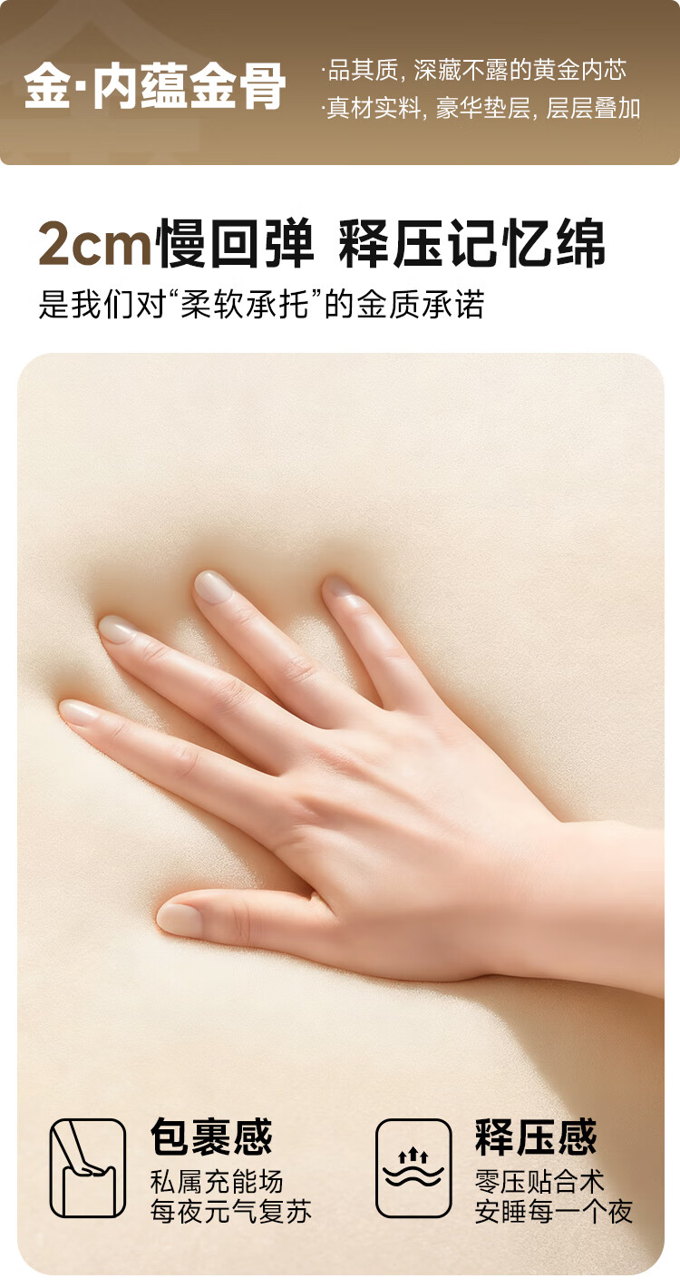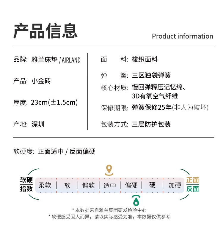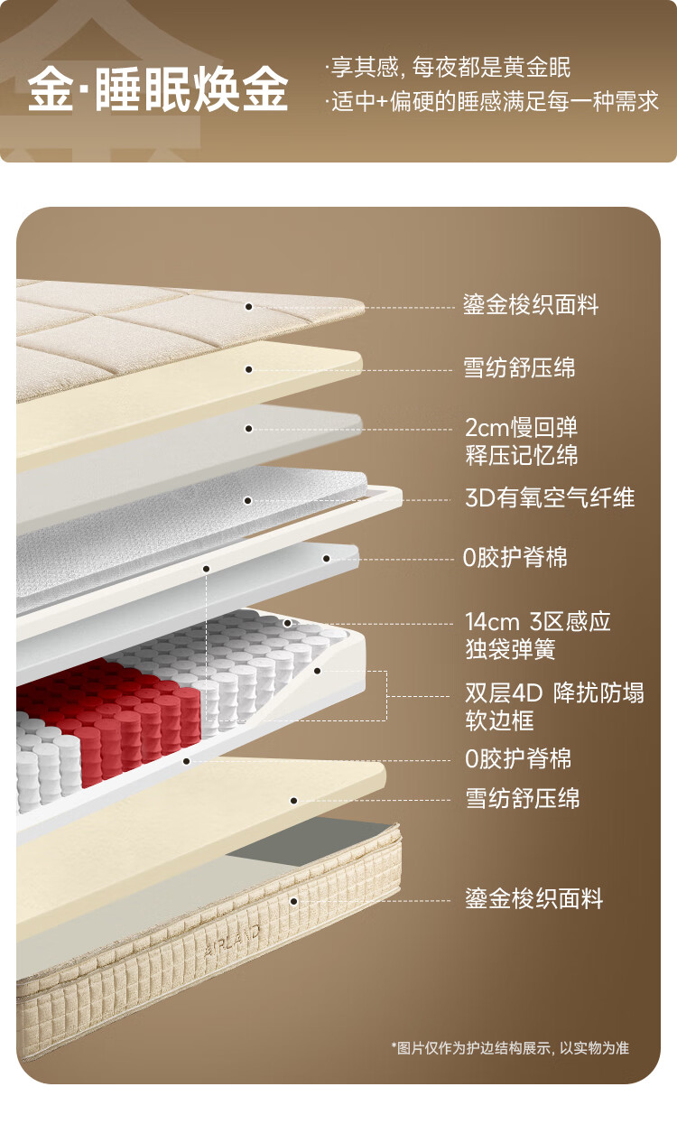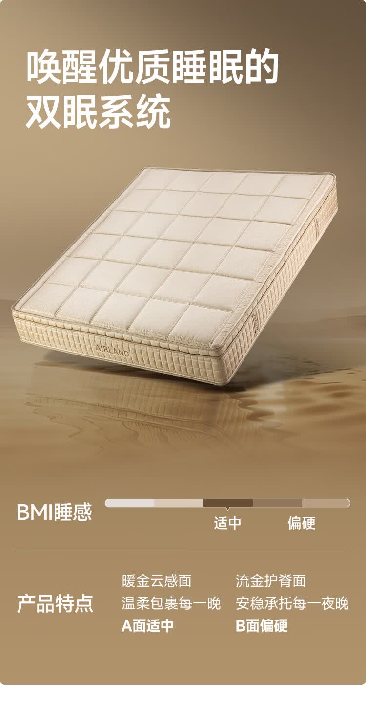 雅兰(AIRLAND)【线下同款】 小金砖 2cm记忆棉3分区独袋弹簧床垫 超体1.5*2米