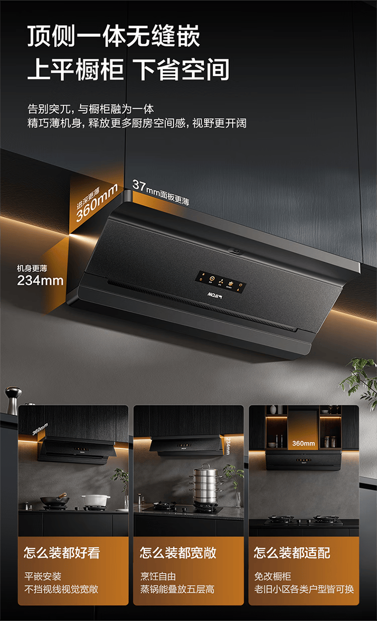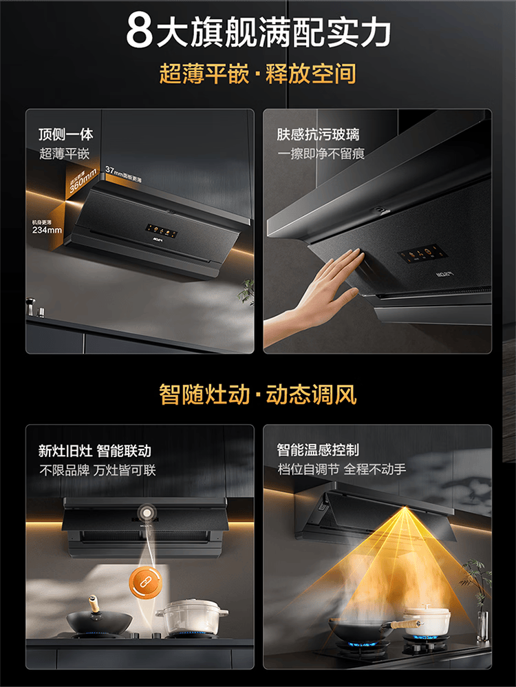 名气(MQ)【星河F20】顶侧一体欧式脱吸排油烟机烟灶套装 31立方大吸力智慧联动 超薄平嵌以旧换新抽吸烟机 【旗舰防污联动套装】+667-H1P