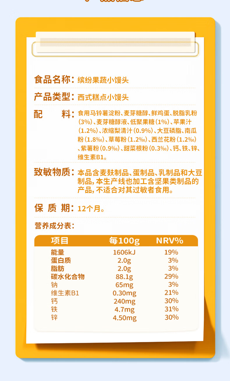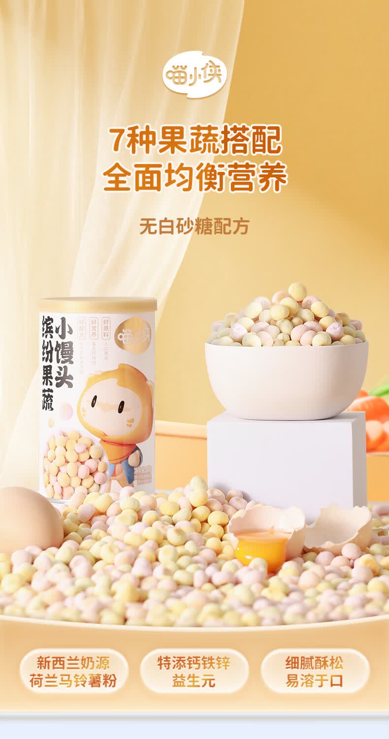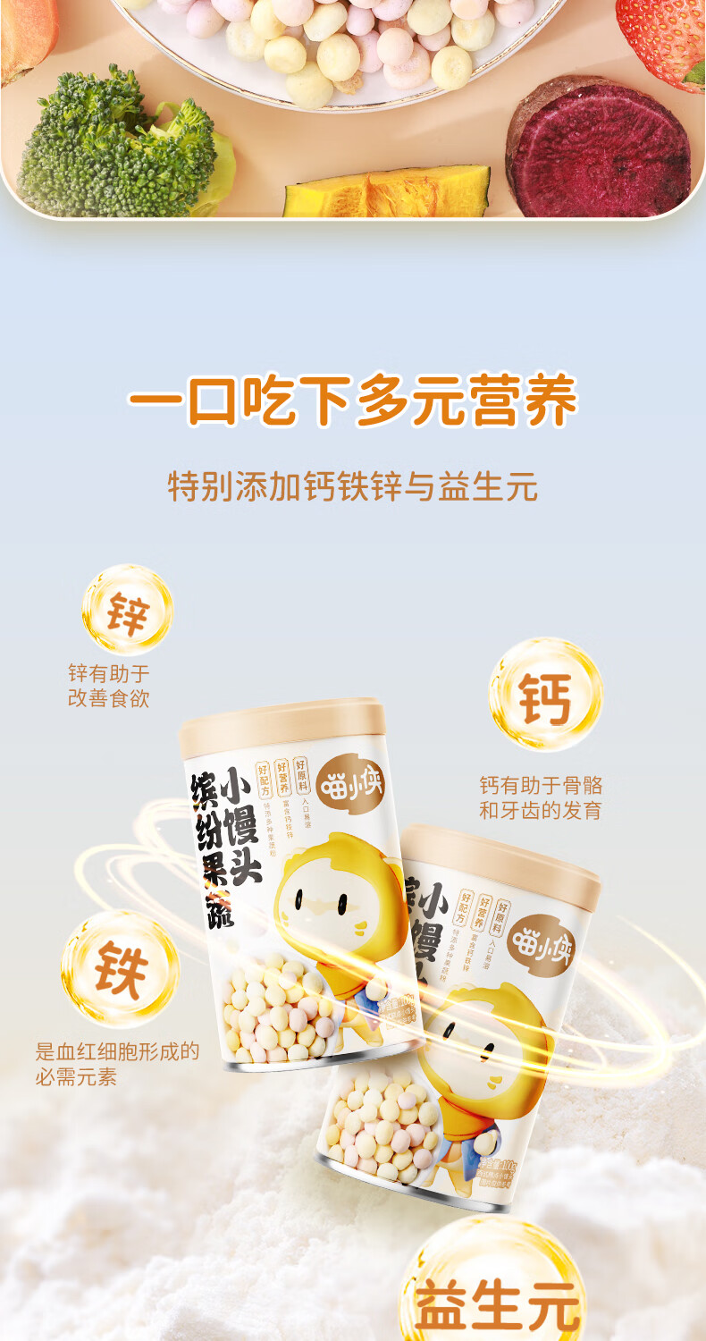 喵小侠缤纷果蔬小馒头 宝宝零食入口易融小饼干磨牙棒 100g