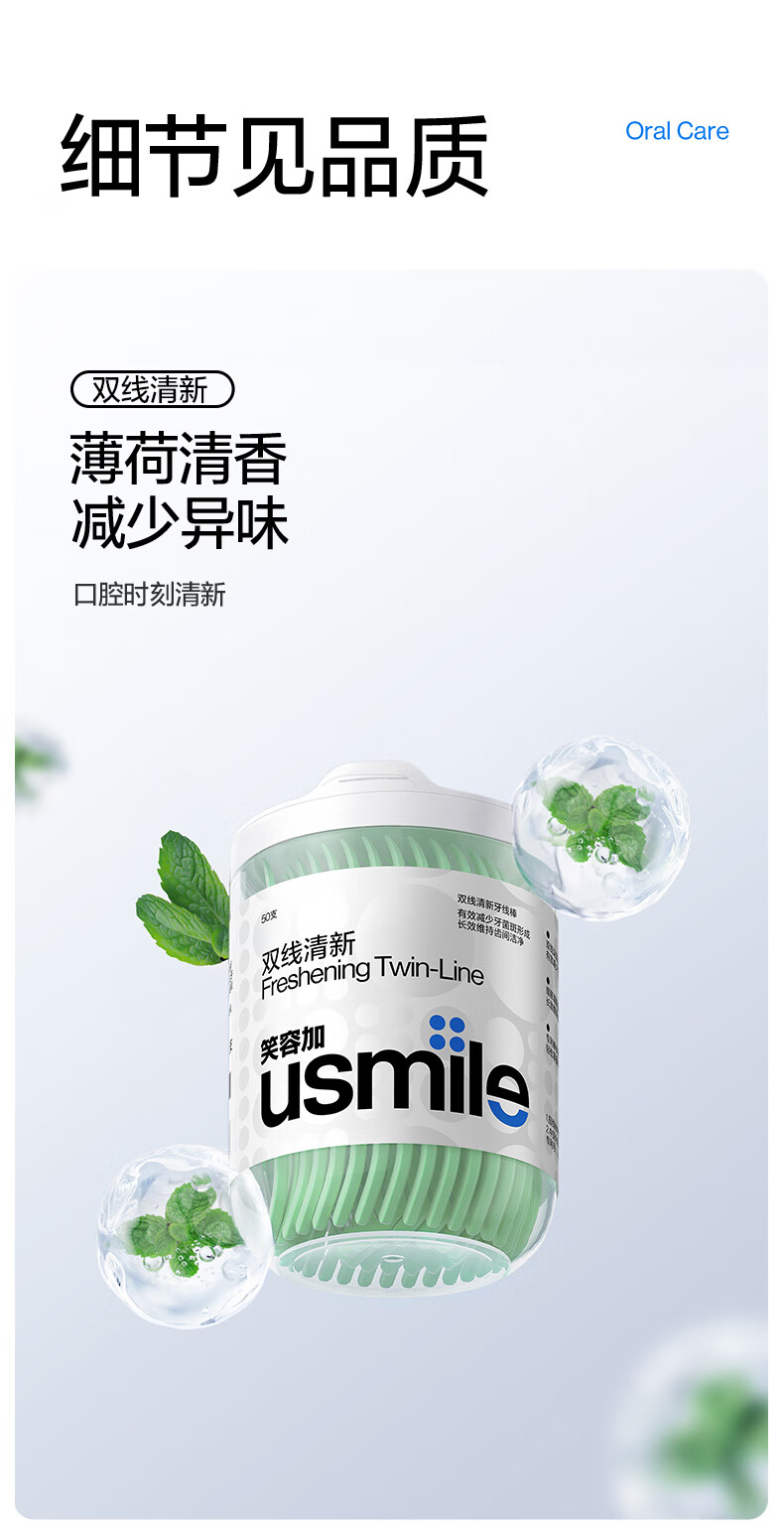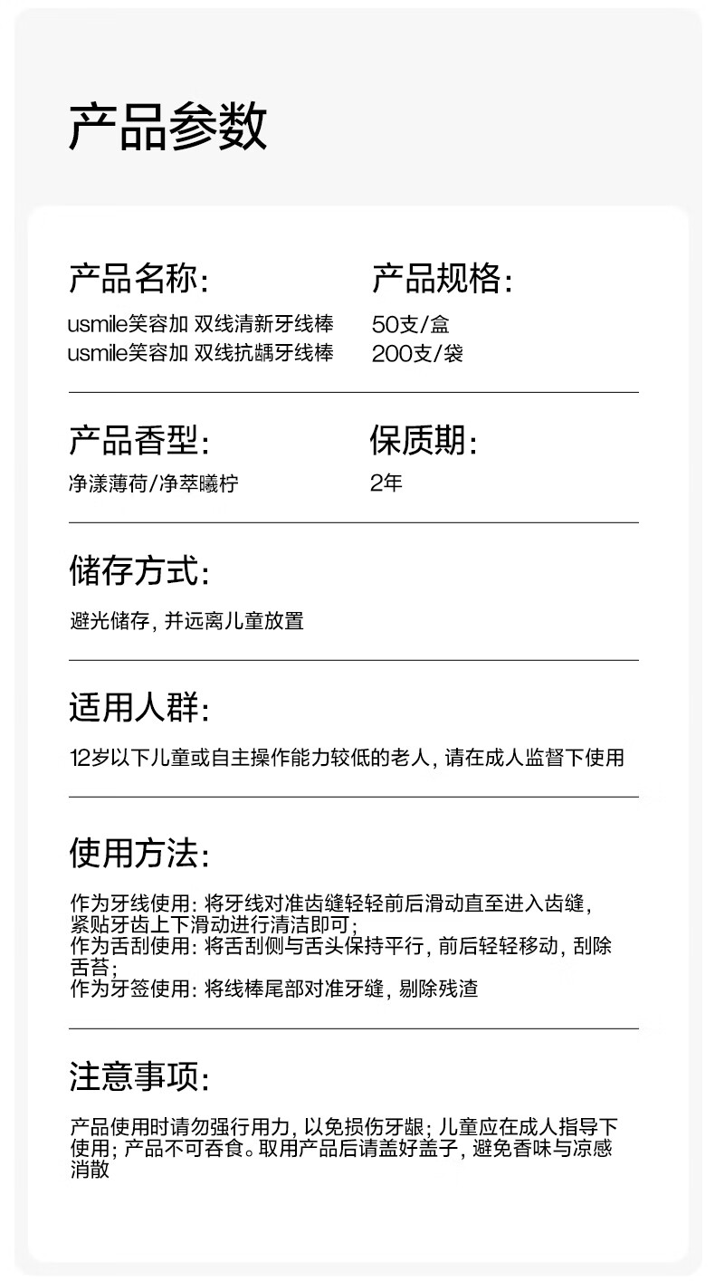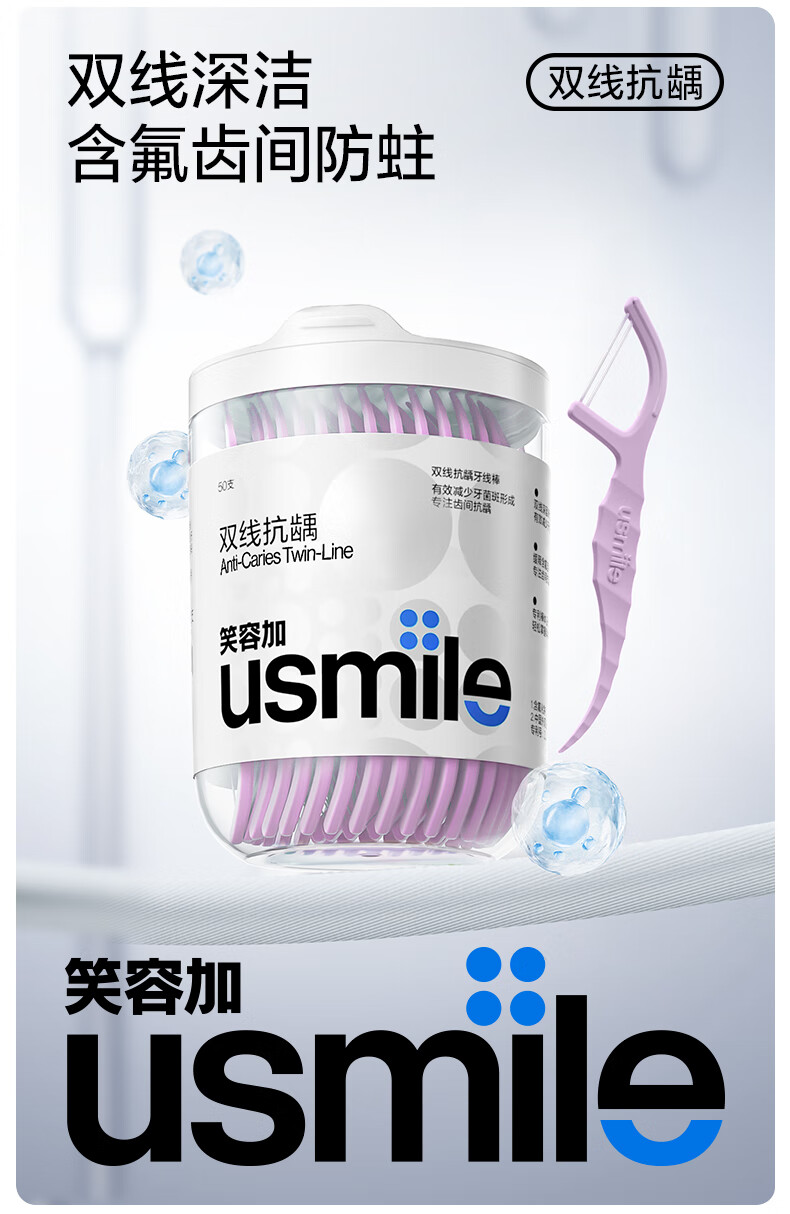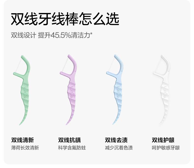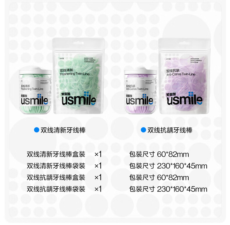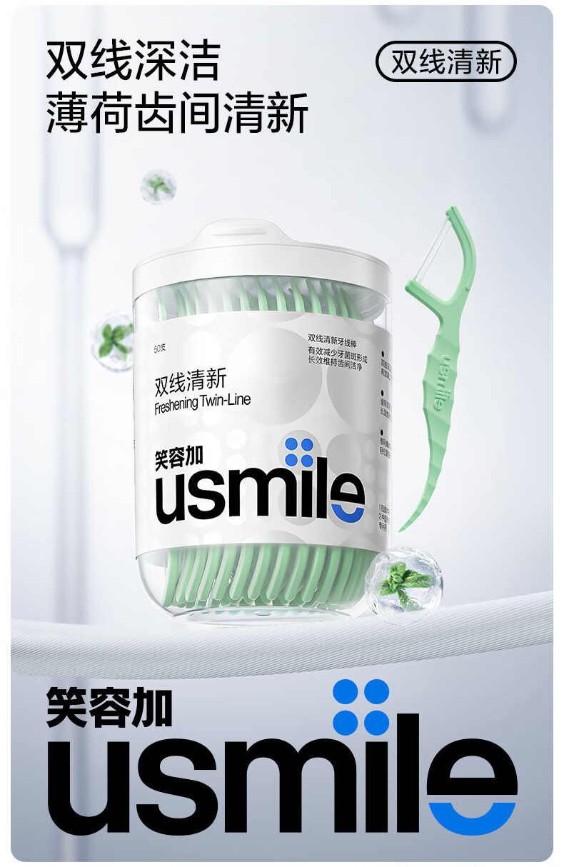 usmile笑容加双线牙线棒 清洁齿缝清新抗龋超细家庭装 【囤货装】清新型牙线 4盒