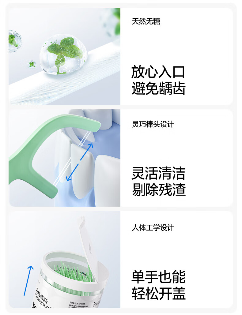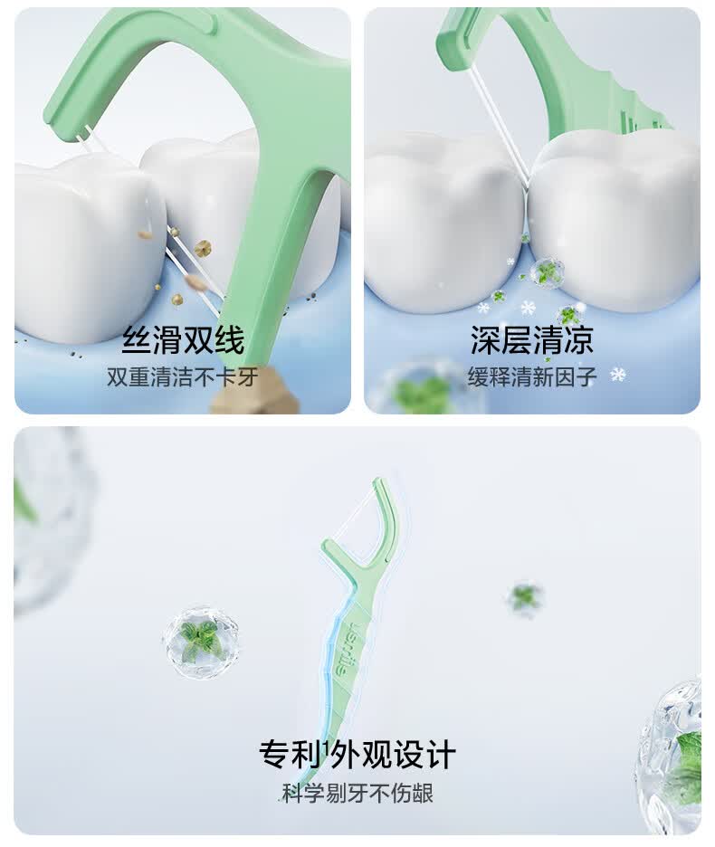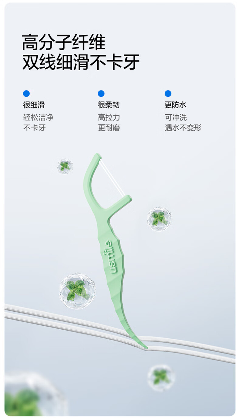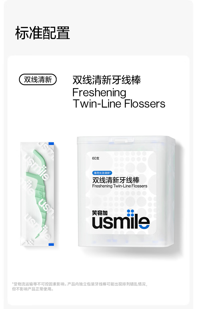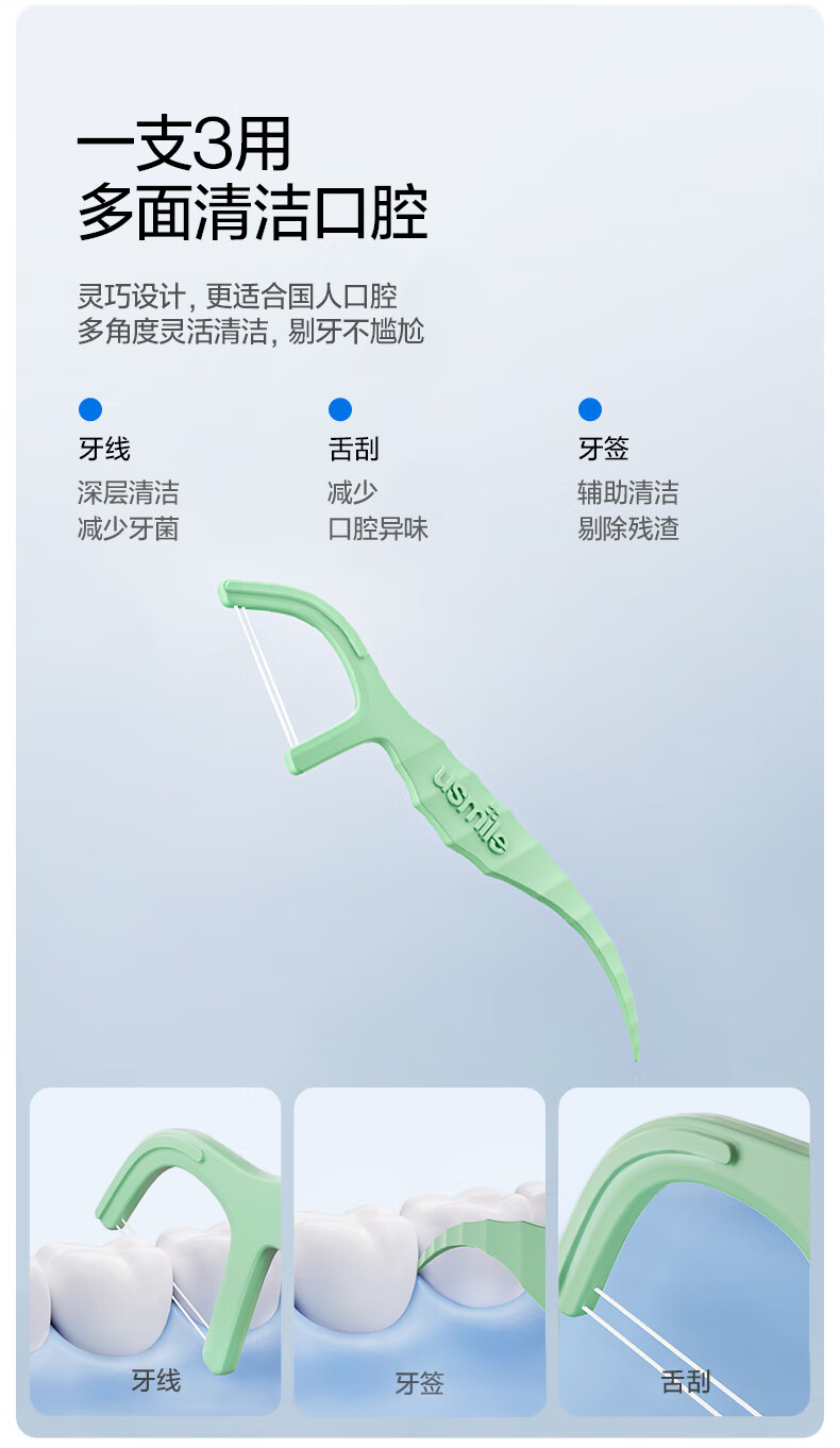 usmile笑容加双线牙线棒 清洁齿缝清新抗龋超细家庭装 【囤货装】清新型牙线 4盒