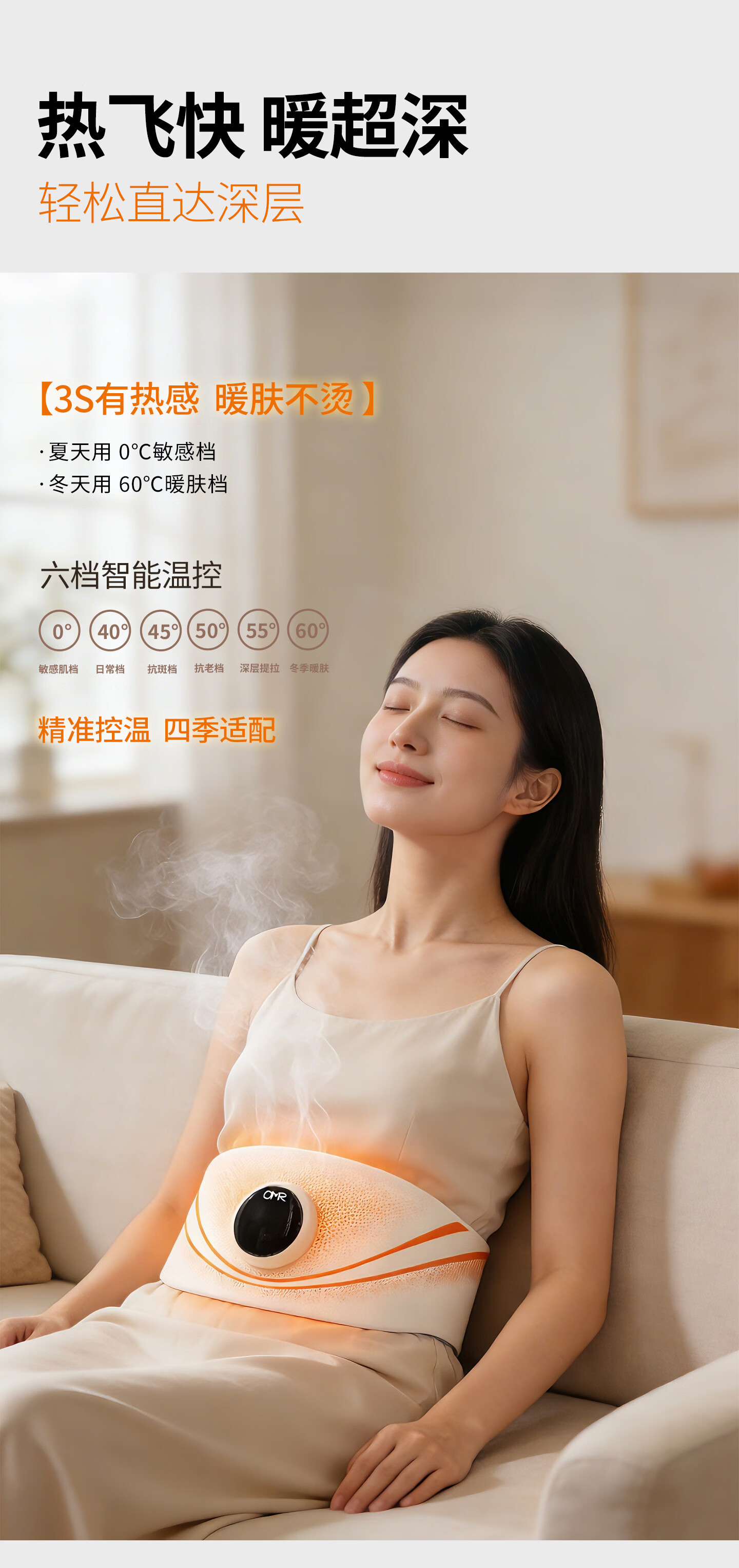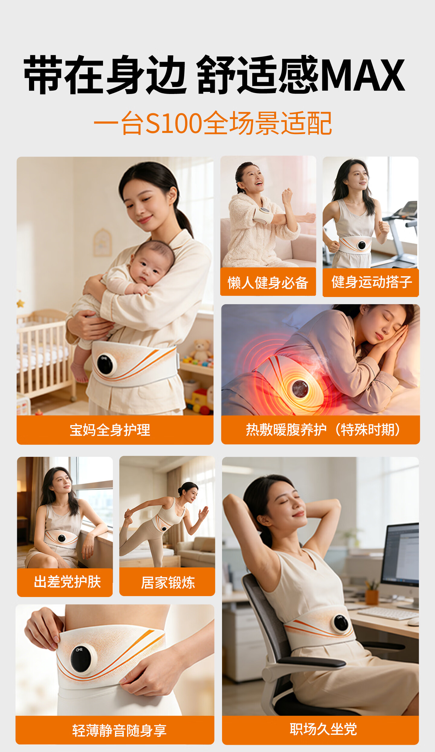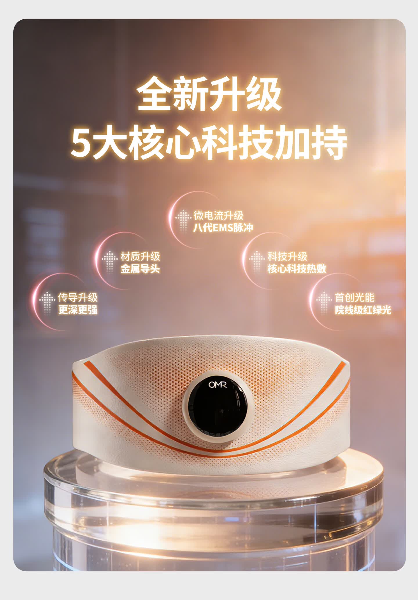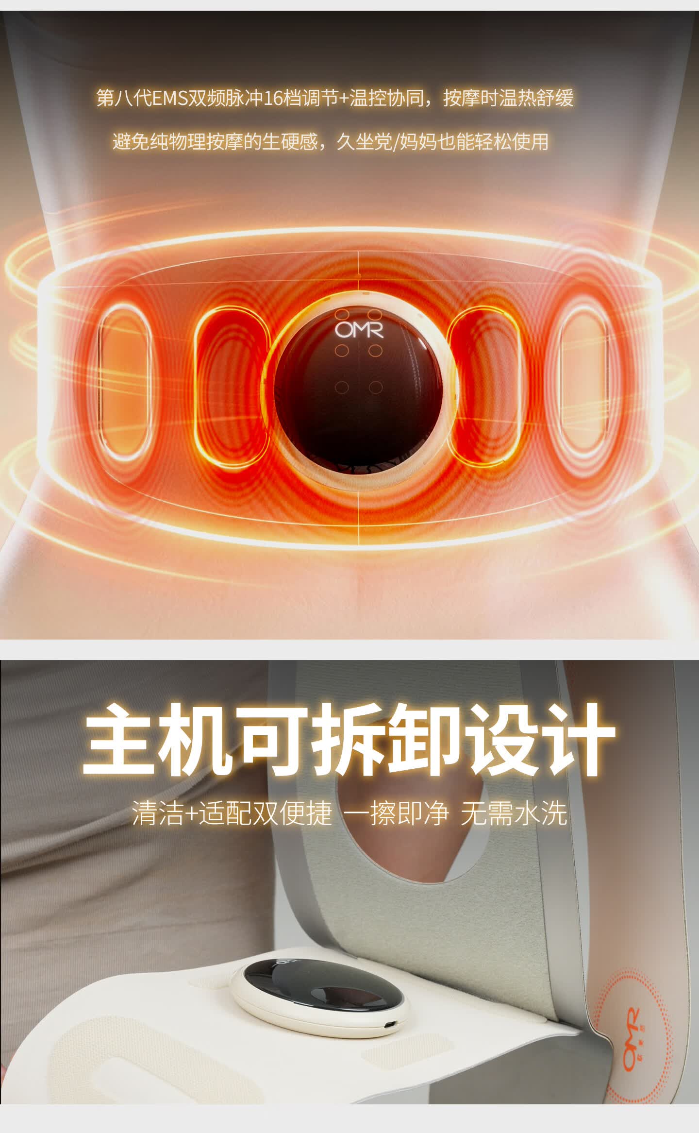 欧美然 OMR【光能美塑仪】EMS按摩健腹仪腰带暖腹神器 S100+喷雾50ml(海洋)+喷雾200ml(海洋)+艾草贴2袋