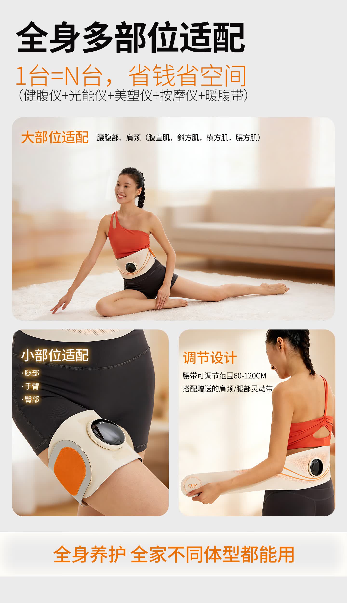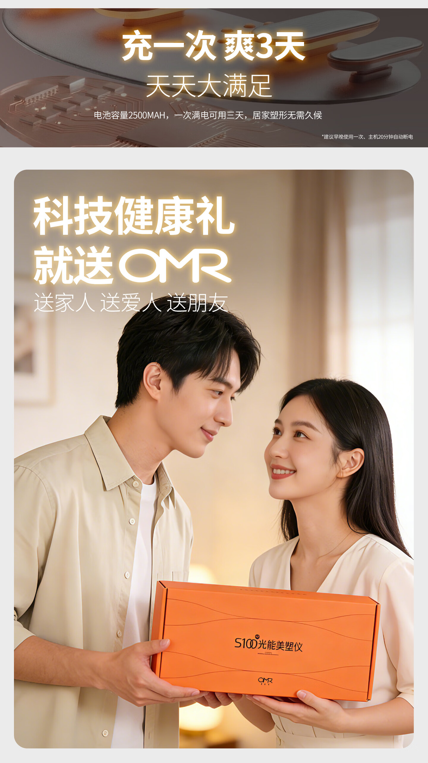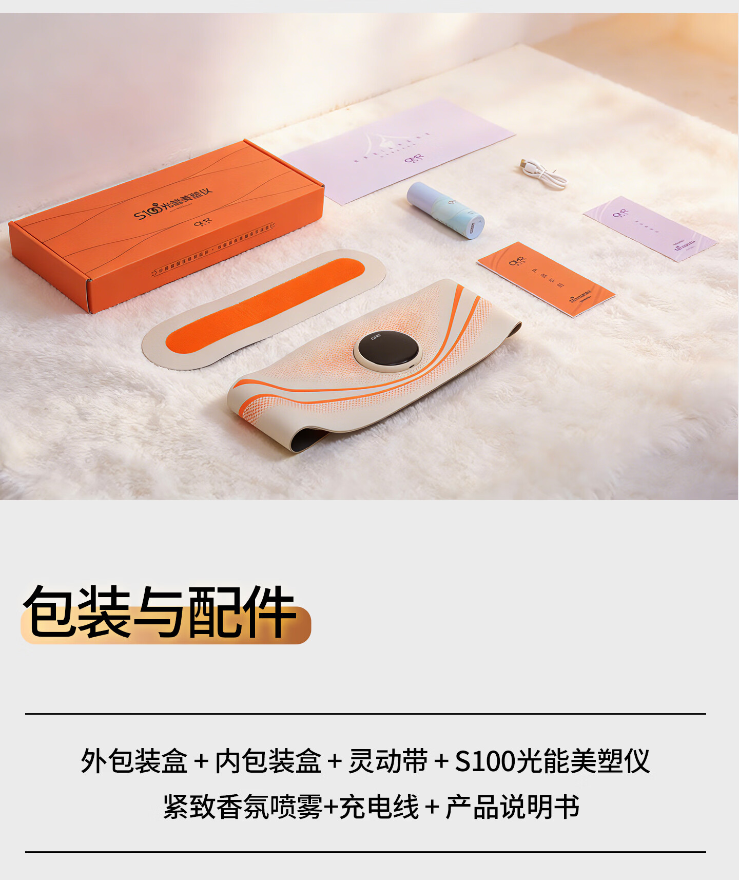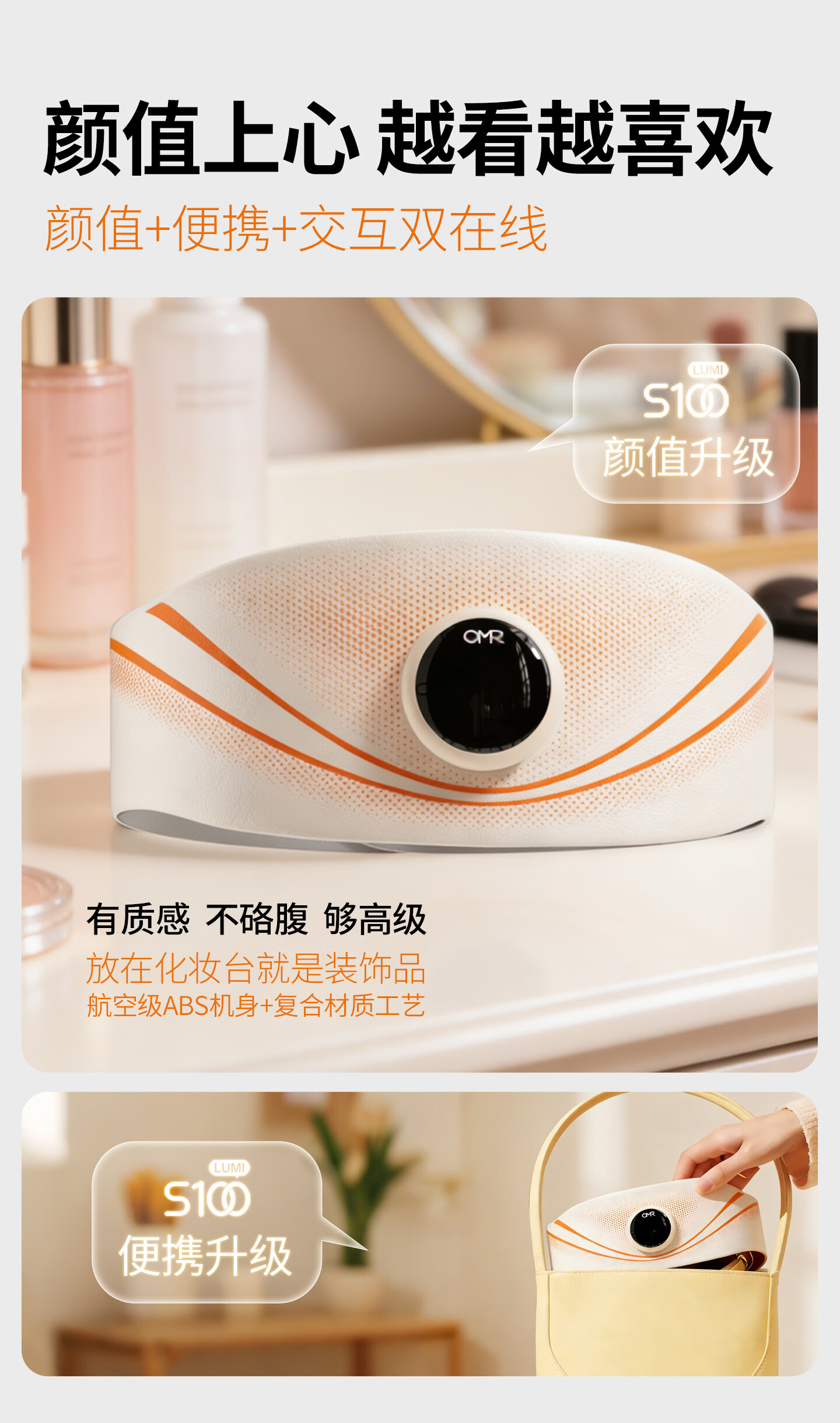 欧美然 OMR【光能美塑仪】EMS按摩健腹仪腰带暖腹神器 S100+喷雾50ml(海洋)+喷雾200ml(海洋)+艾草贴2袋