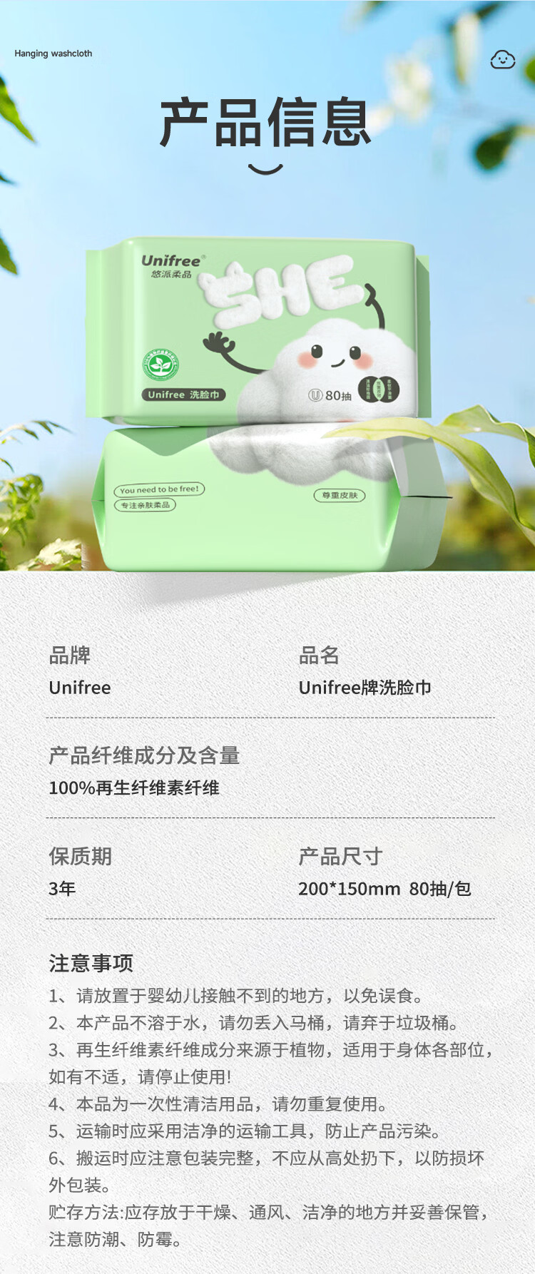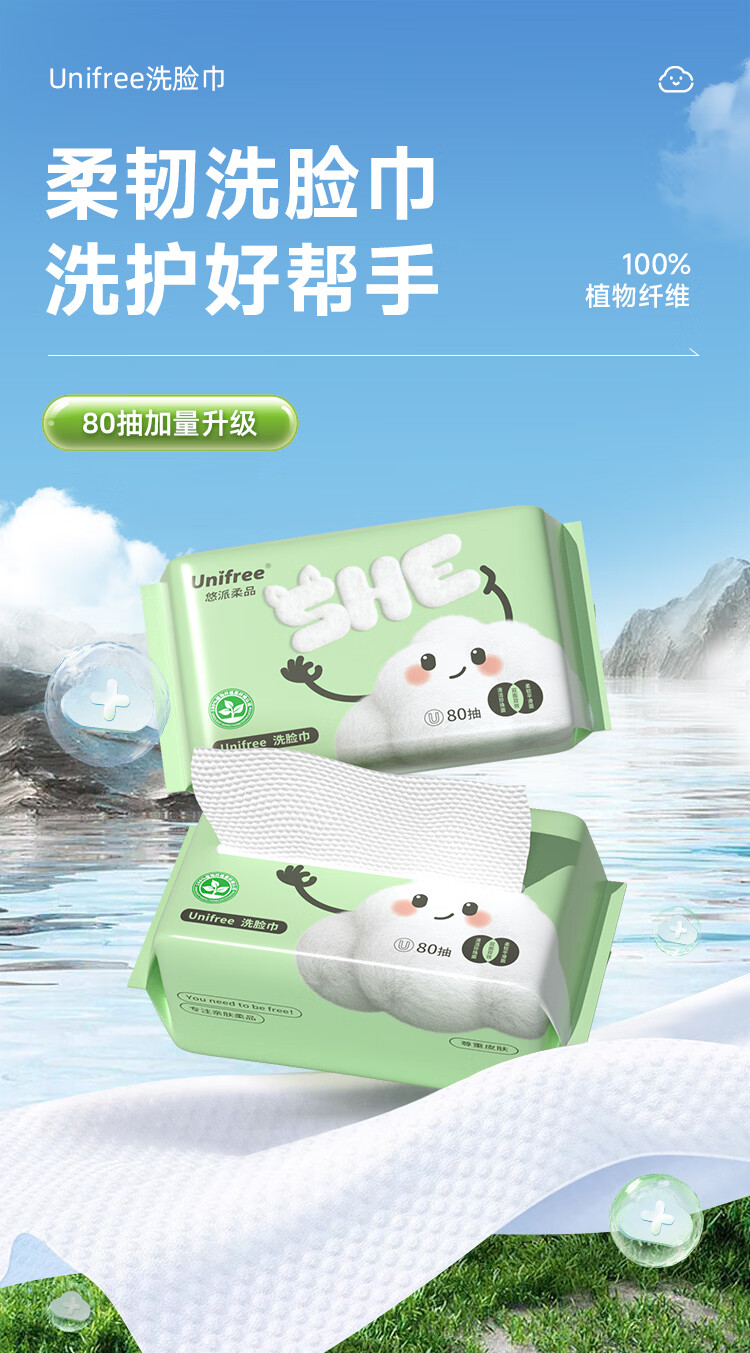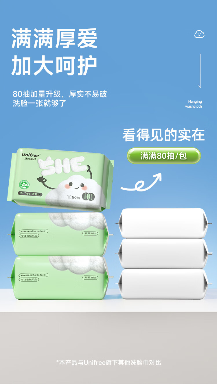 unifree 洗脸巾珍珠纹绵柔巾一次性洗面巾加大加厚干湿两用化妆绵擦脸巾 【尝鲜装】洗脸巾80抽*3包