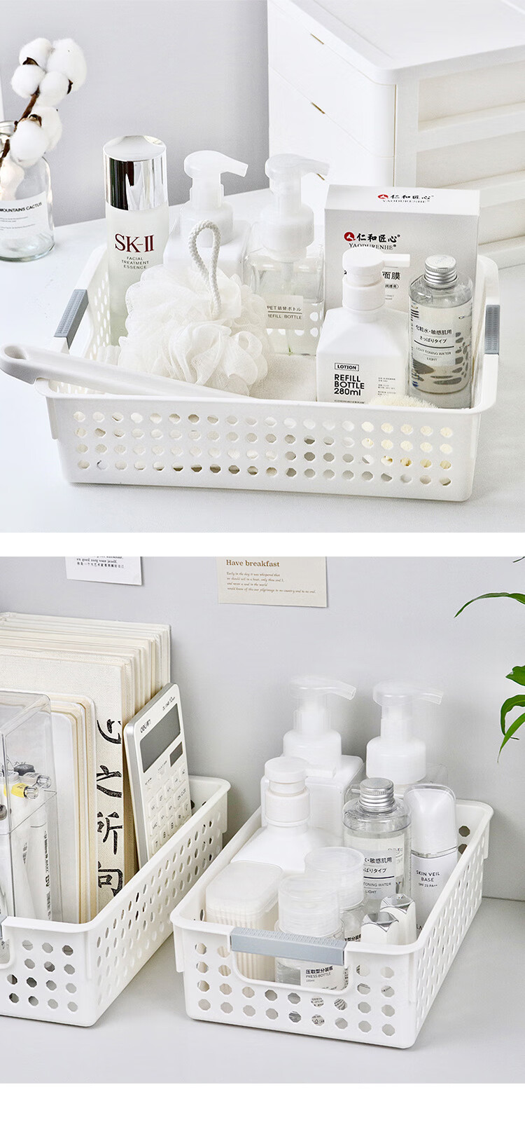 多用杂物收纳筐收纳箱家用零食玩具塑料置物筐宿舍厨房桌面文件资料收纳盒 1个装