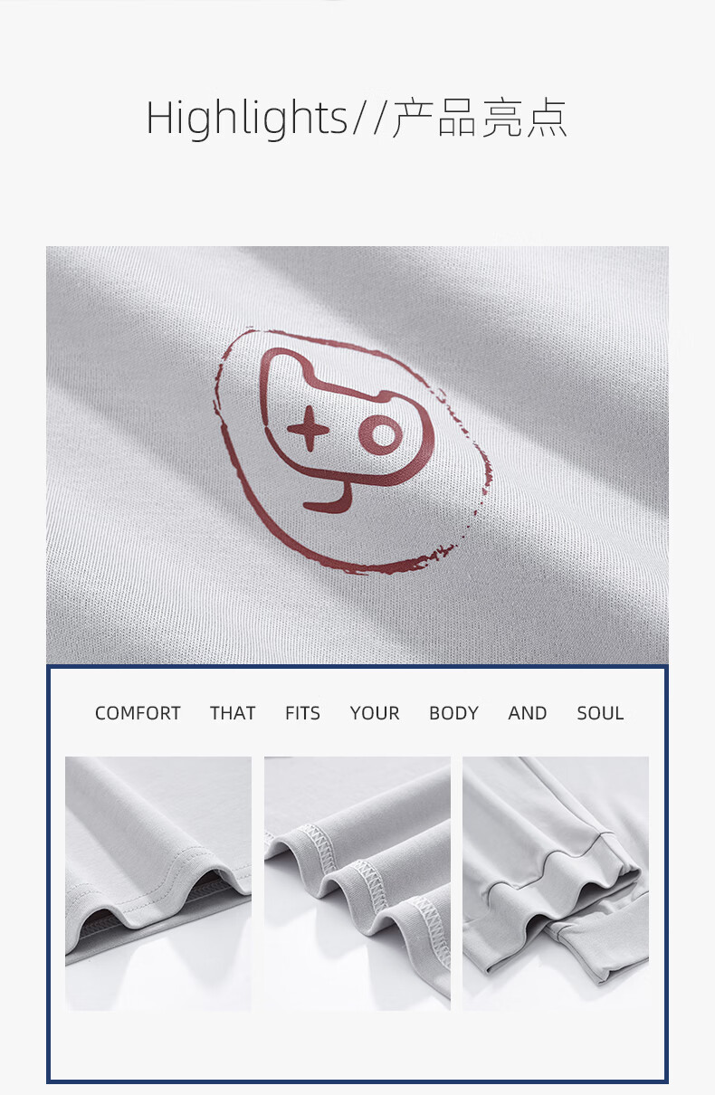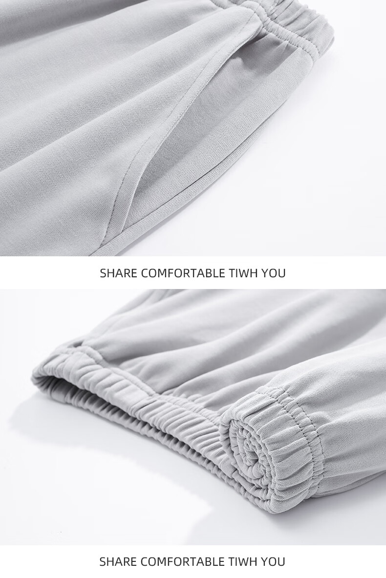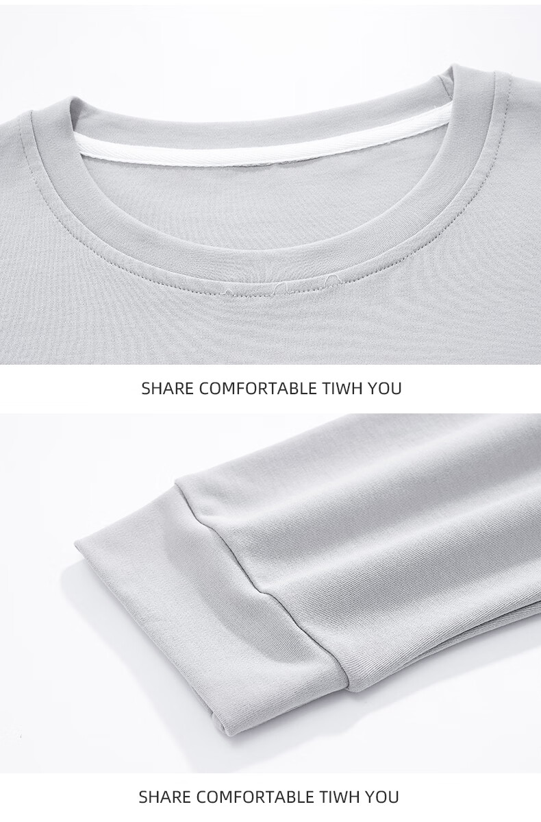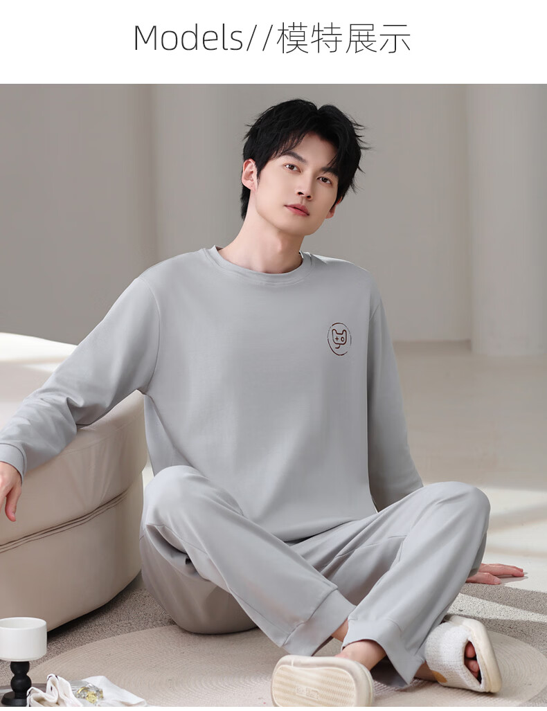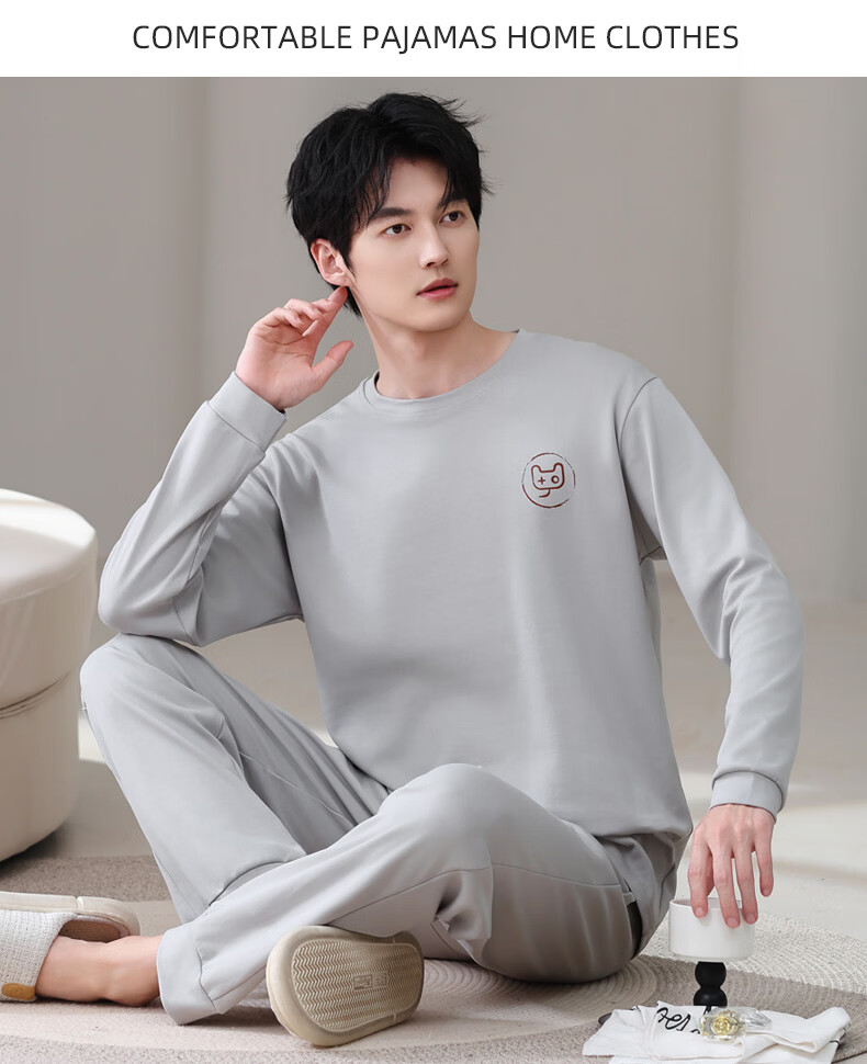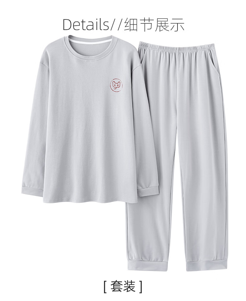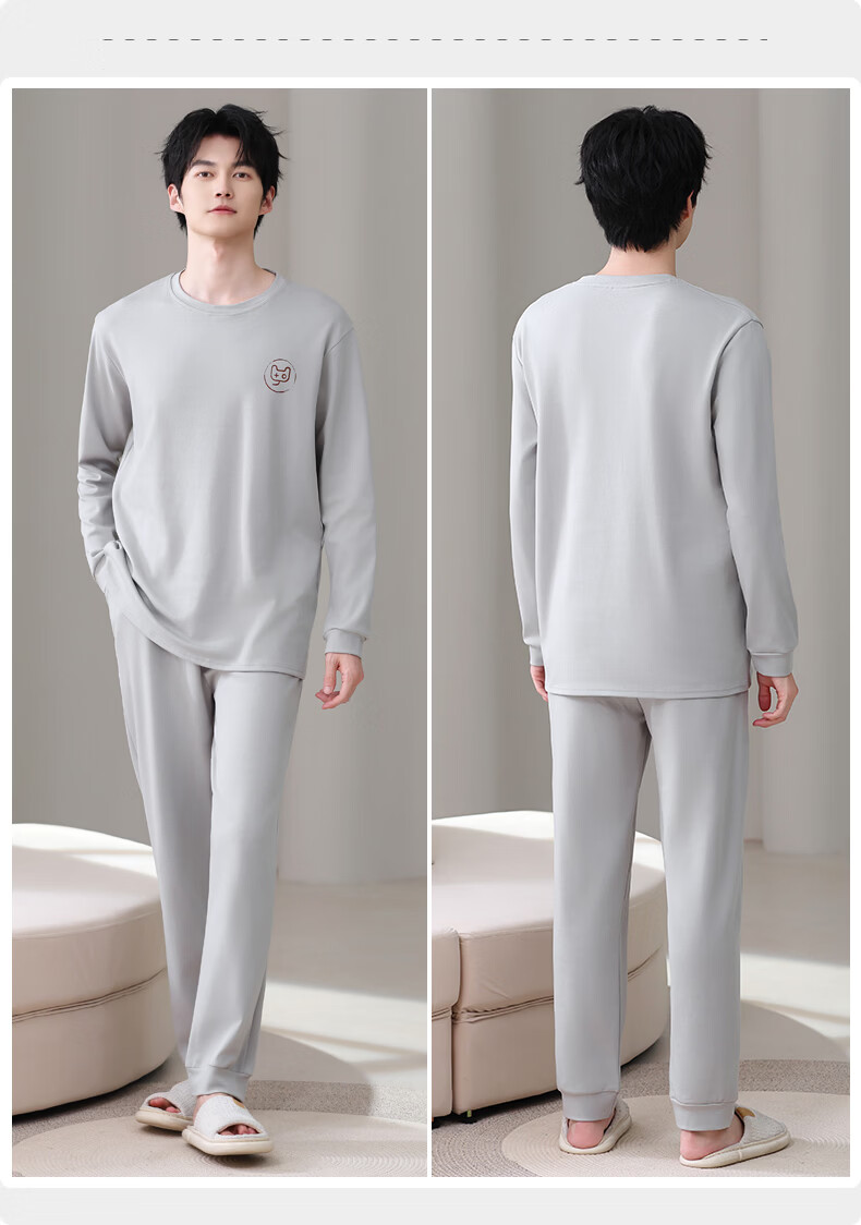 允织莱卡纯棉男睡衣春秋季休闲套头长袖薄款男士家居服可外穿大码套装 8609-浅灰 L (170) :建议100-135斤穿着