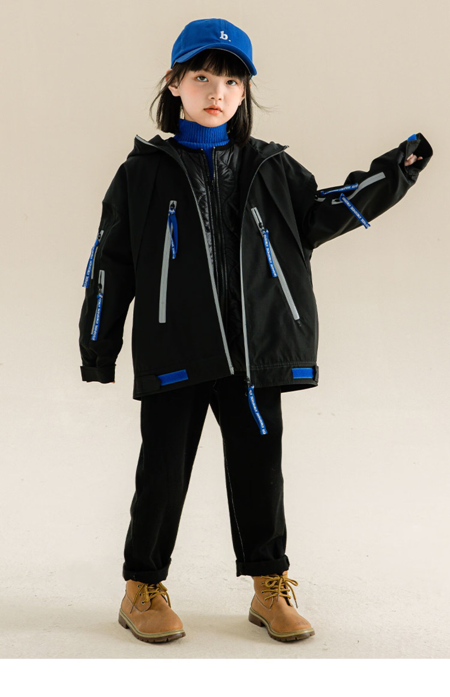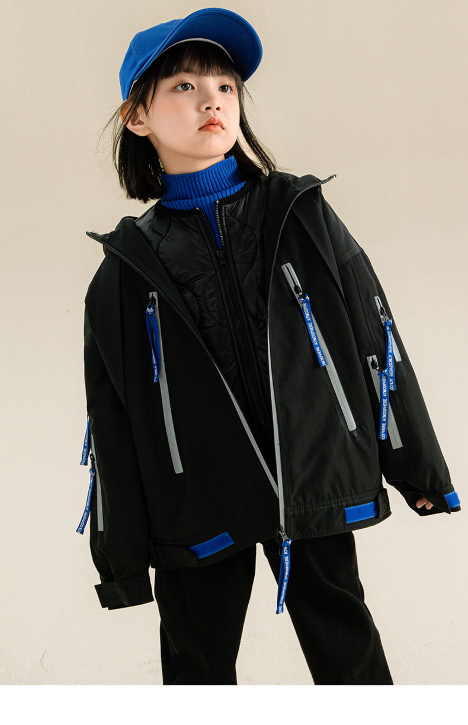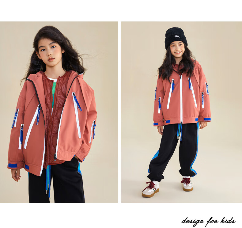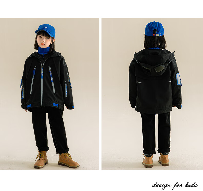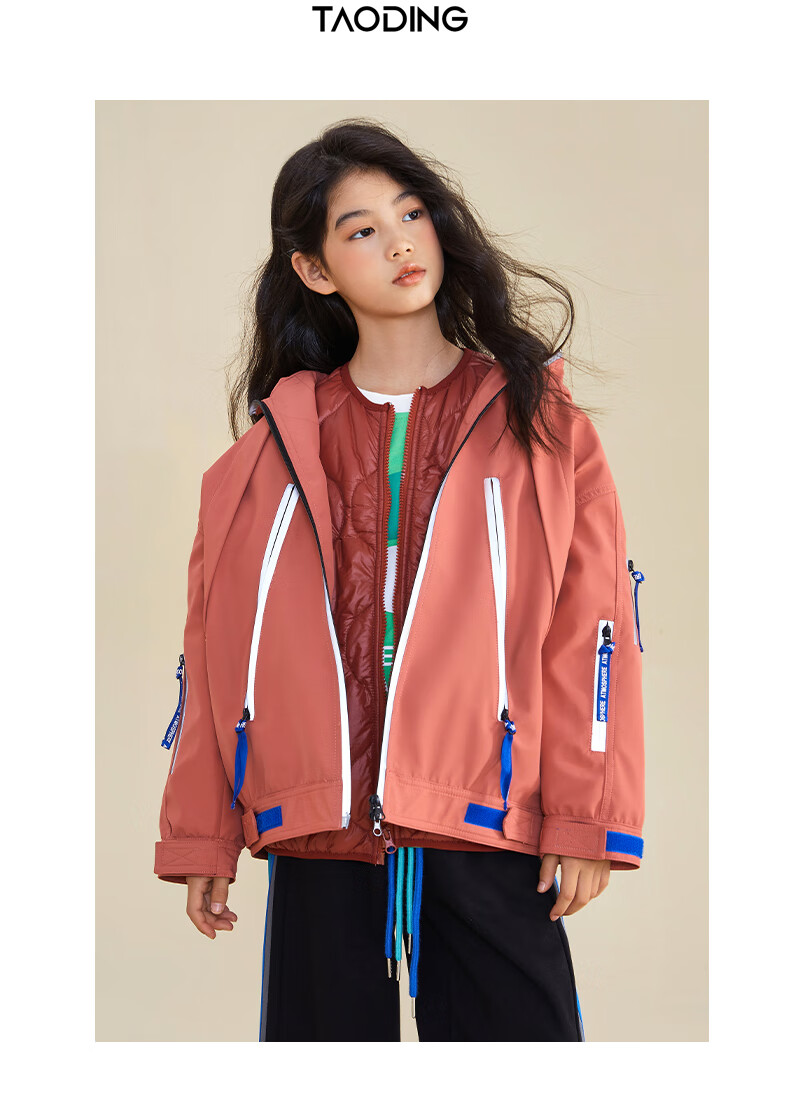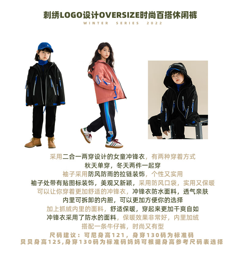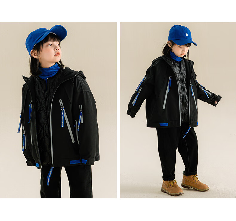 淘町女童三合一户外外套冬季时髦新款加厚可拆卸中大童棉衣两件套 黑色 140