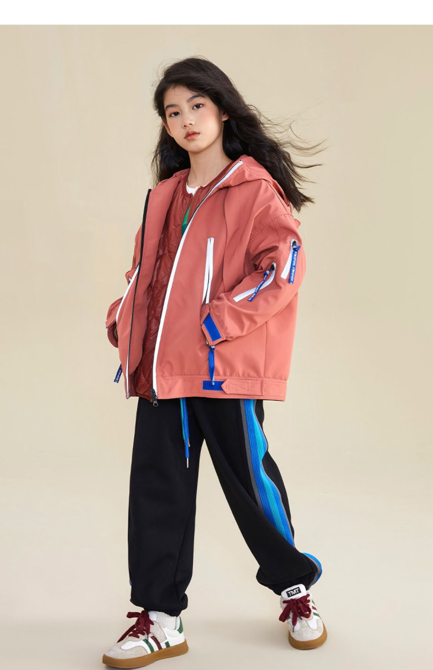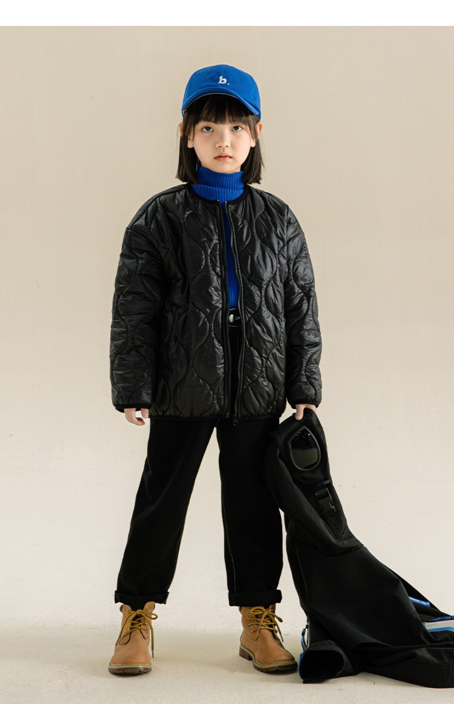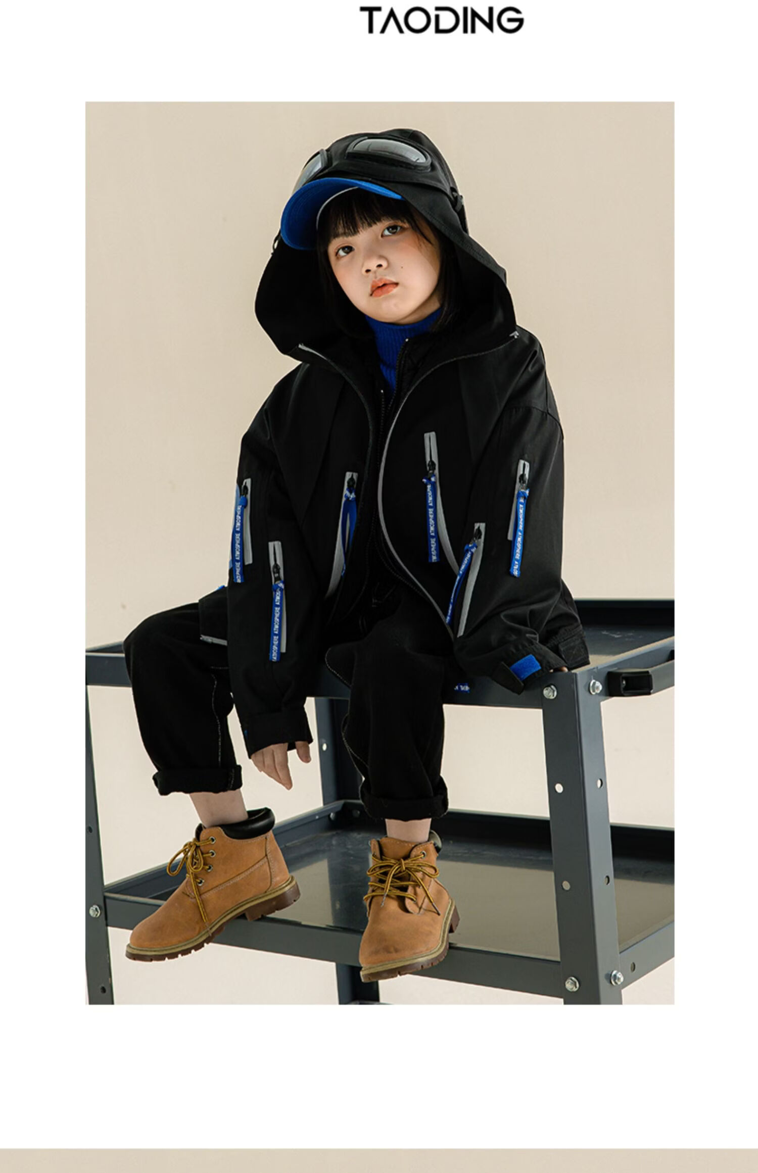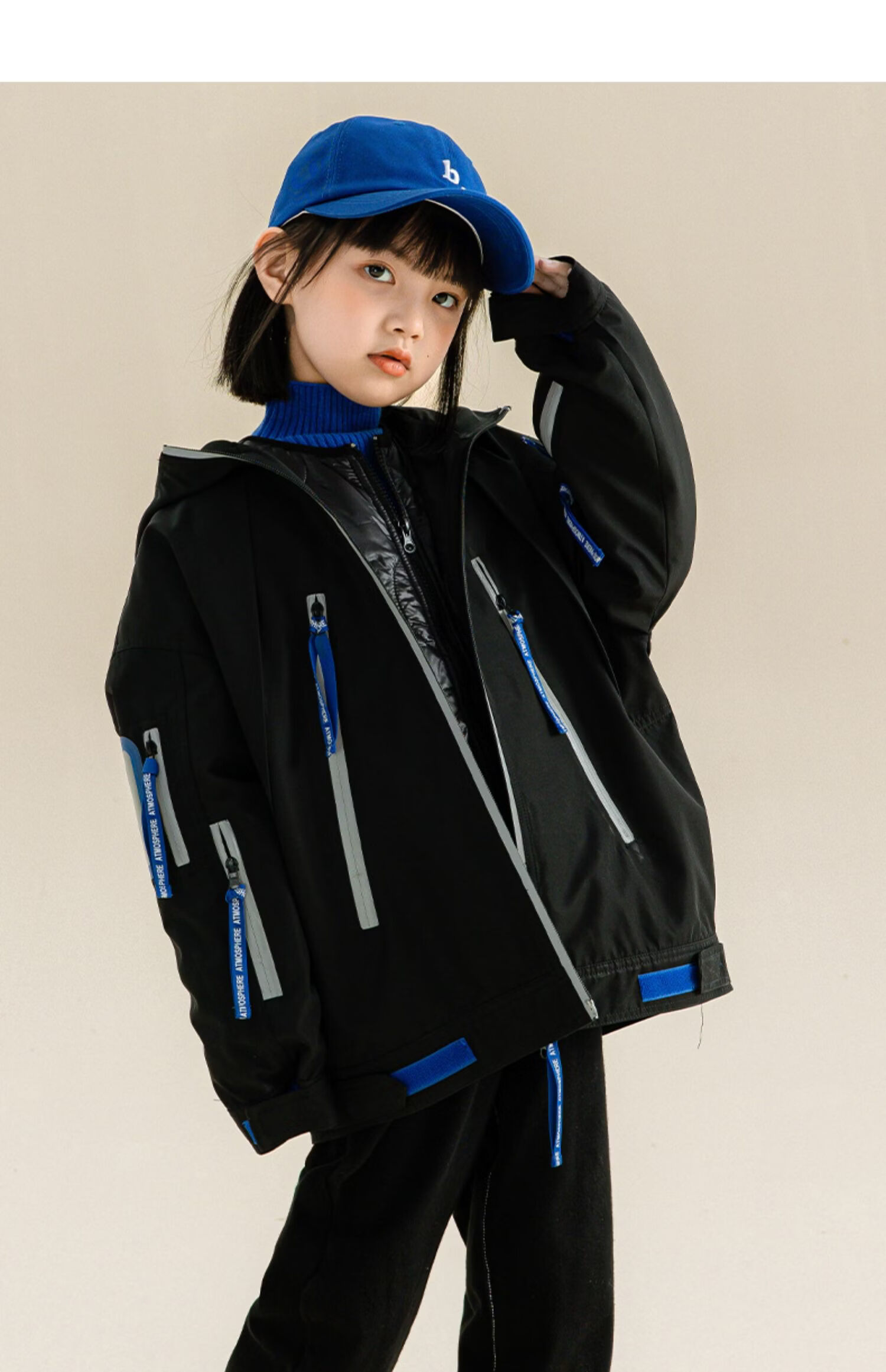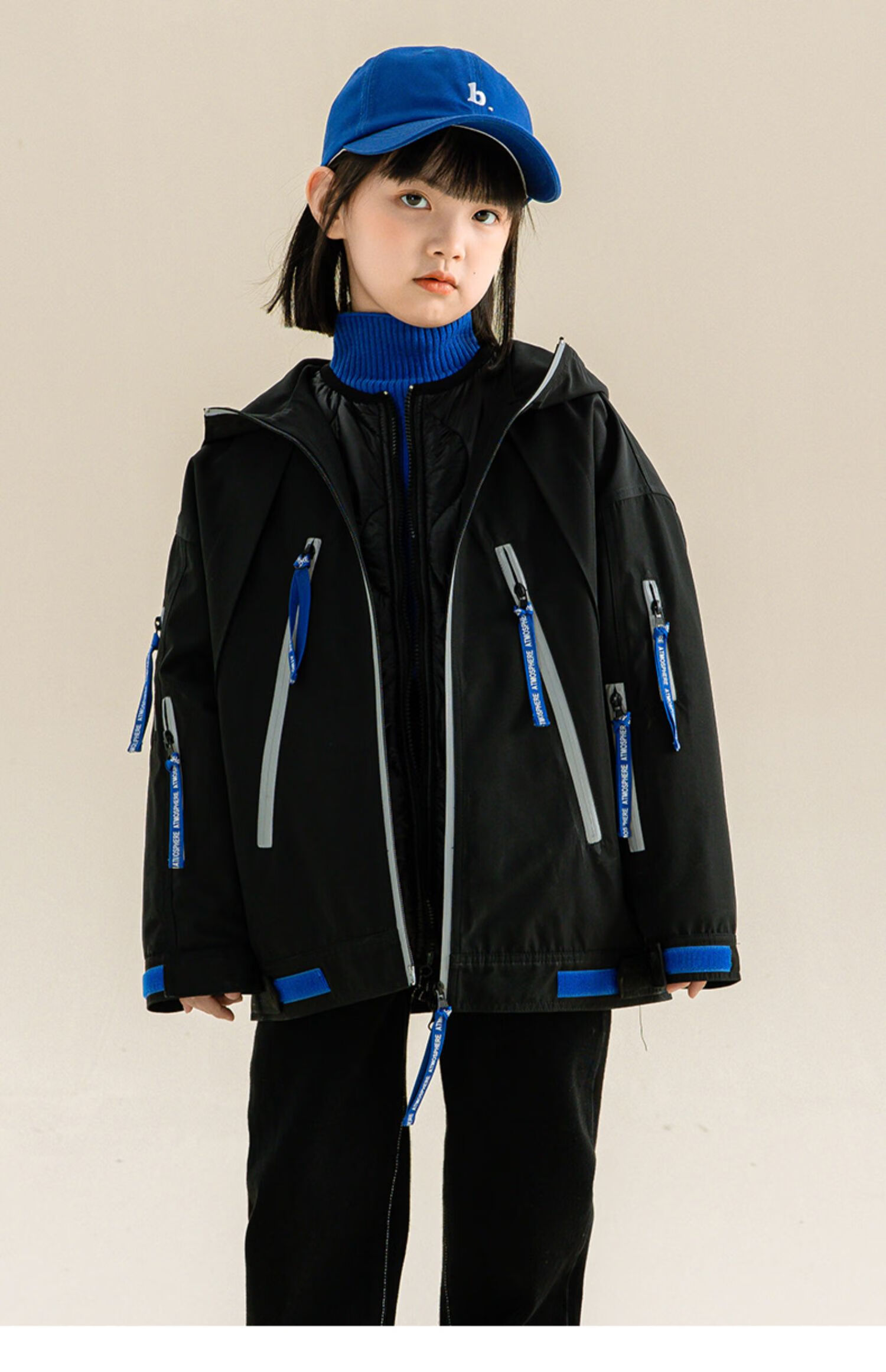 淘町女童三合一户外外套冬季时髦新款加厚可拆卸中大童棉衣两件套 黑色 140