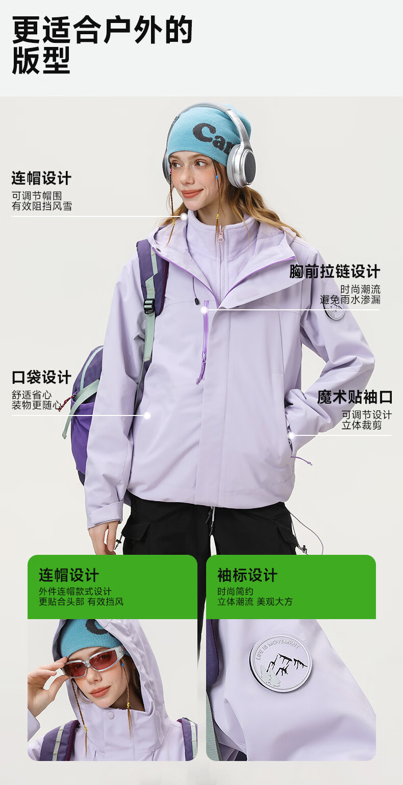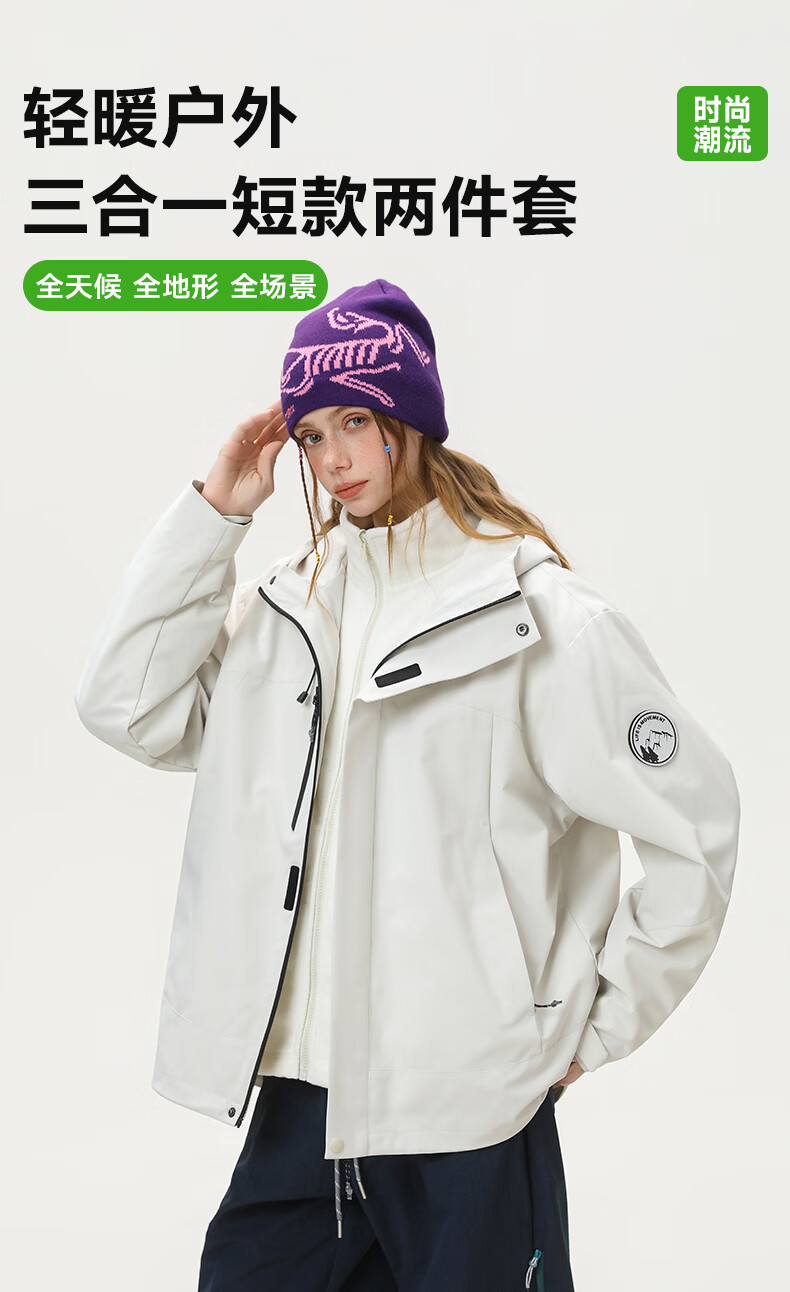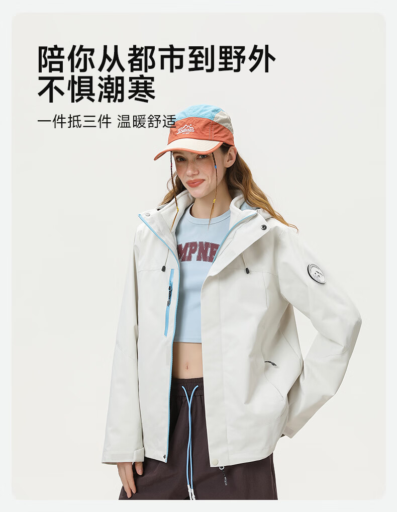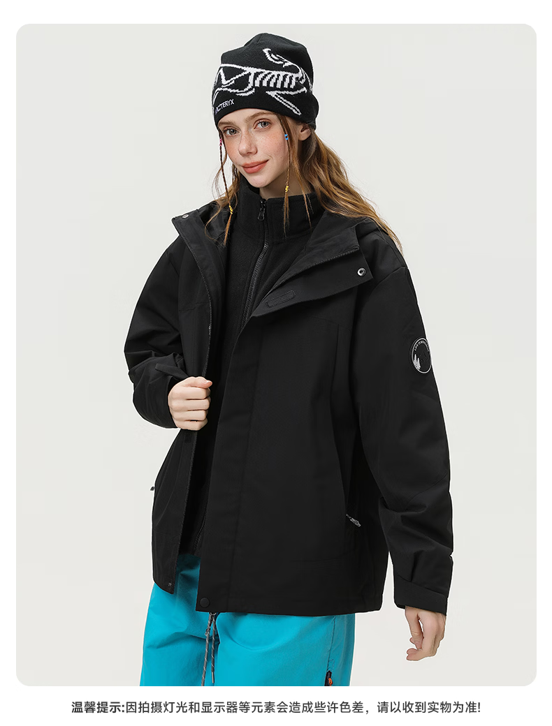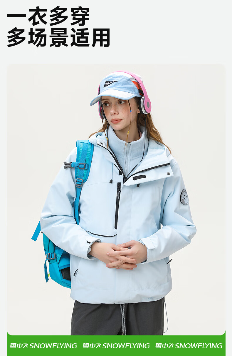 雪中飞防水三合一冲锋衣款式外套男女2026新款摇粒绒内胆情侣冬季两件套 远山蓝 185/100A 2XL(160-175斤)