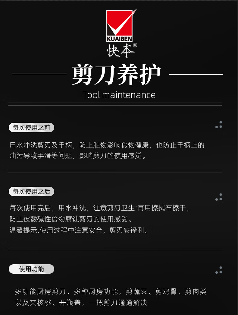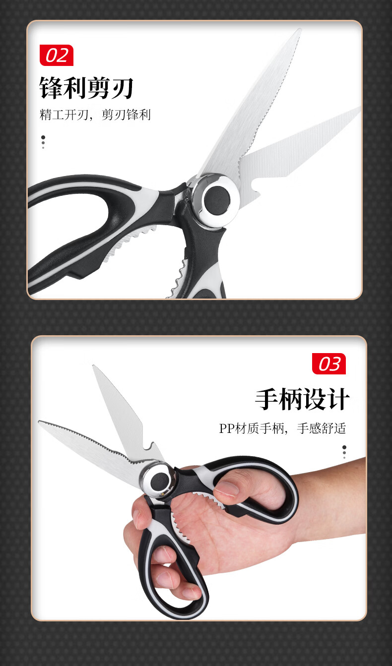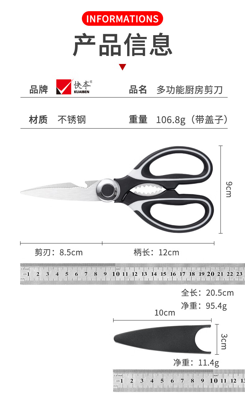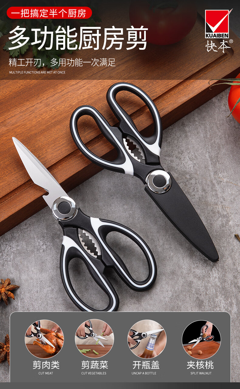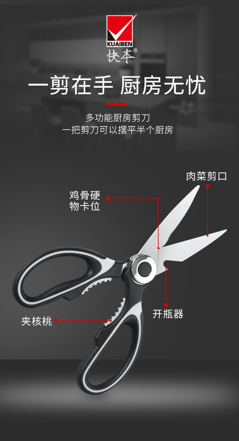 快本(KUAIBEN)厨房剪刀不锈钢剪刀家用多功能剪食物专用剪肉鸡骨剪子 熊猫剪(1.5常规)