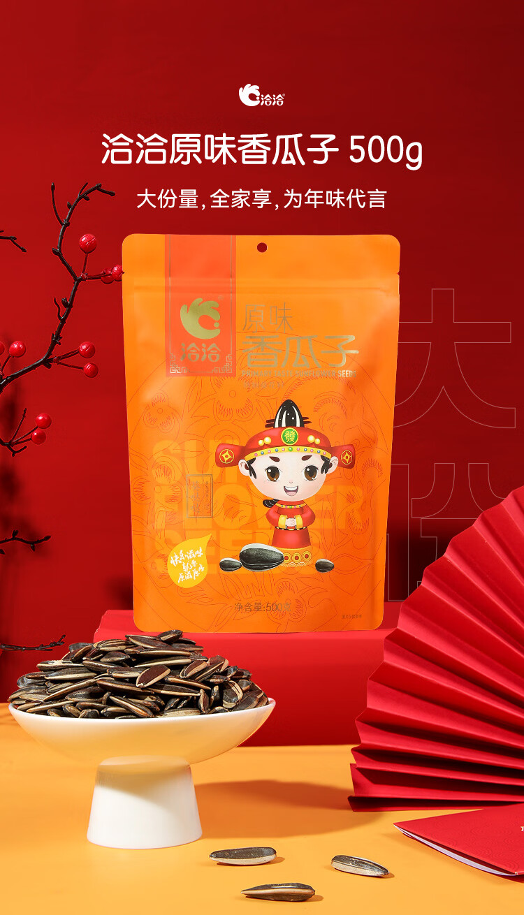 洽洽口口香原味香瓜子葵花籽大颗粒宿舍网红休闲零食小吃500g大包装