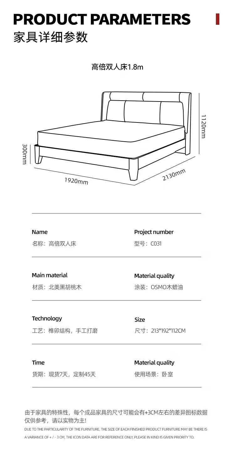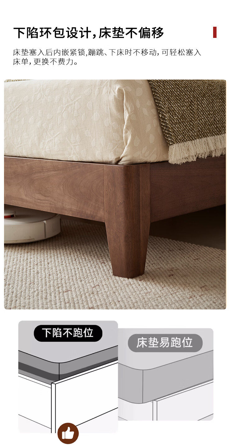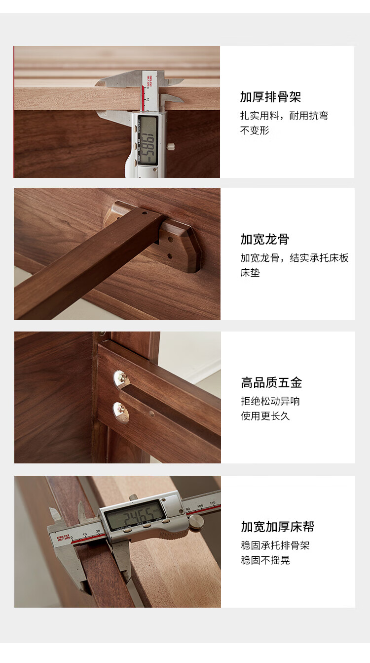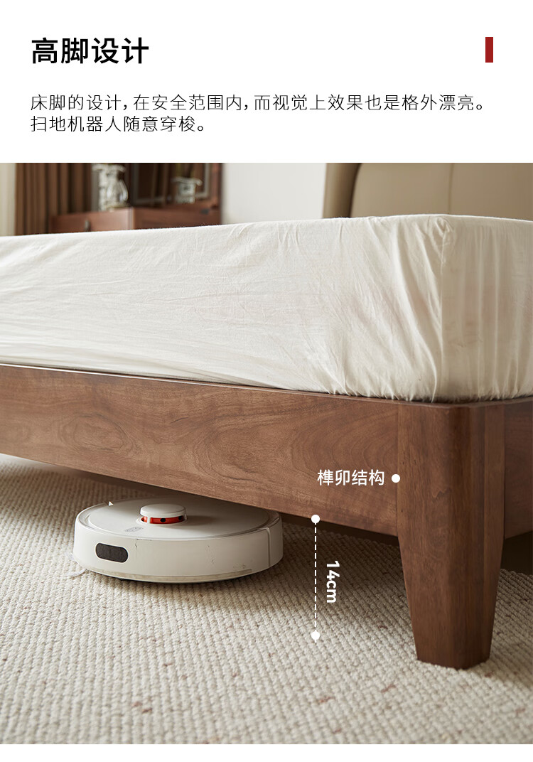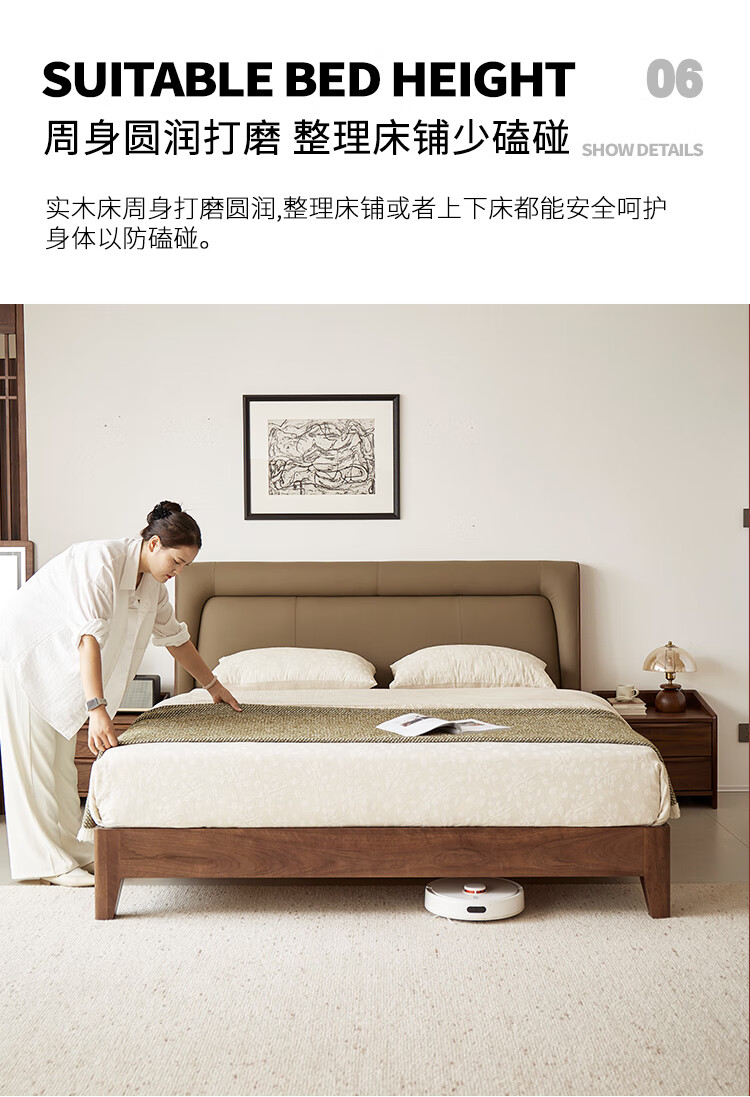 梵而全实木双人床北美黑胡桃家具现代简约真皮软靠主卧大床1.8x2米 高倍双人床【北美黑胡桃-真皮软靠】