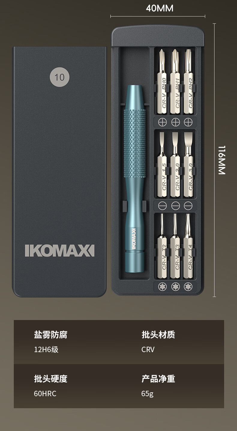 科麦斯(KOMAX)十字一字内六角精密螺丝刀笔记本拆装机专用多功能螺丝刀全套装 迷你10件套精密螺丝刀