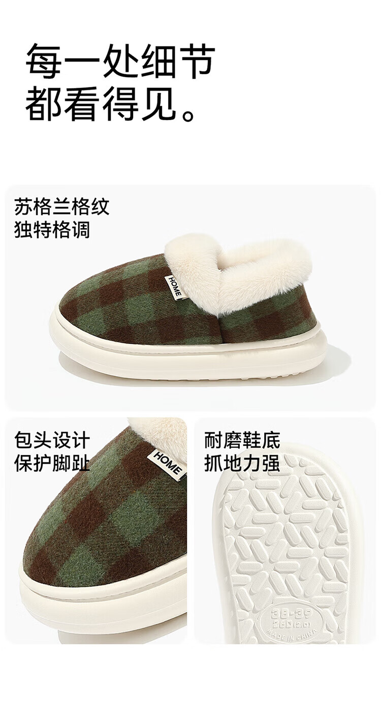 FZT2025新款秋冬季包跟棉拖鞋女士居家室内用静音保暖防滑毛绒棉鞋男 孔雀绿 44-45 【适合43-44】