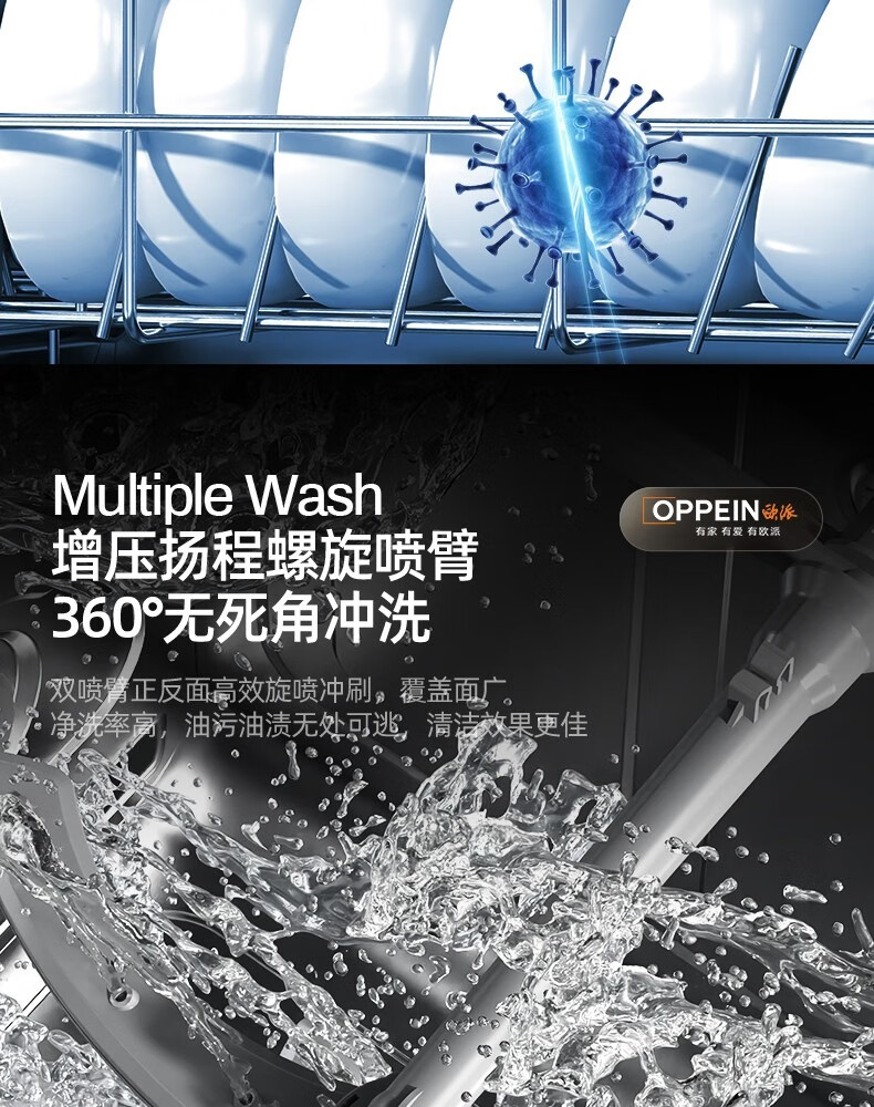 欧派(OPPEIN)集成水槽不锈钢一体机洗碗机可独立消毒烘干一体式集成水槽 紫外线110℃高温清洗烘干 一级水效 【800mm】大单槽+13套洗烘一体式