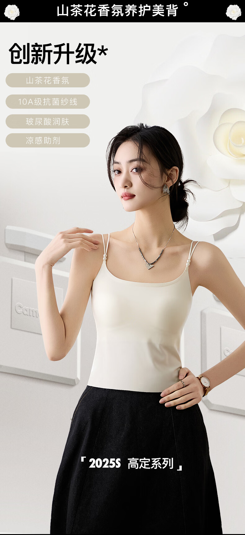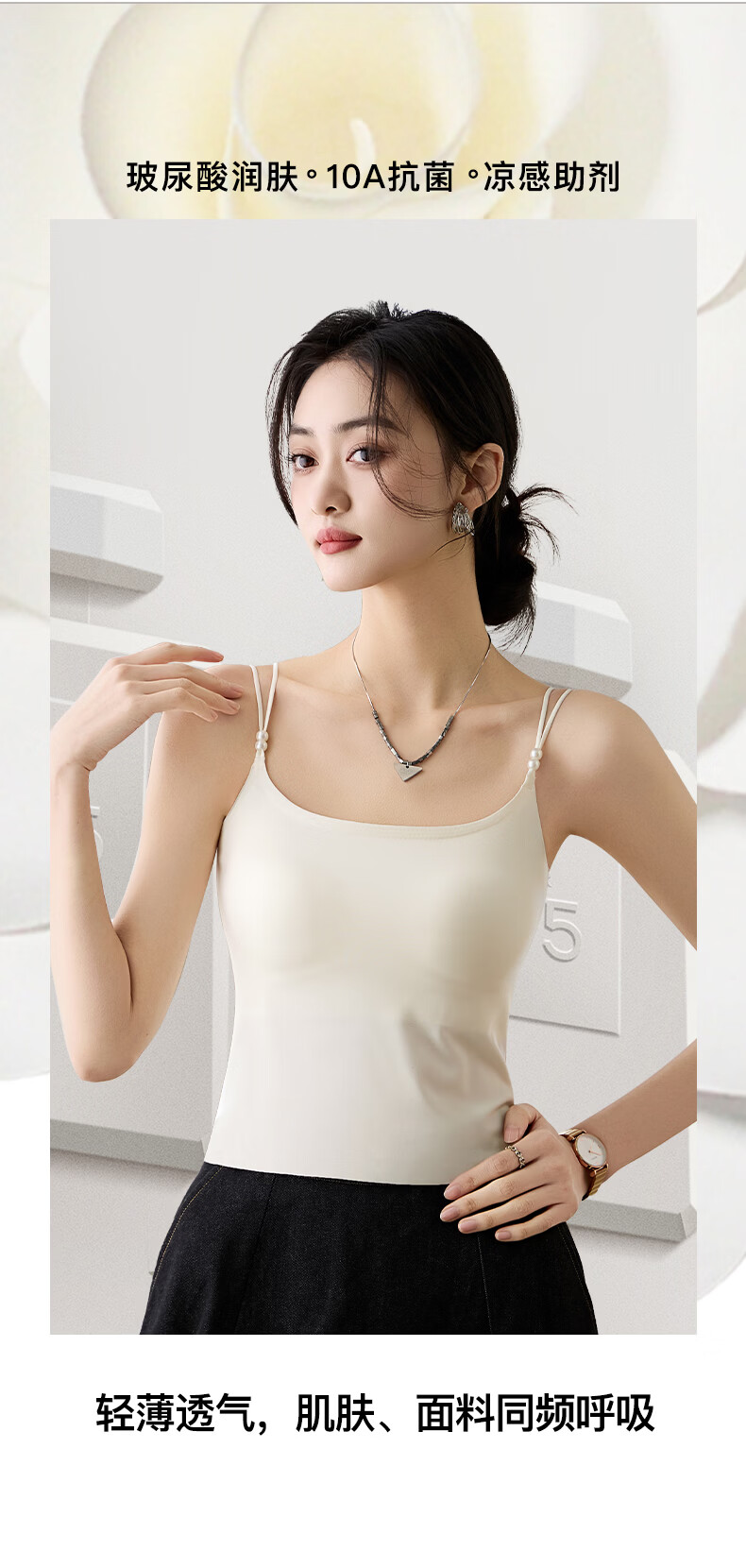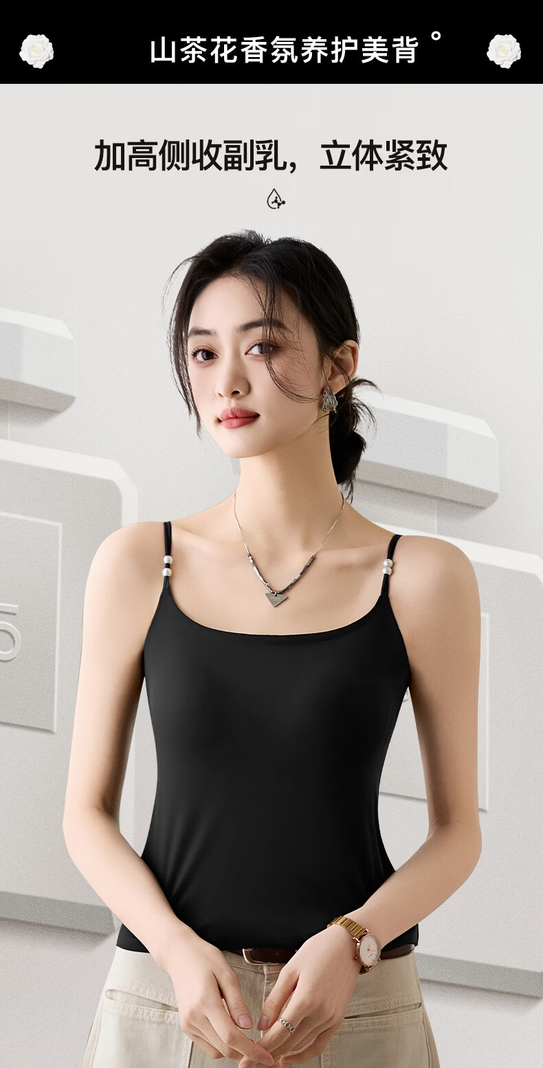 雅鹿吊带背心女内衣薄款冰丝夏季自带胸垫一体外穿内搭打底免穿文胸 B组:梦境黑+米棕 M 长款(90-110斤)