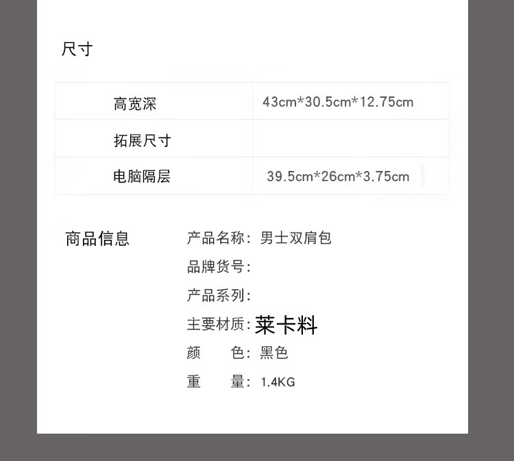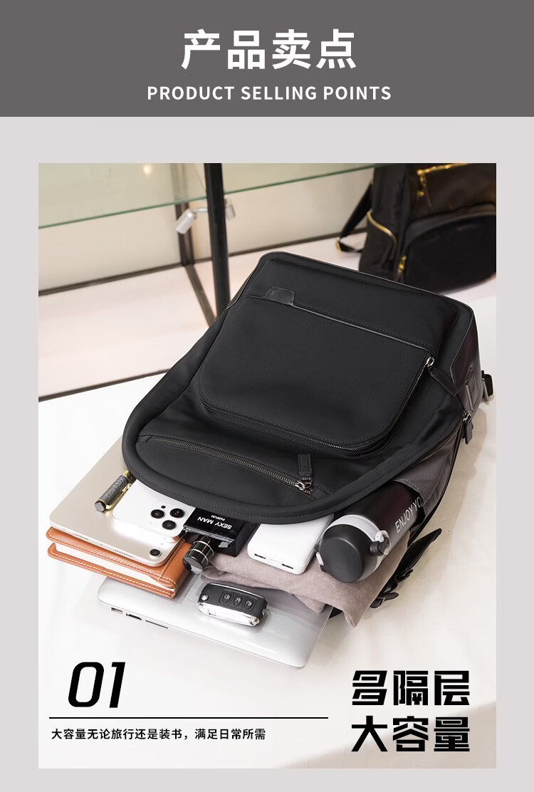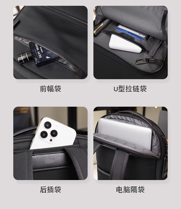 男士双肩包2026时尚简约百搭商务通勤电脑背包轻便大容量旅行背包 黑色 023黑色