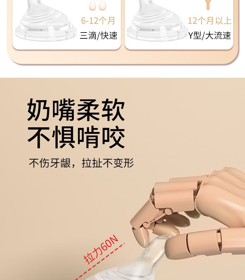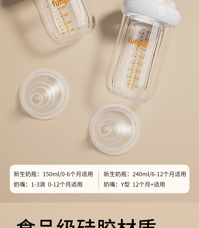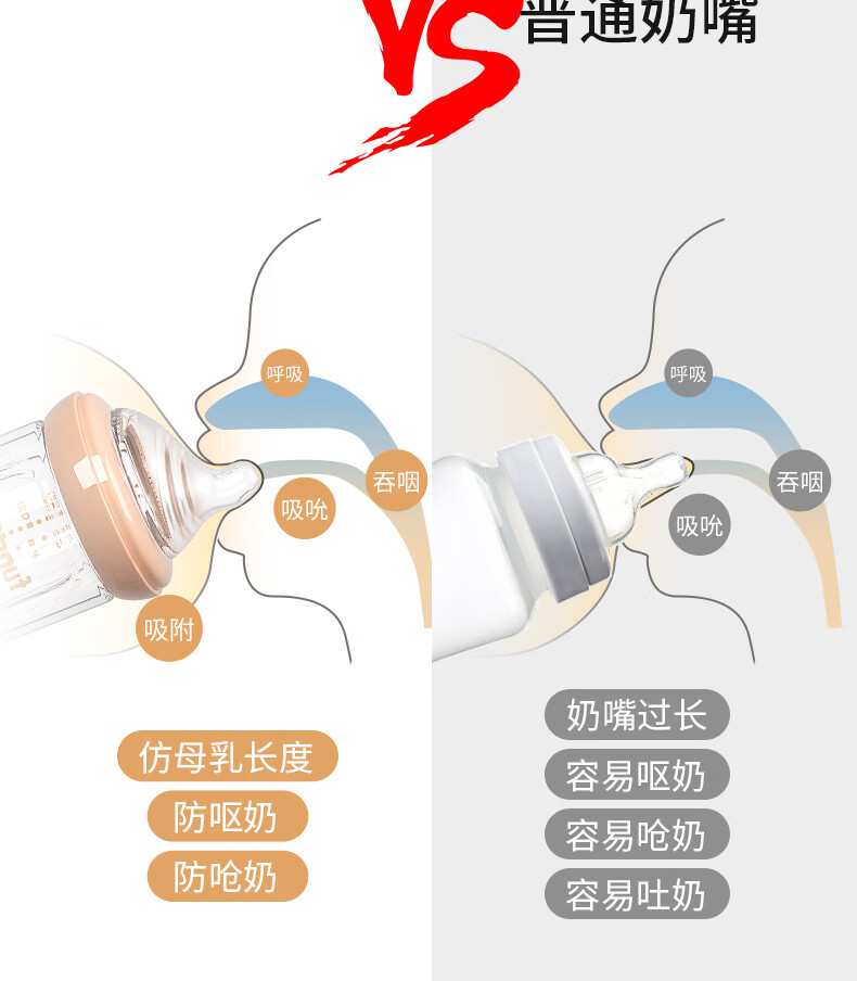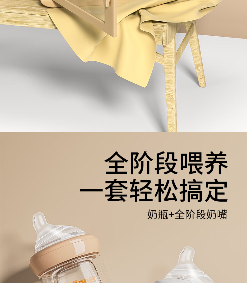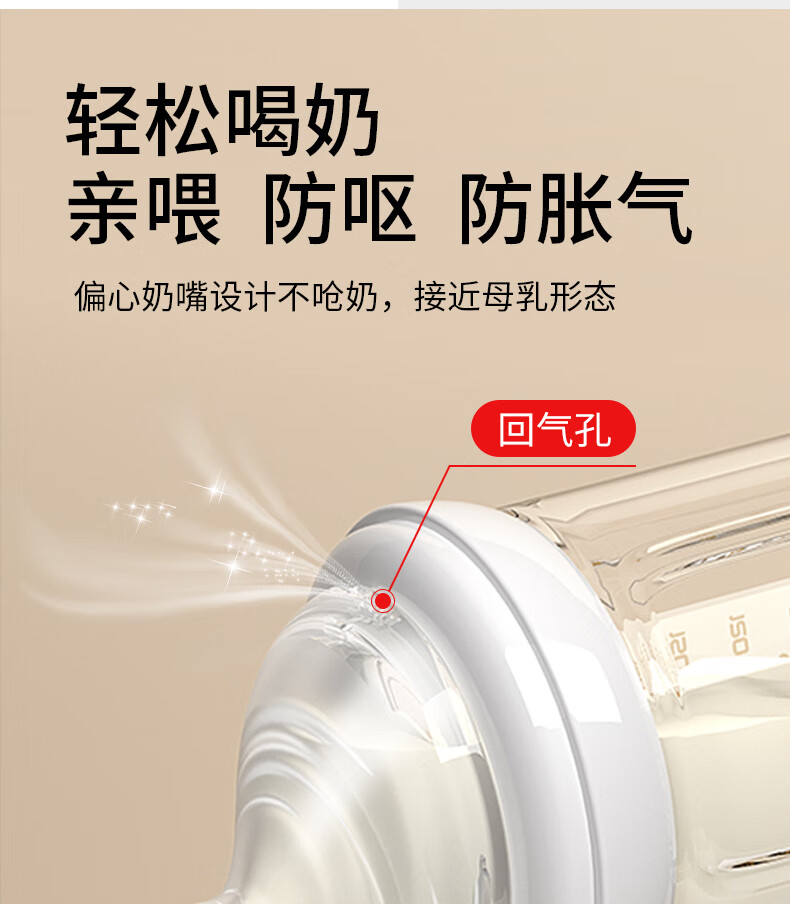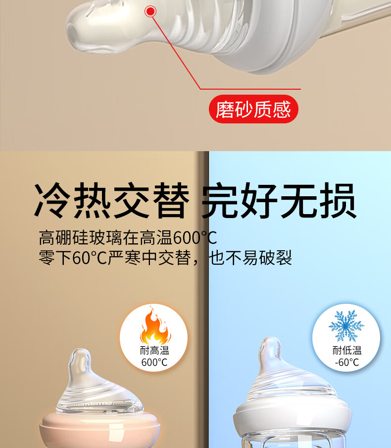 煦凛【日本】玻璃奶瓶0-6-12个月以上新生儿防呛防胀气宽口径宝宝专用 樱花粉240ml-3滴(6-12个月)送Y型奶嘴