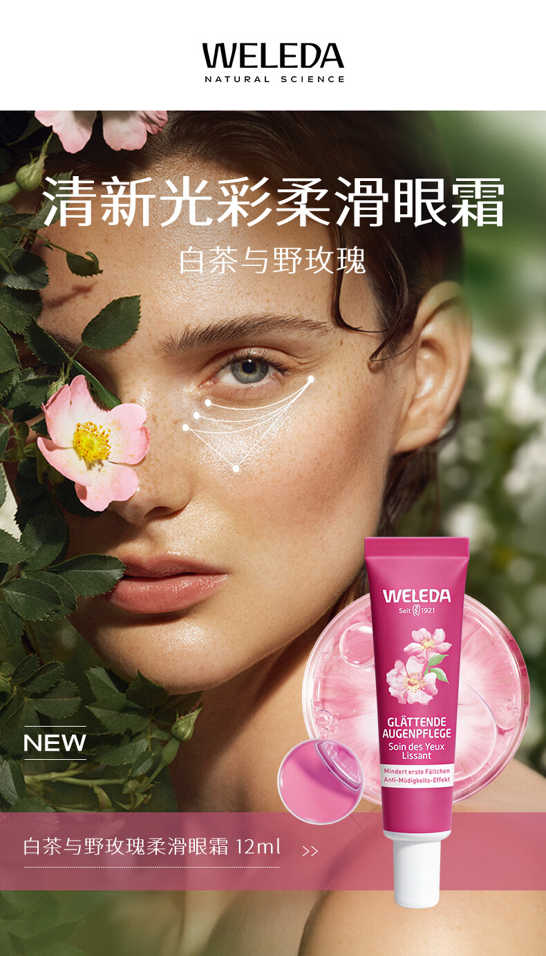 维蕾德(WELEDA)有机玫瑰眼霜淡化细纹咖啡因提拉紧致抗老熬夜黑眼圈眼袋25-45岁 白茶玫瑰眼霜12ml