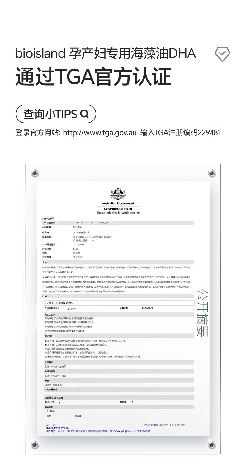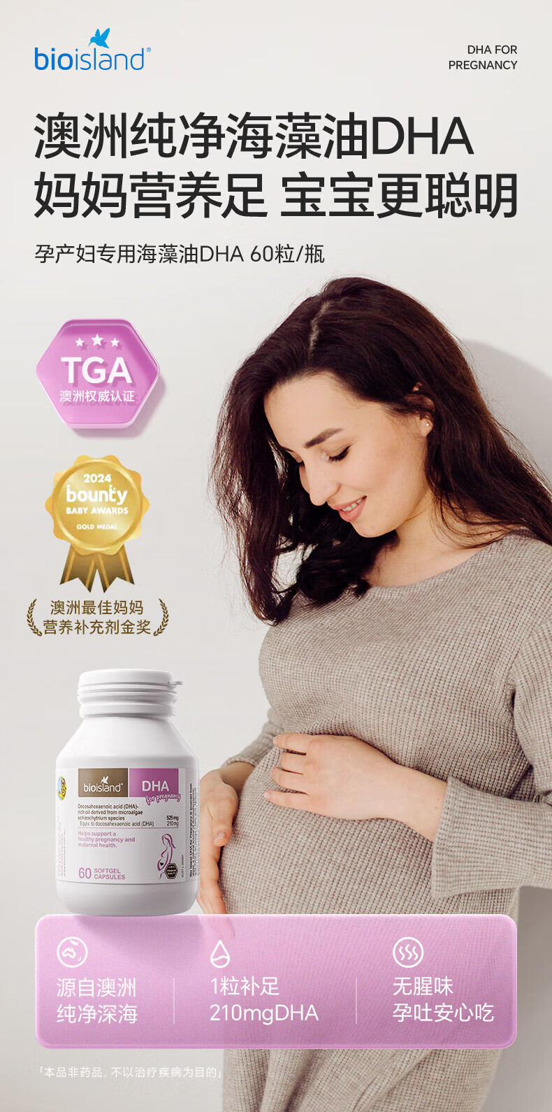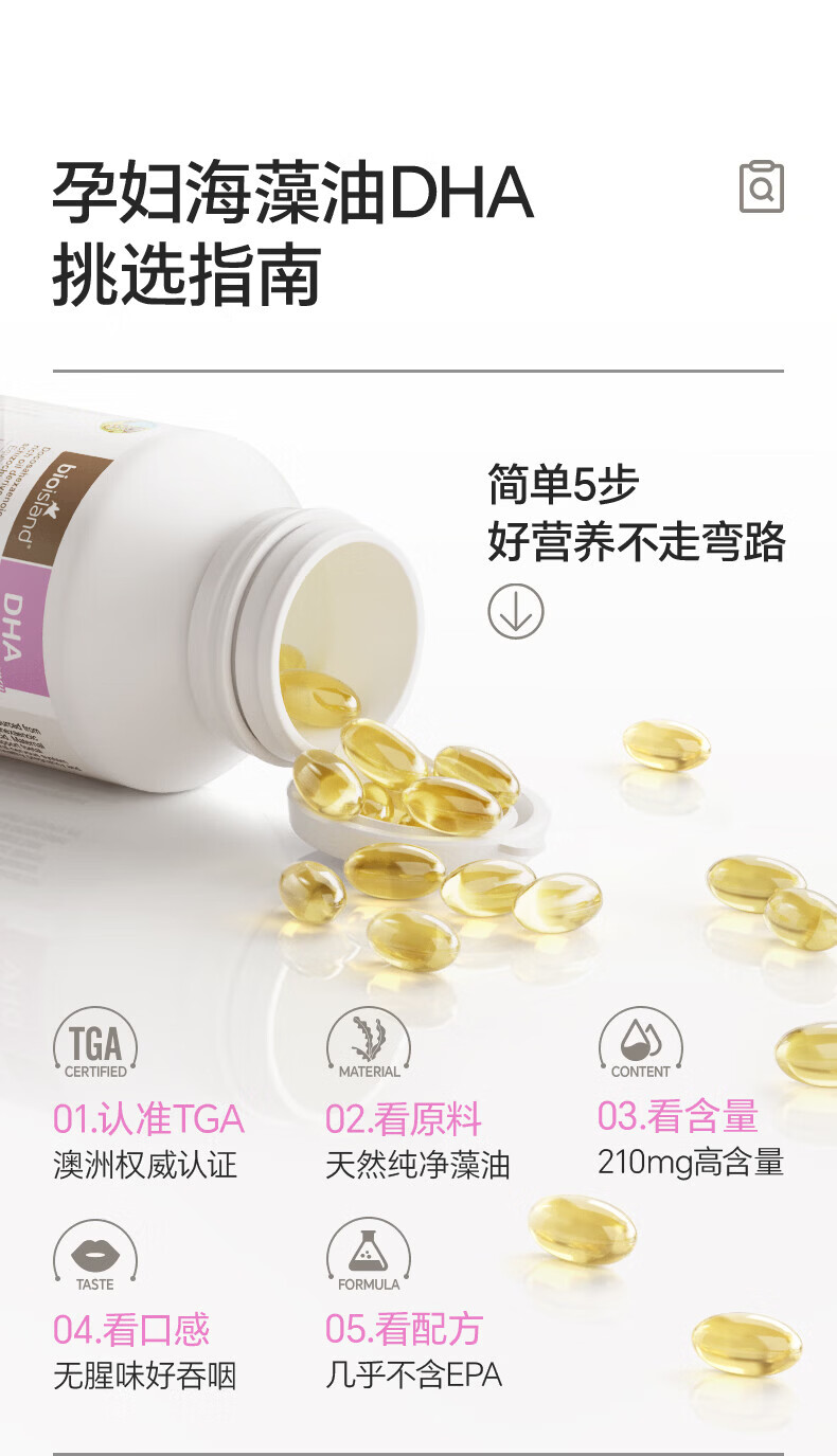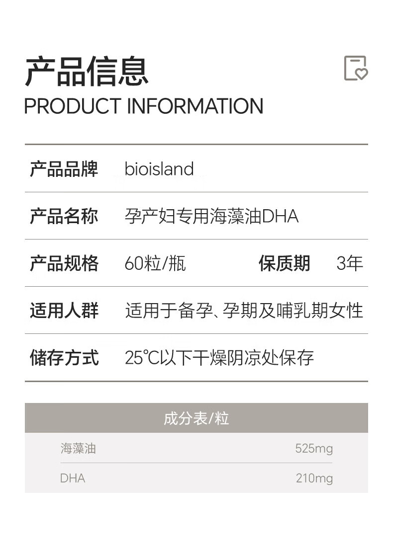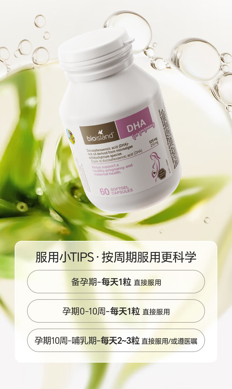 BIOISLANDBio Island佰澳朗德 孕妇DHA海藻油备孕孕期哺乳期软胶囊 【实惠套组】孕妇藻油DHA 60粒*2瓶