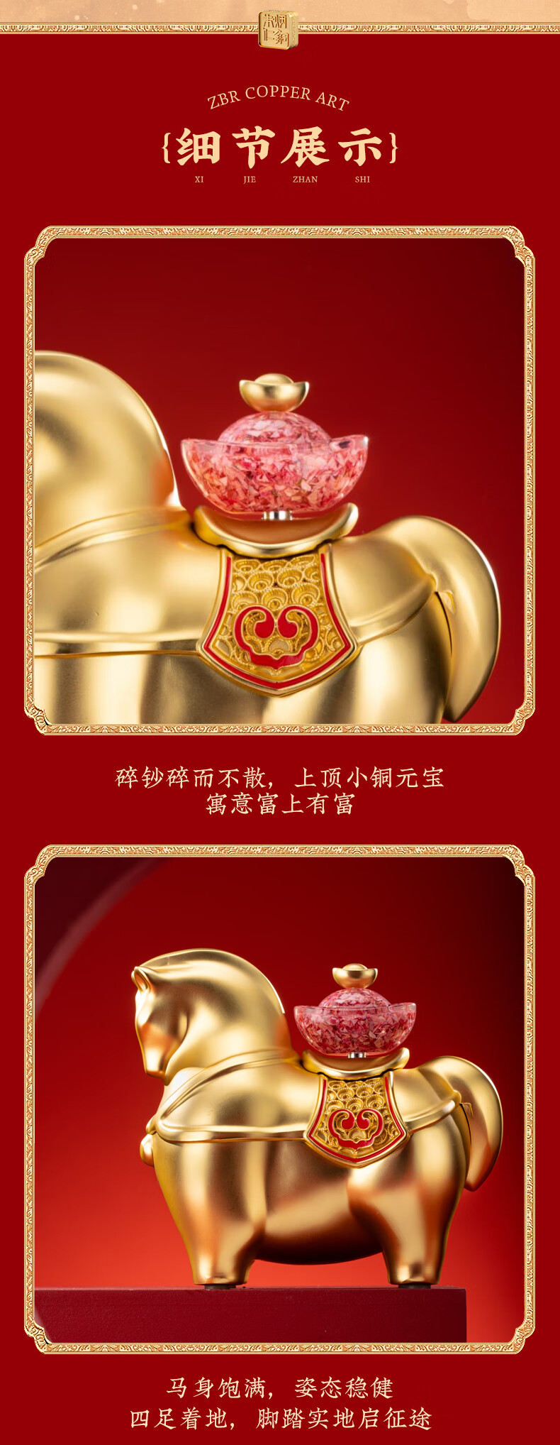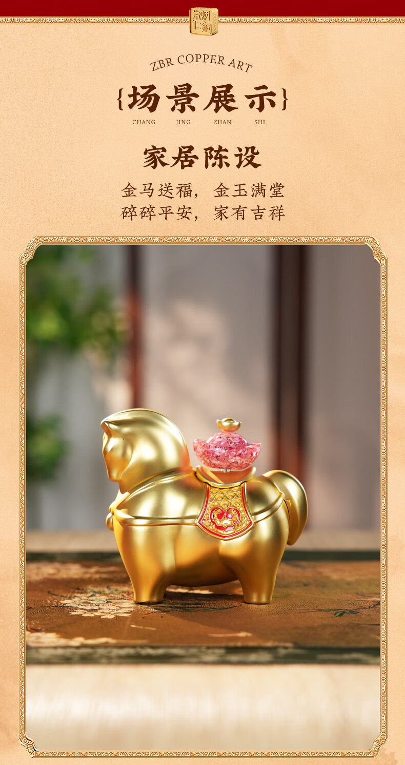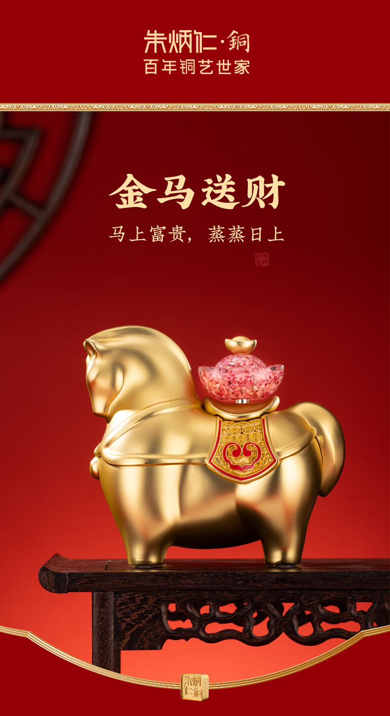 朱炳仁铜 金马送财 生肖马铜书房工艺品办公室桌面装饰品马摆件礼赠品 金马送财