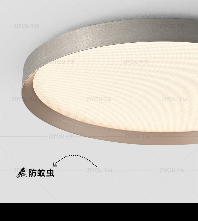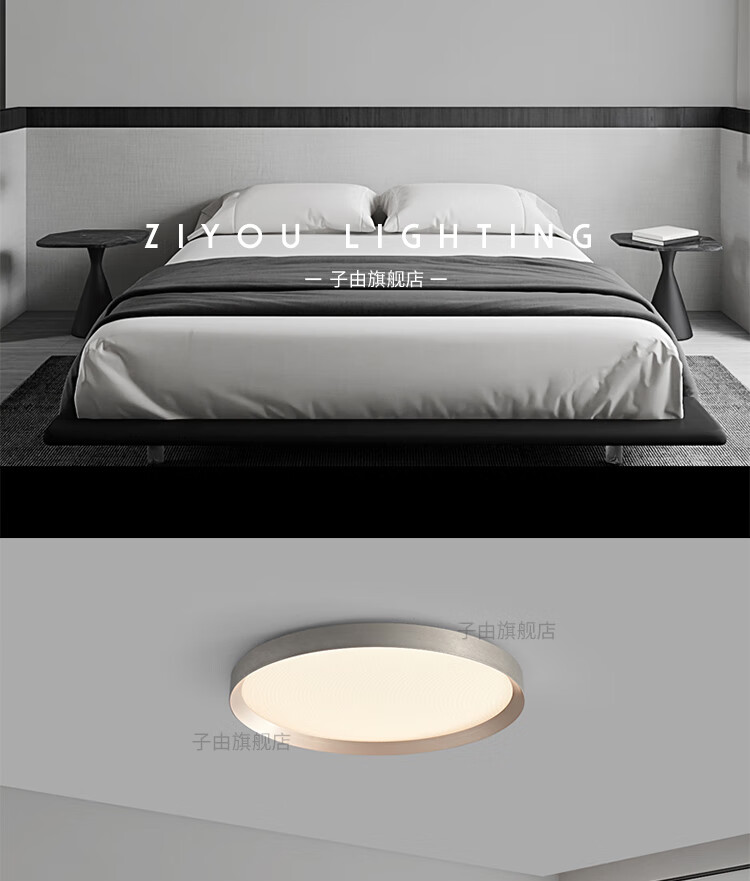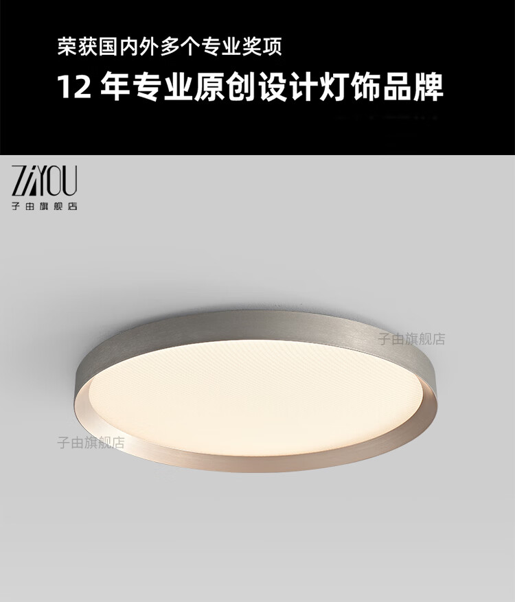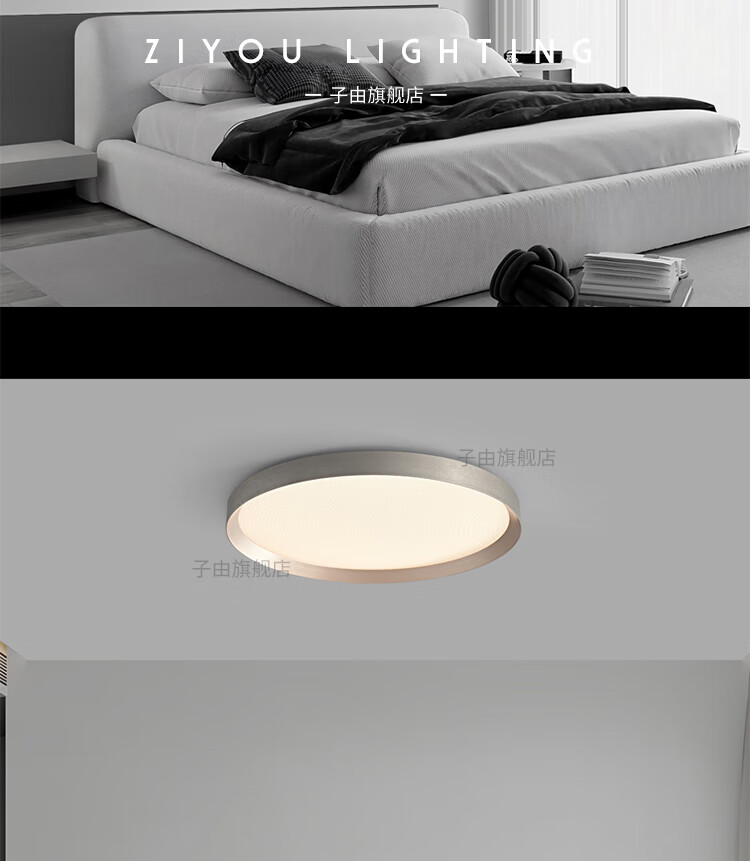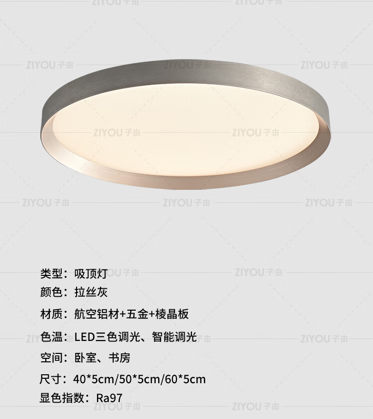 子由卧室吸顶灯 2025新款意式极简高级感圆形护眼书房主卧吸顶灯房灯 L50CM 拉丝灰(美国普瑞光源-无极调光)