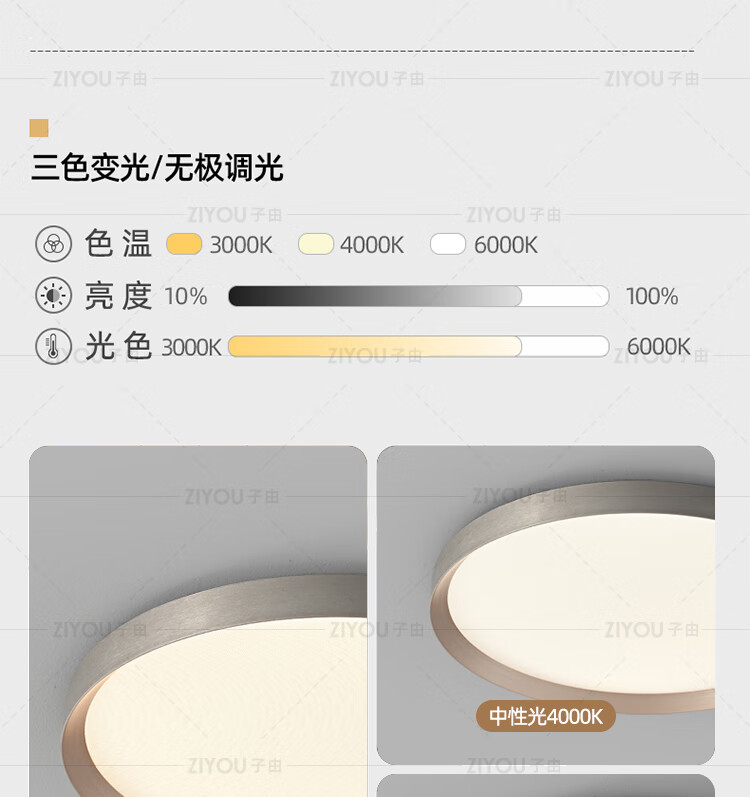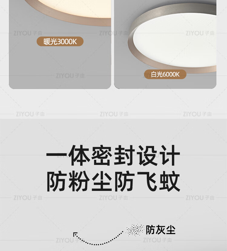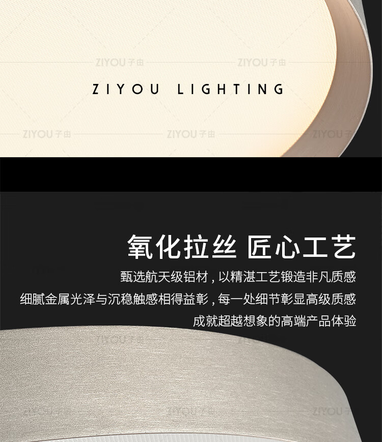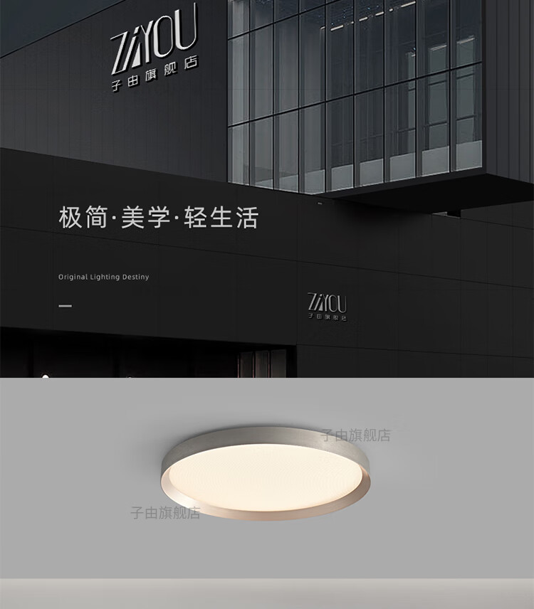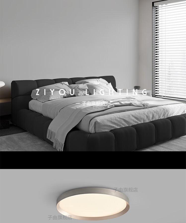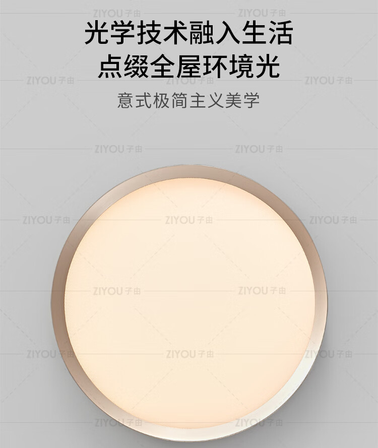 子由卧室吸顶灯 2025新款意式极简高级感圆形护眼书房主卧吸顶灯房灯 L50CM 拉丝灰(美国普瑞光源-无极调光)