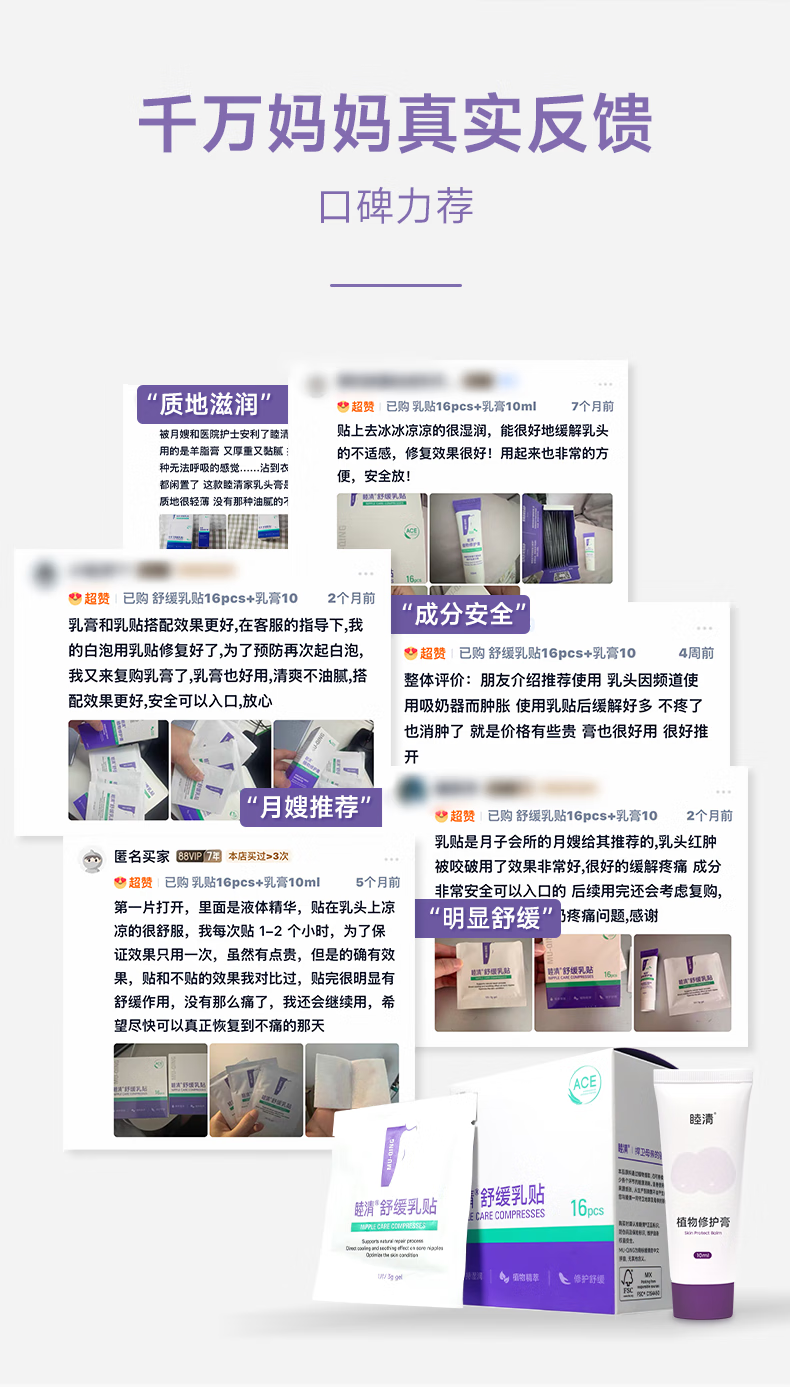 睦清植物修护膏舒缓乳贴套装乳头霜皲裂护理防干裂哺乳期 舒缓乳贴16片+乳头膏10ml