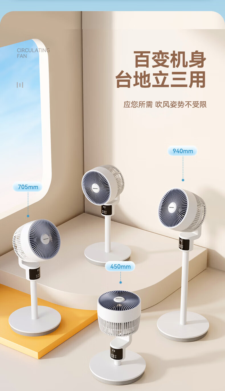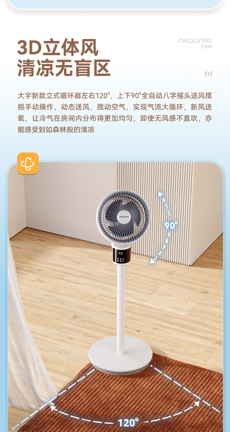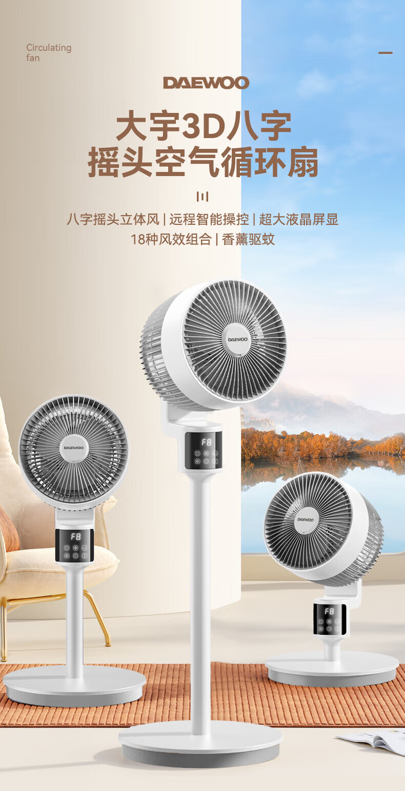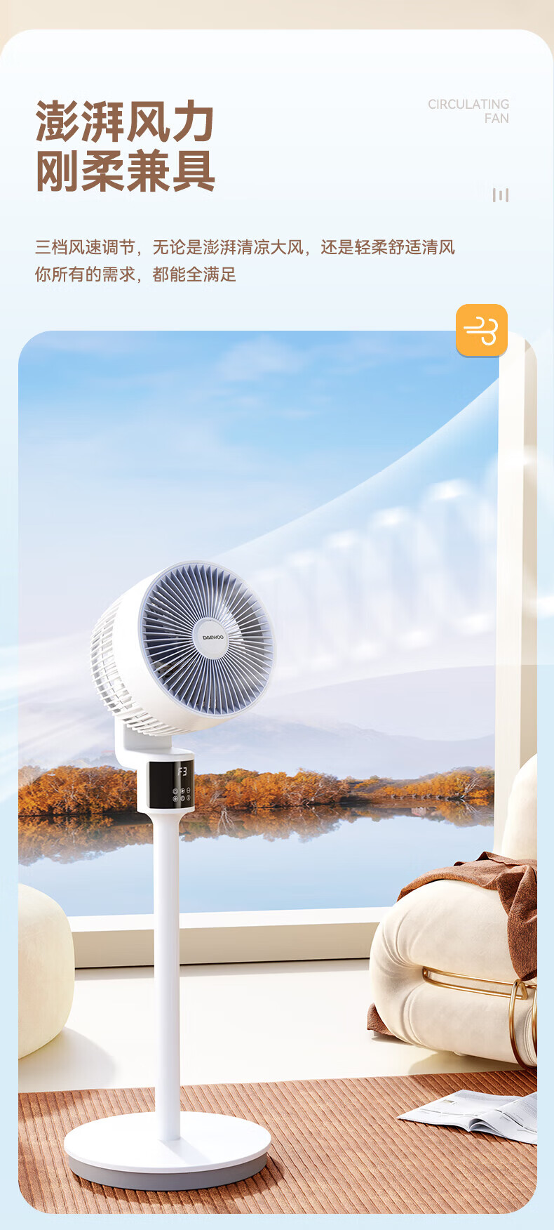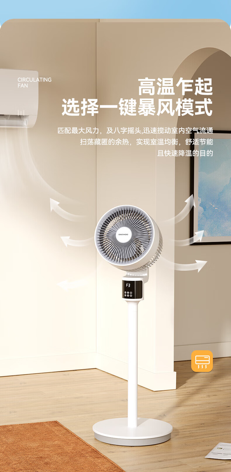 大宇空气循环扇遥控电风扇落地家用摇头电扇涡轮换气扇循环对流风扇落地扇台地两用 X1白色机械款