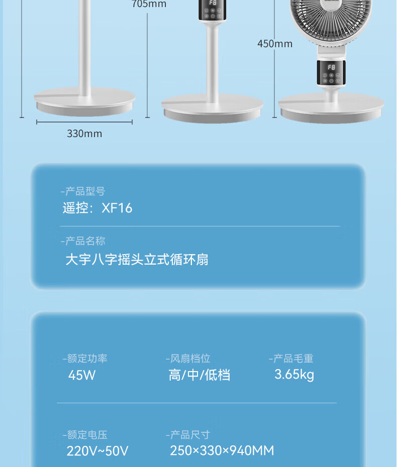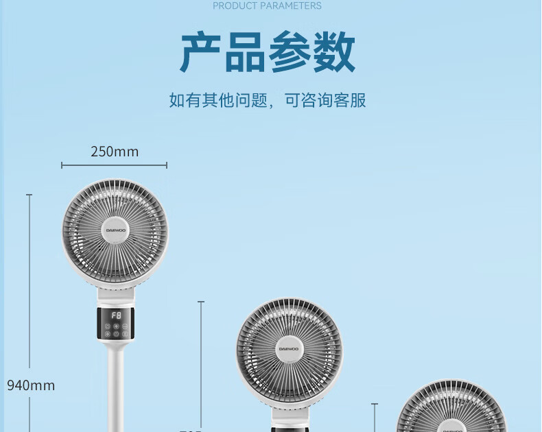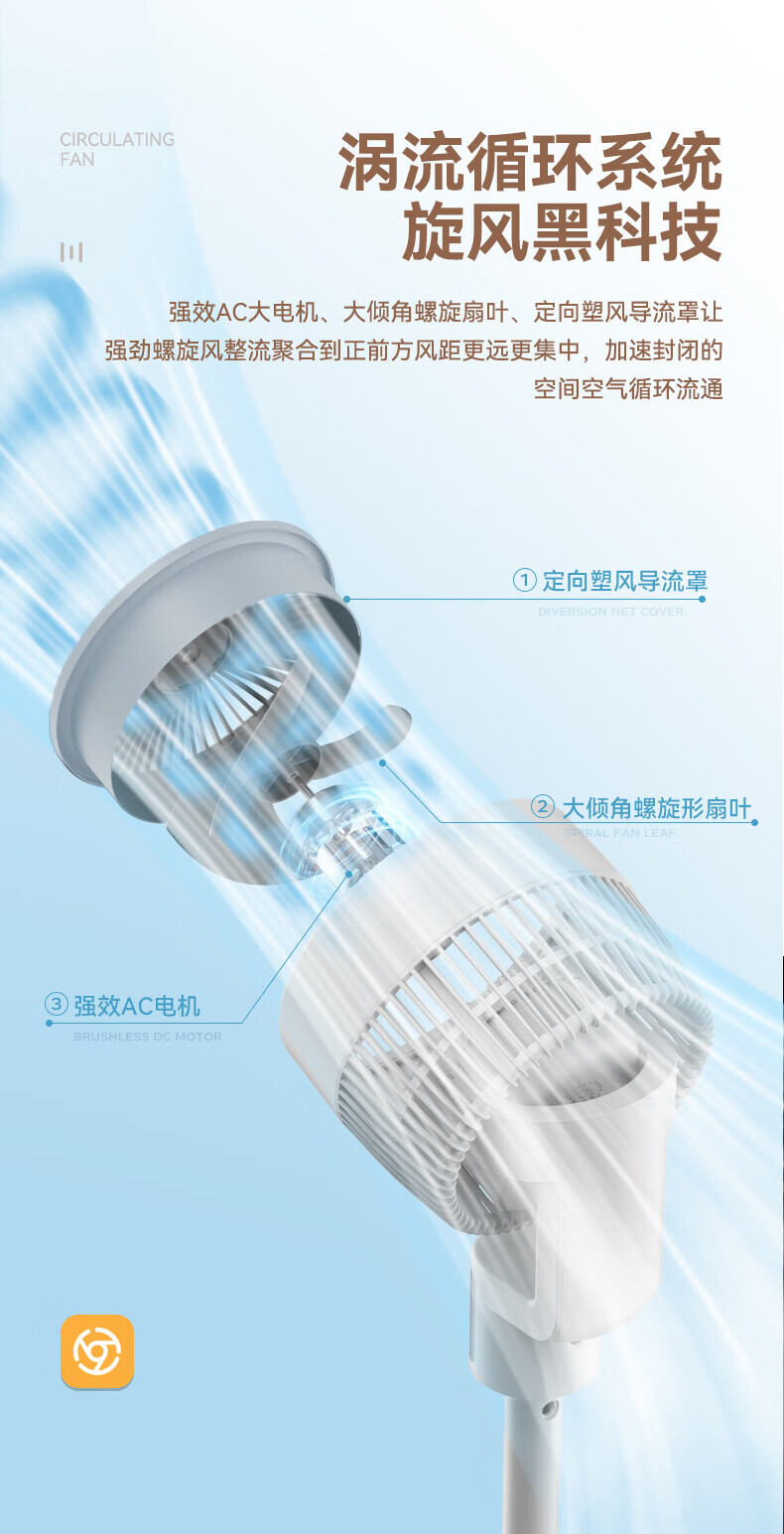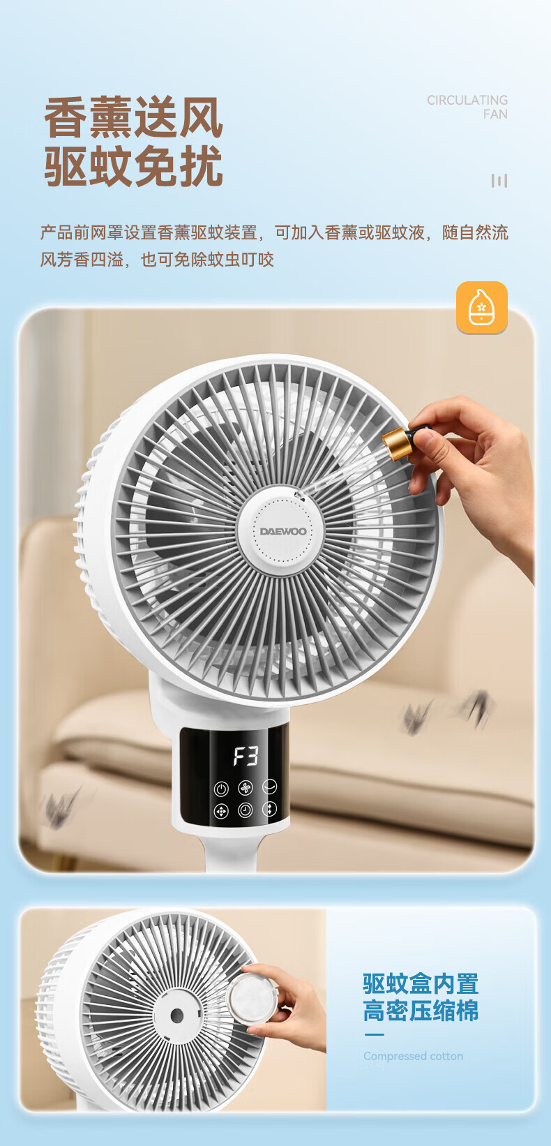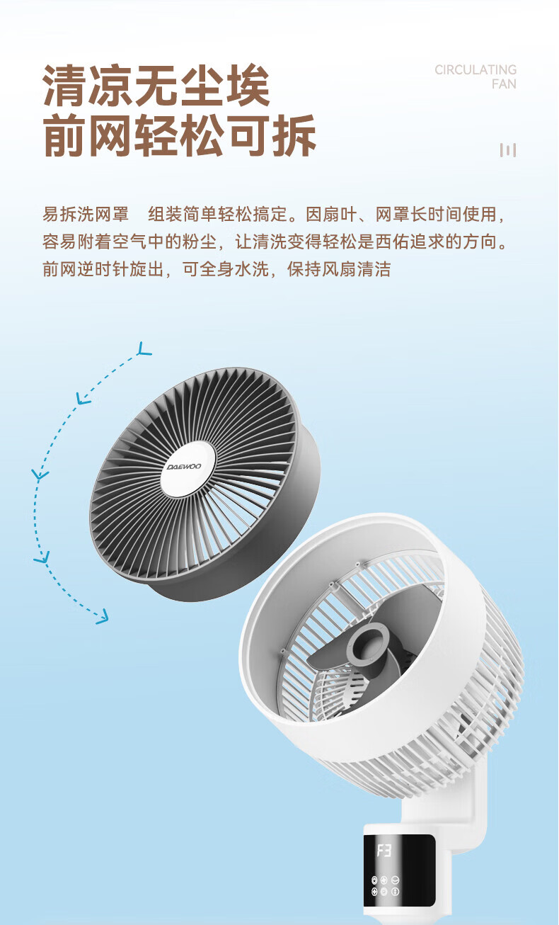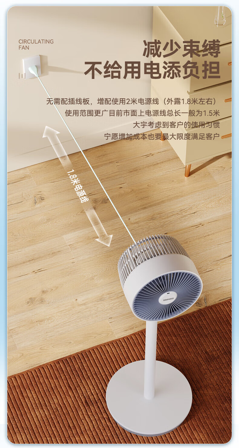大宇空气循环扇遥控电风扇落地家用摇头电扇涡轮换气扇循环对流风扇落地扇台地两用 X1白色机械款