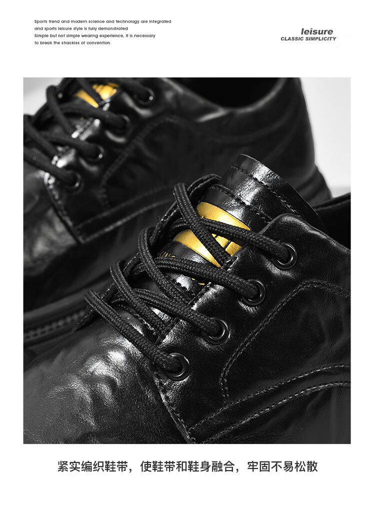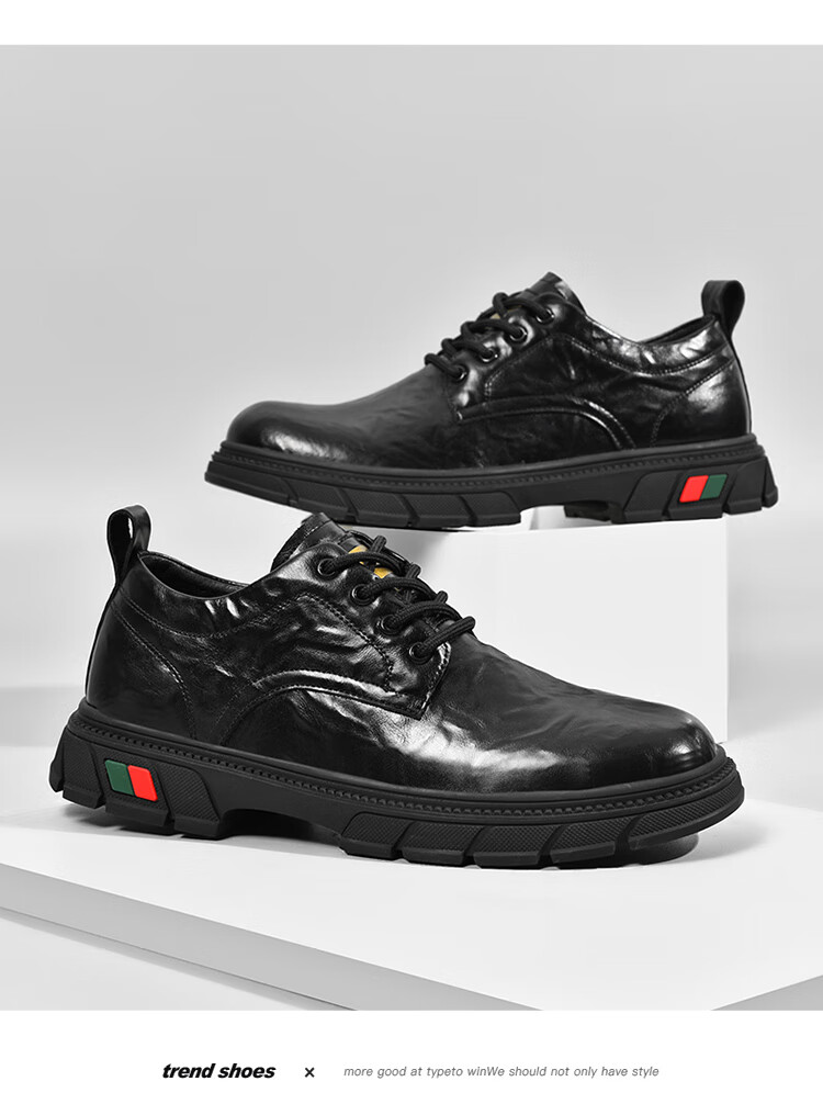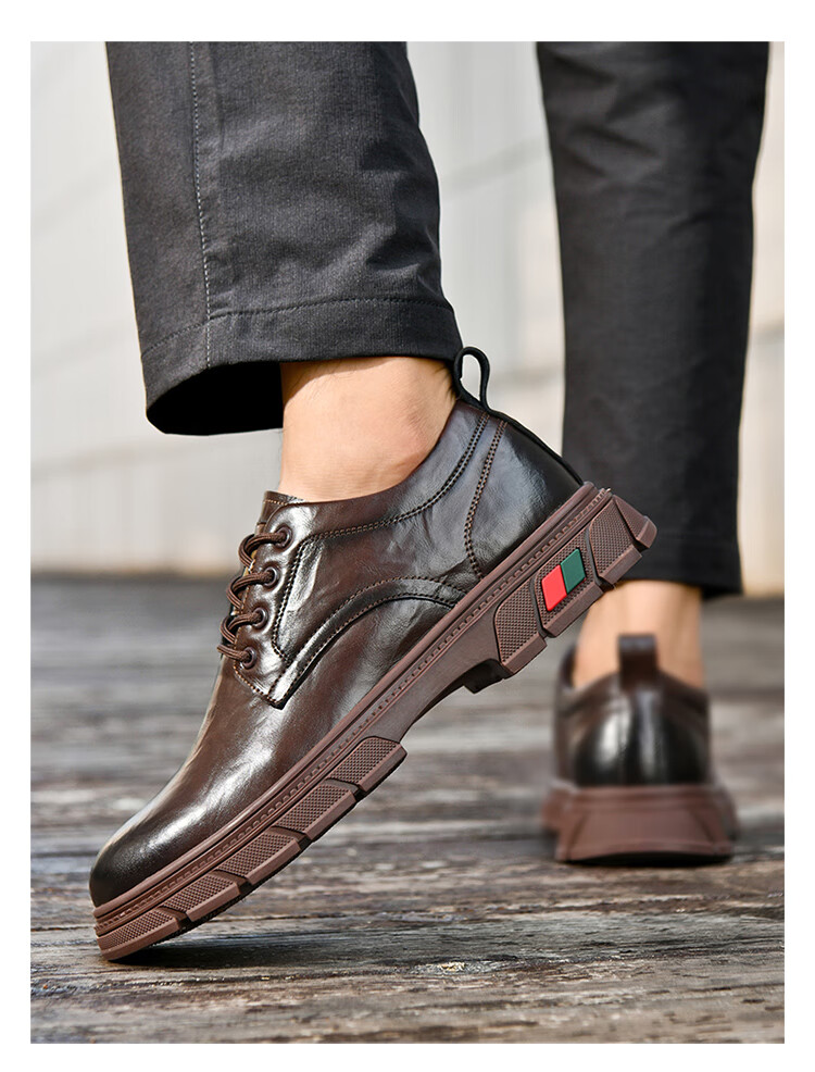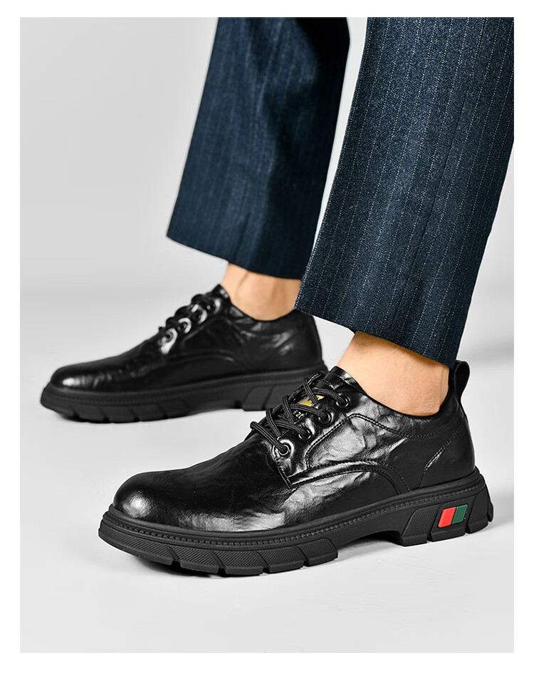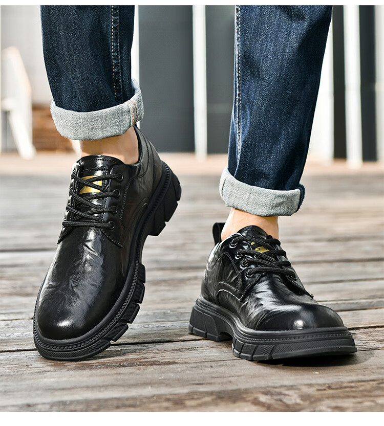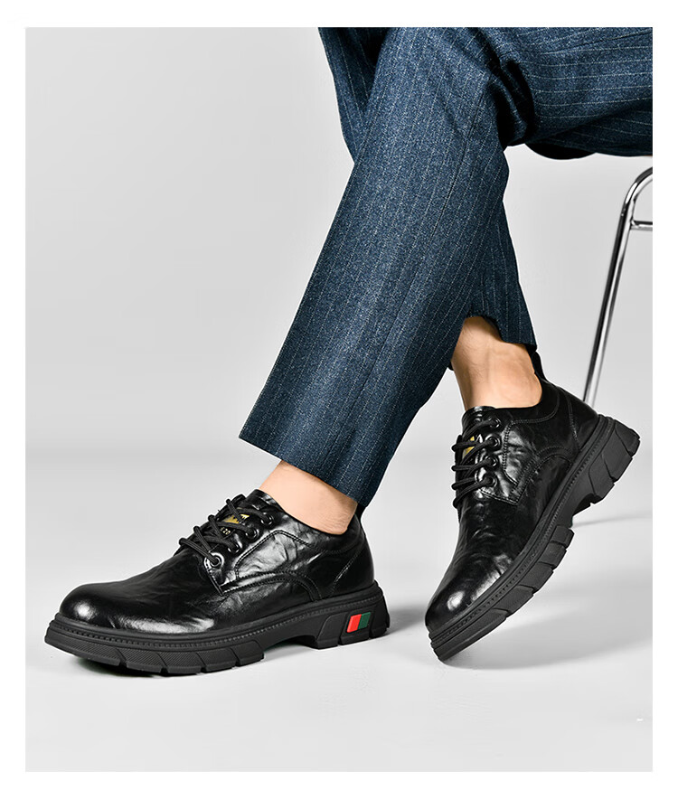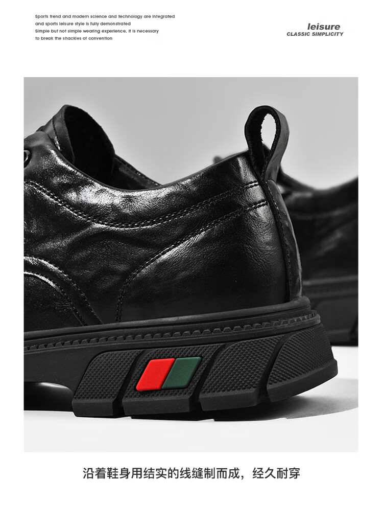 贵之步男鞋新款秋冬季牛皮商务皮鞋软底防滑增高缓震男款舒适厚底休闲鞋 黑色 (G201) 42 (运动鞋码)