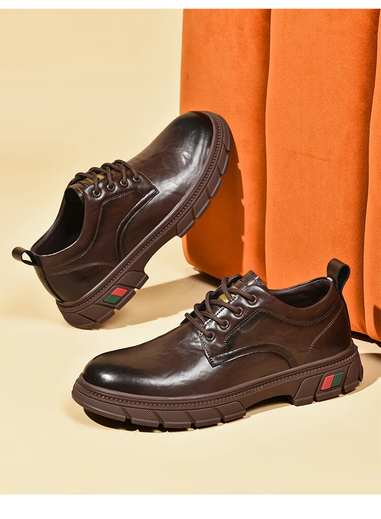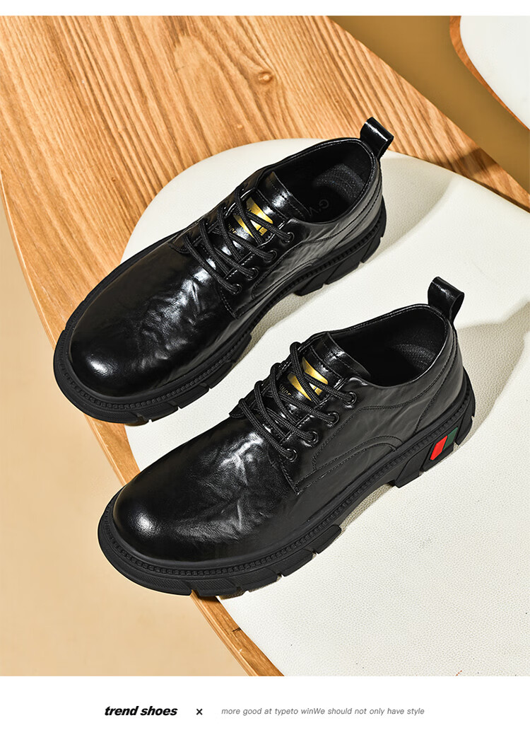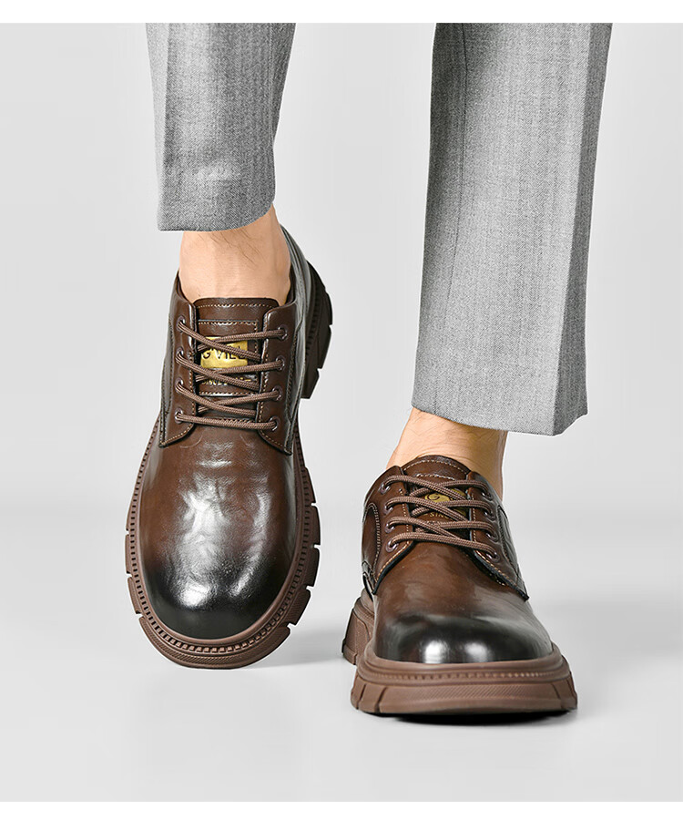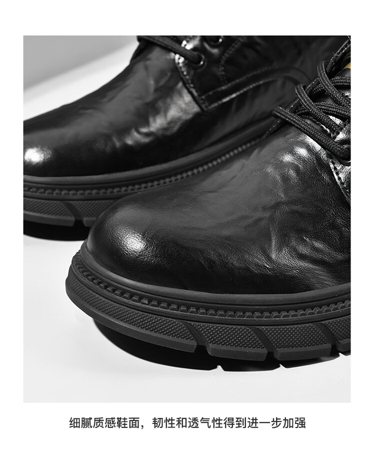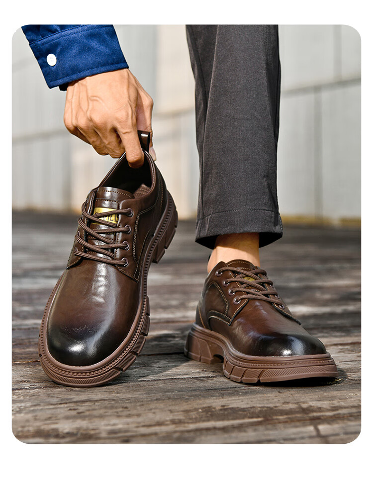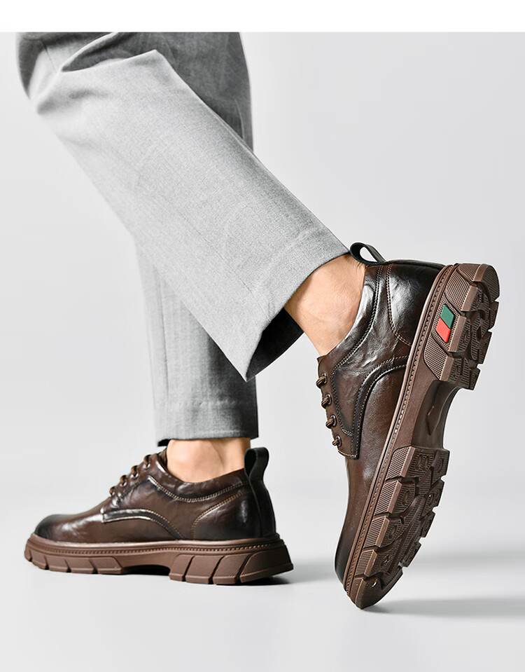 贵之步男鞋新款秋冬季牛皮商务皮鞋软底防滑增高缓震男款舒适厚底休闲鞋 黑色 (G201) 42 (运动鞋码)