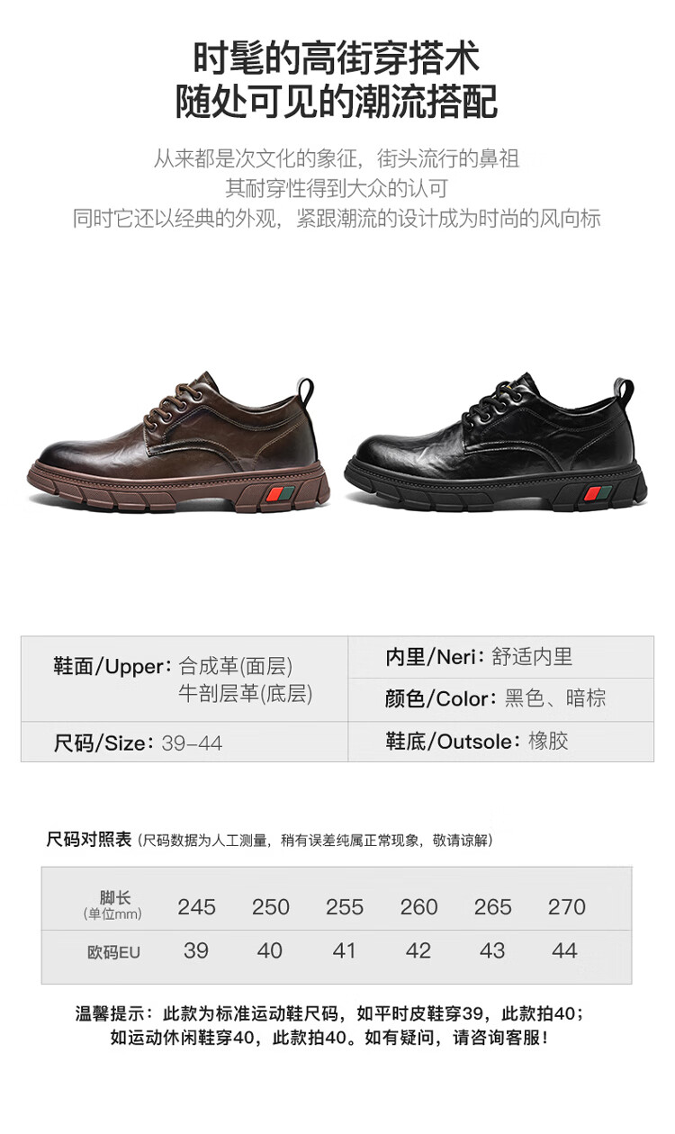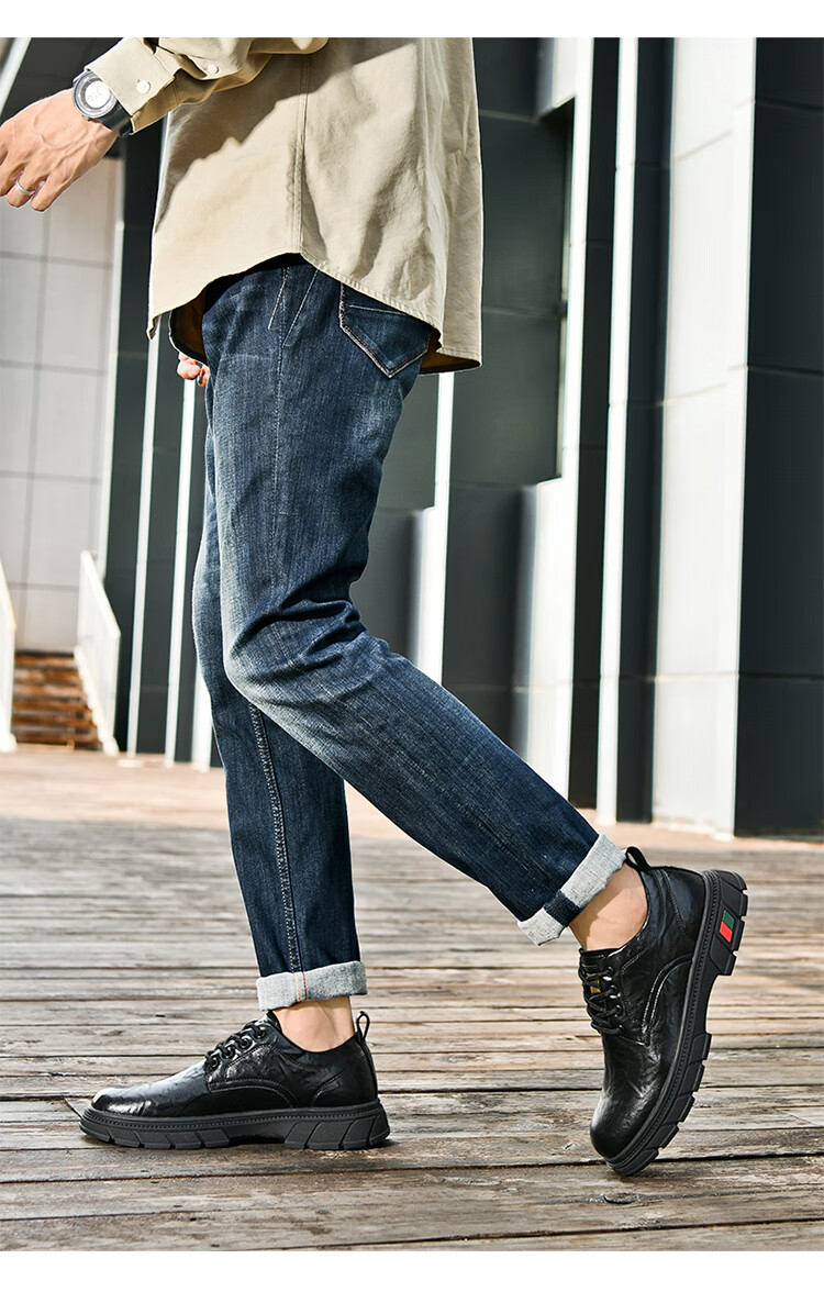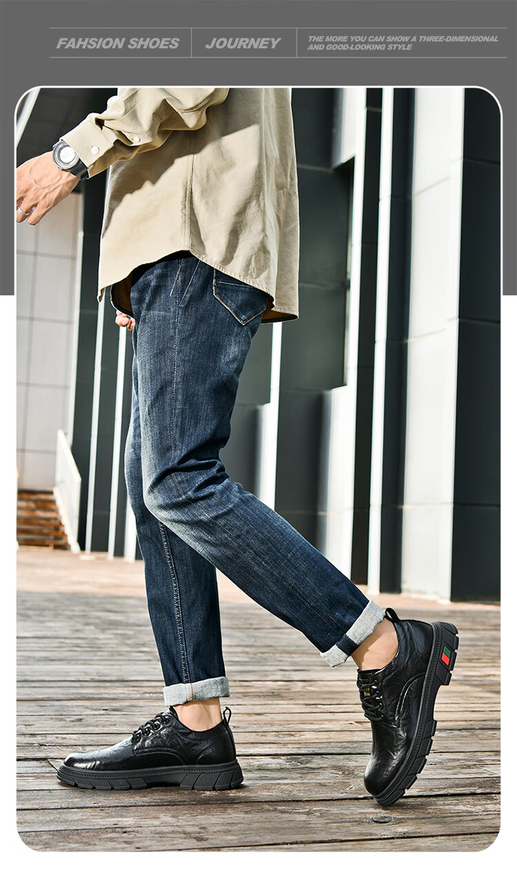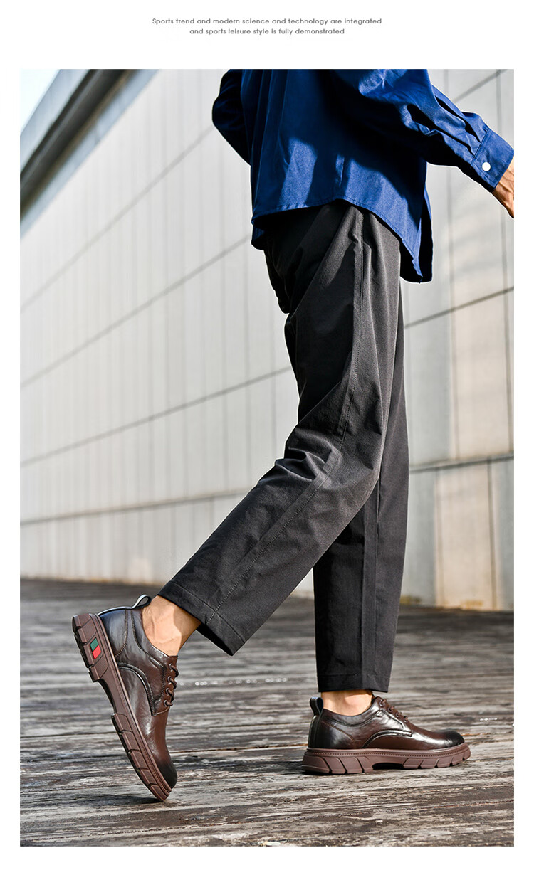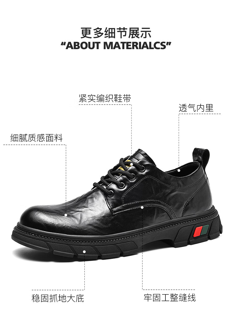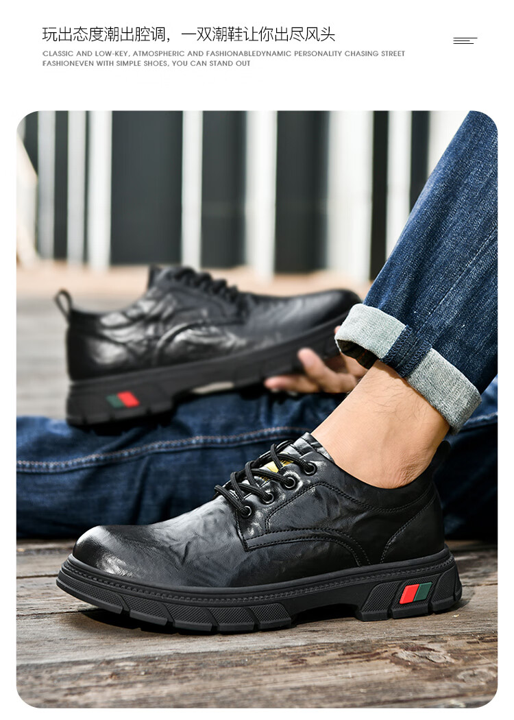 贵之步男鞋新款秋冬季牛皮商务皮鞋软底防滑增高缓震男款舒适厚底休闲鞋 黑色 (G201) 42 (运动鞋码)