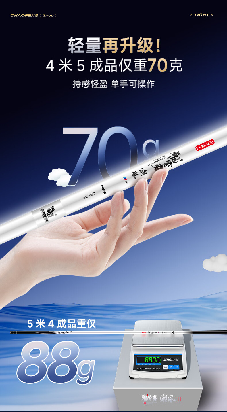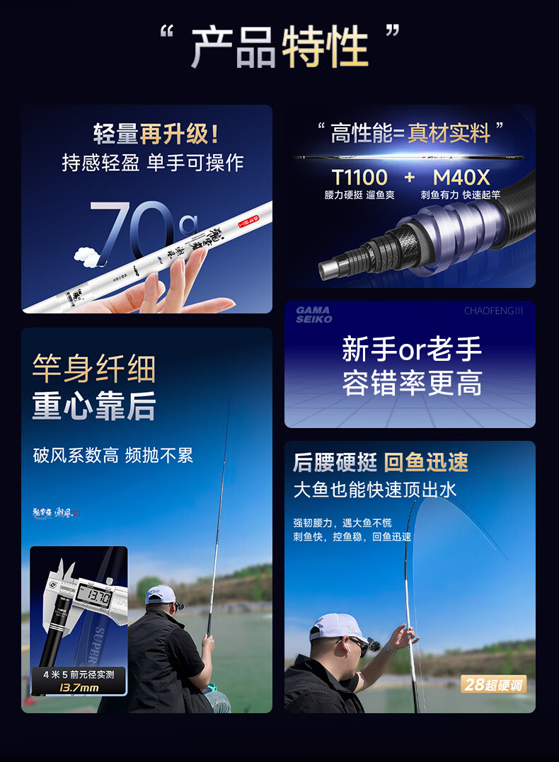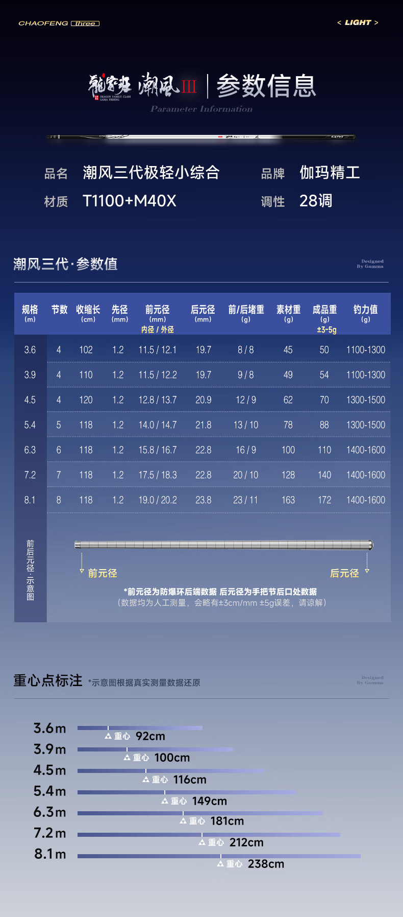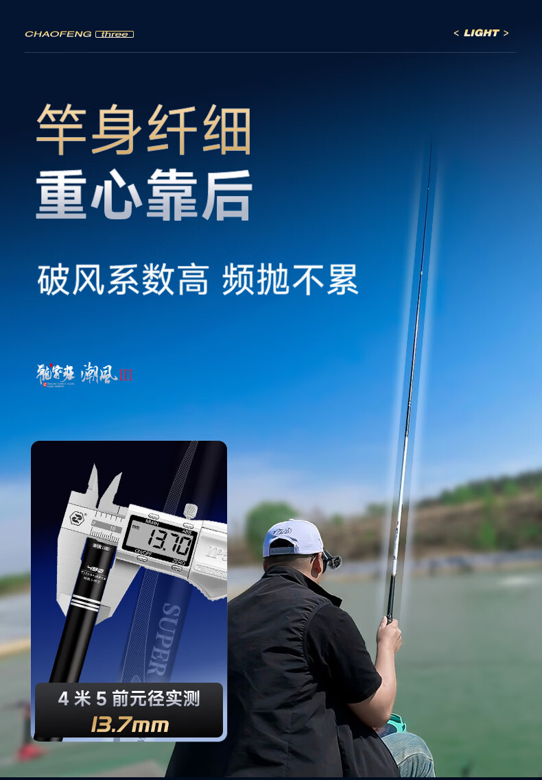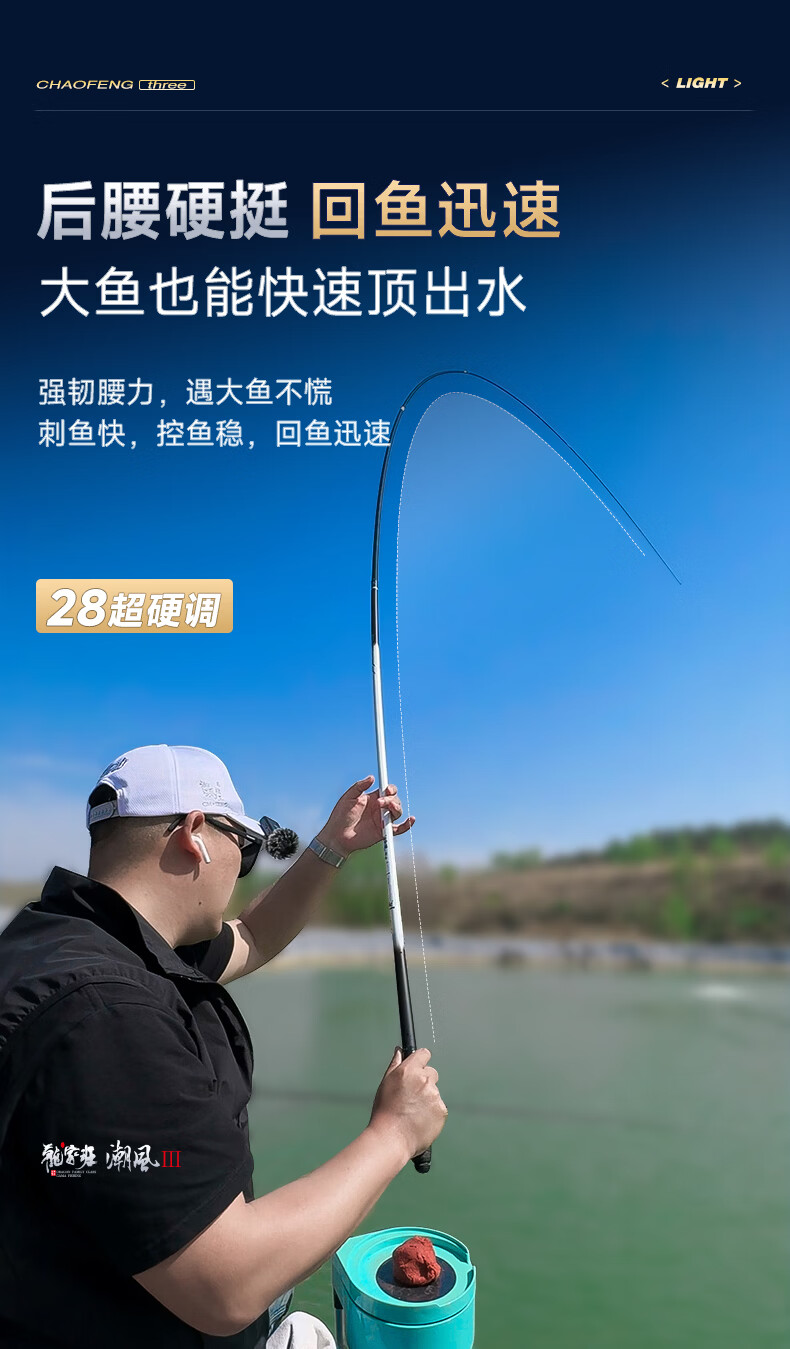 伽玛潮风三代28调鱼竿手竿超轻超细轻量碳素大物杆台钓竿5.4米钓鱼竿 5.4m 【成品重85克】小锥度轻细