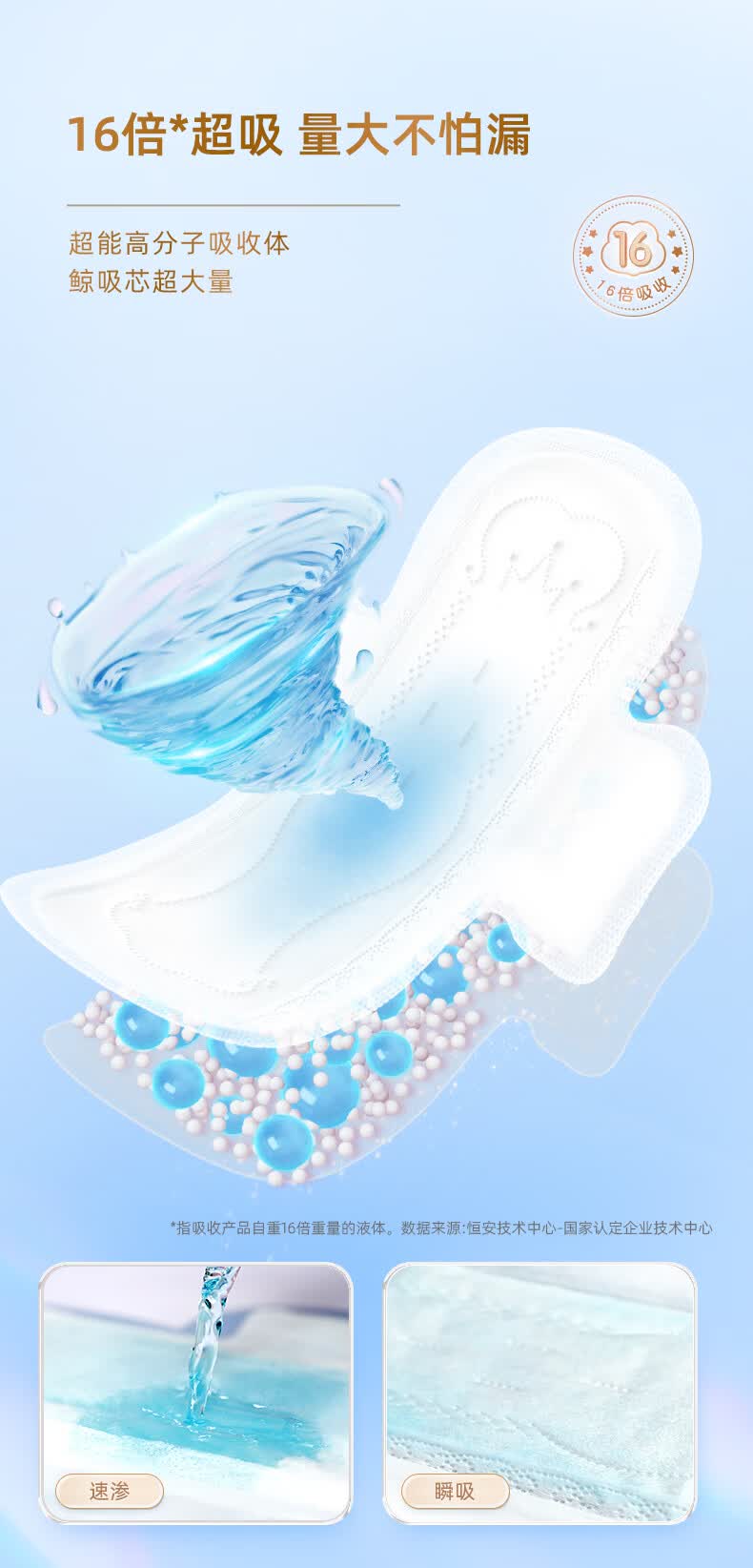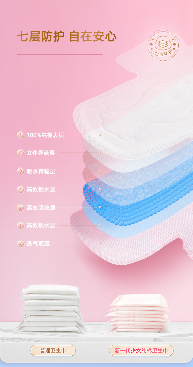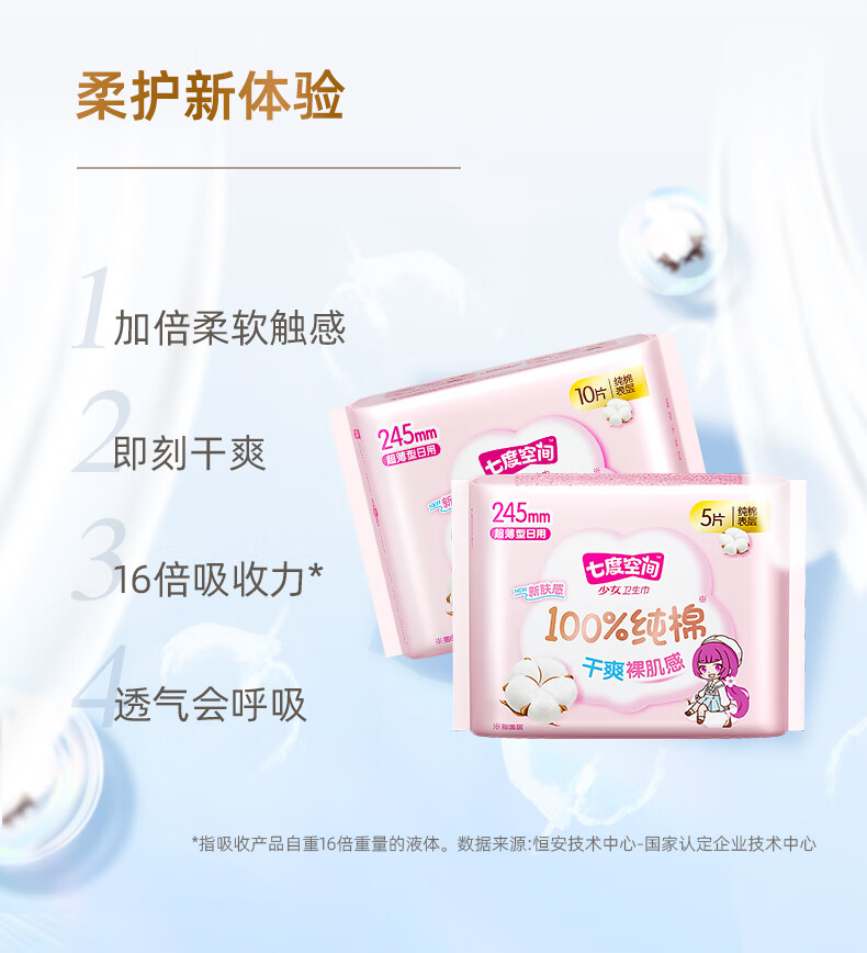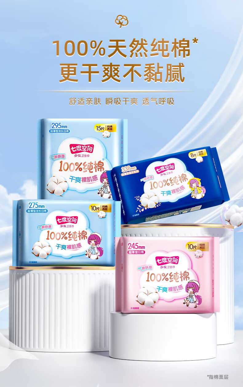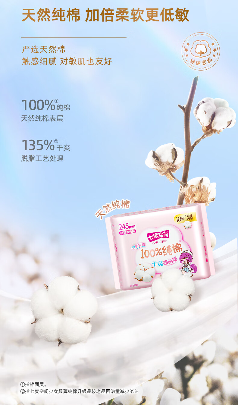 七度空间卫生巾姨妈巾少女超薄纯棉超长夜用卫生巾护垫批发 纯棉338mm*40片