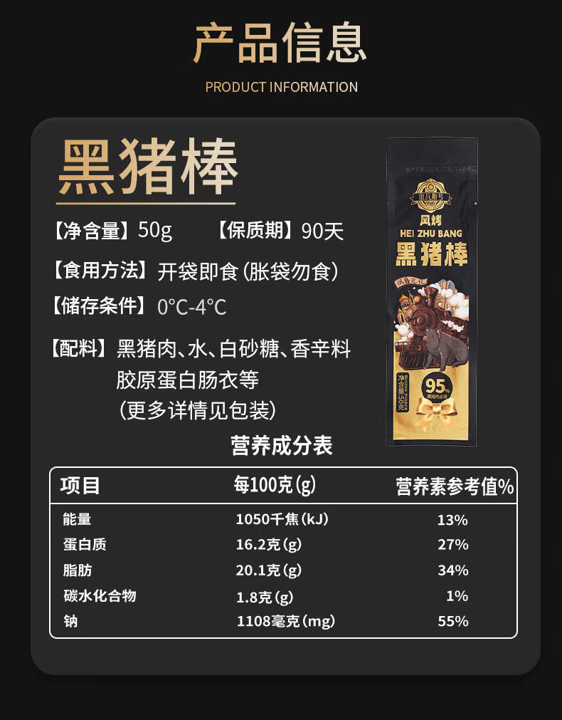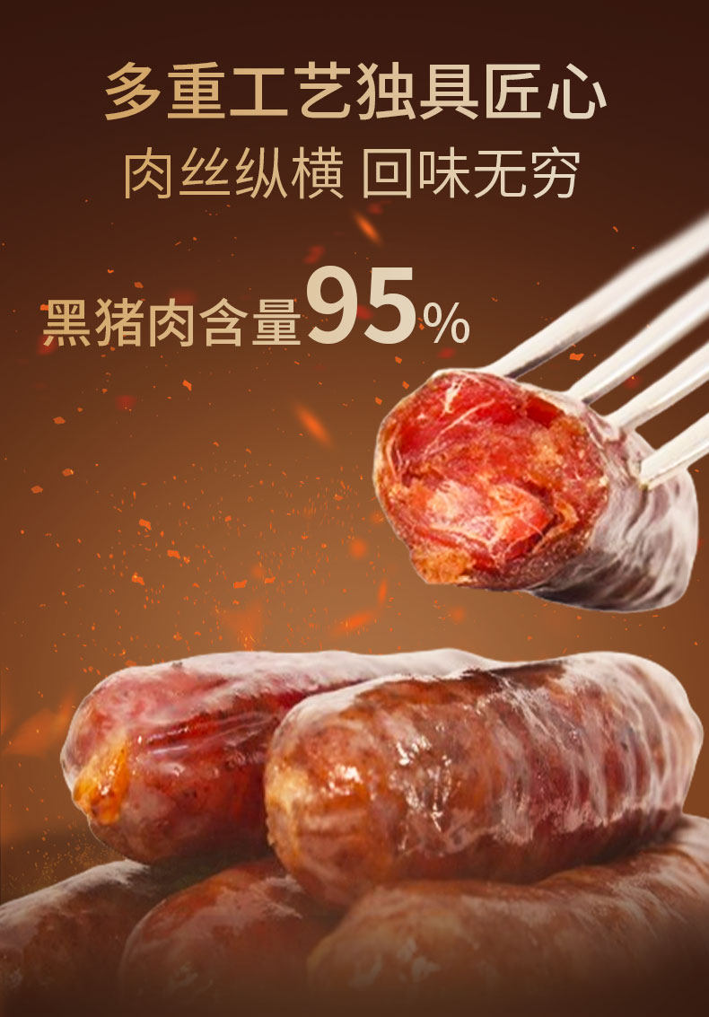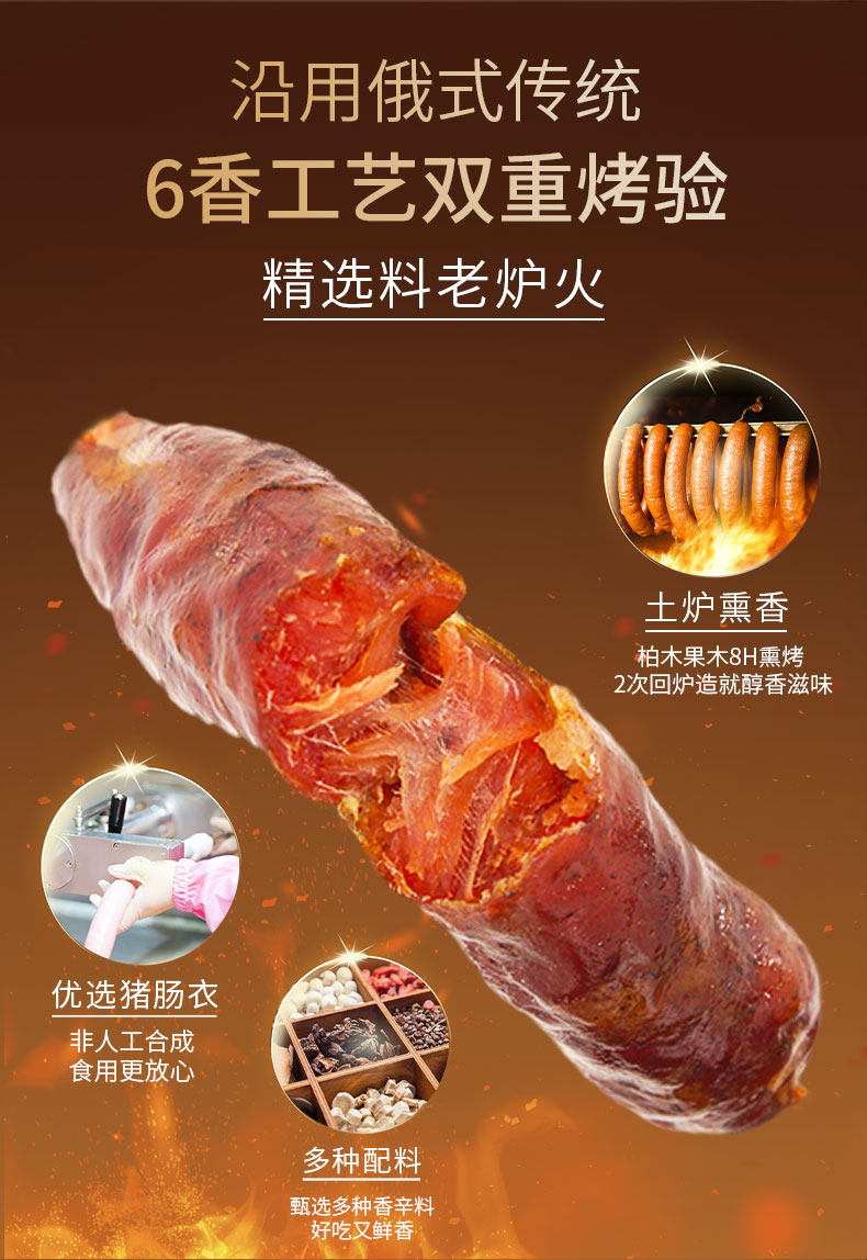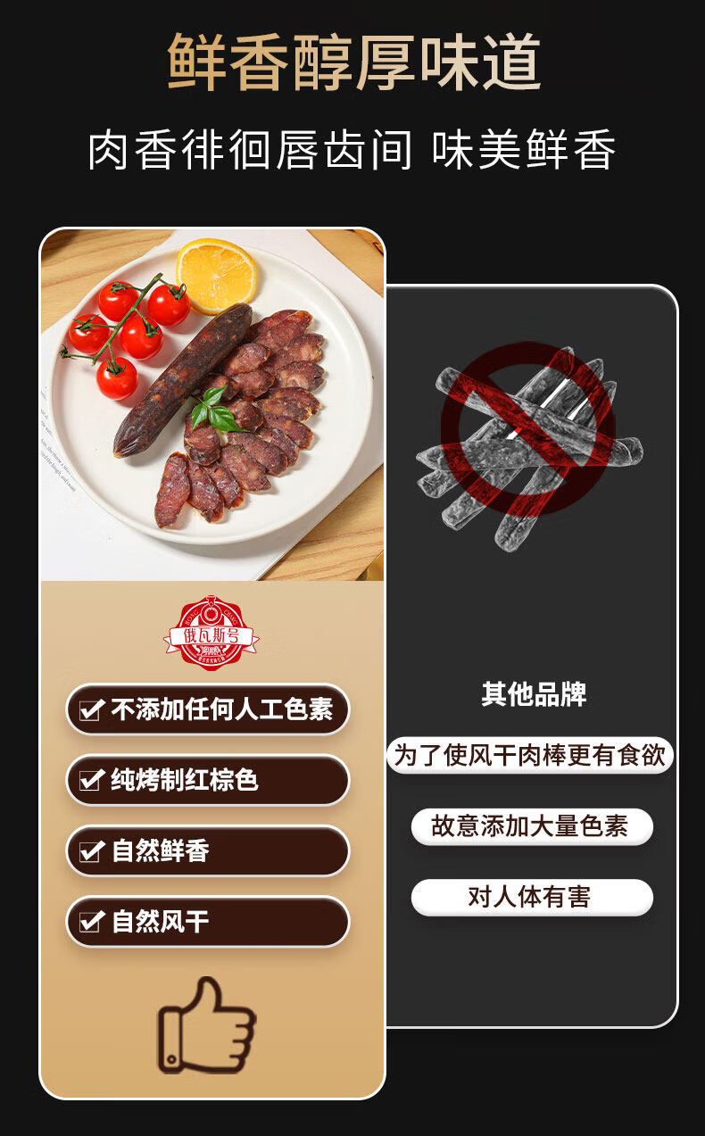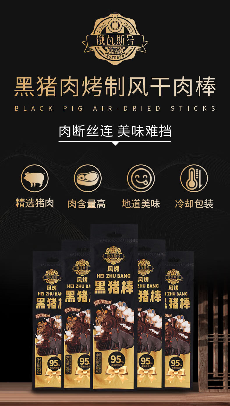 俄瓦斯号黑猪肉烤 烤制风干红肠 开袋即食熟食95%的肉含量 黑猪肉棒50g*15袋