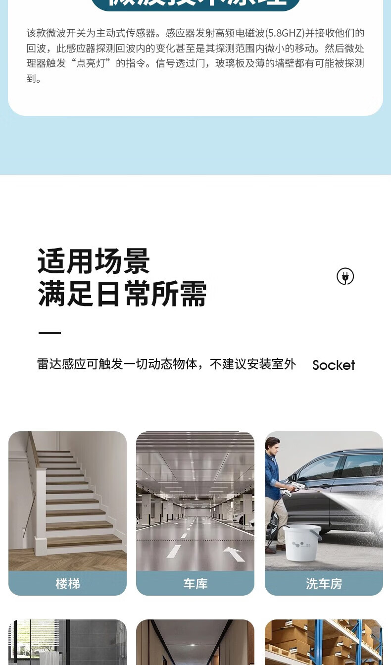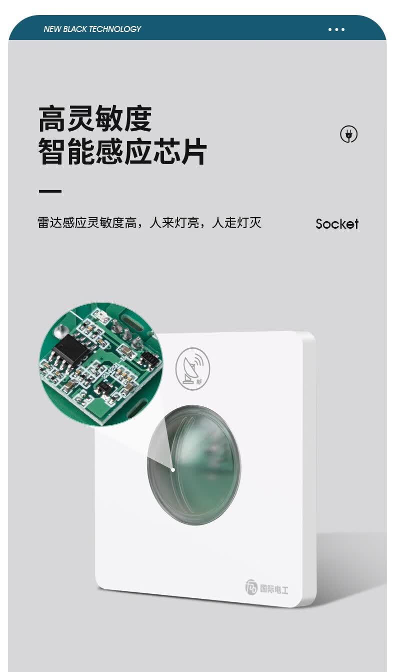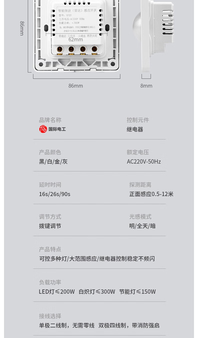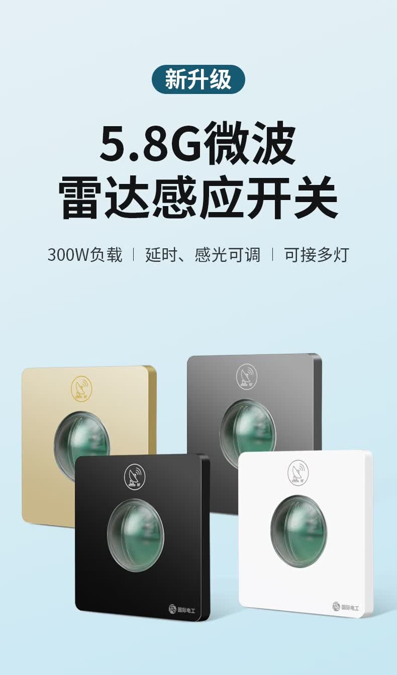 国际电工86型暗装微波雷达感应开关车库楼道LED灯家用220V延时光控感应器 二线制单火【白色】不可调