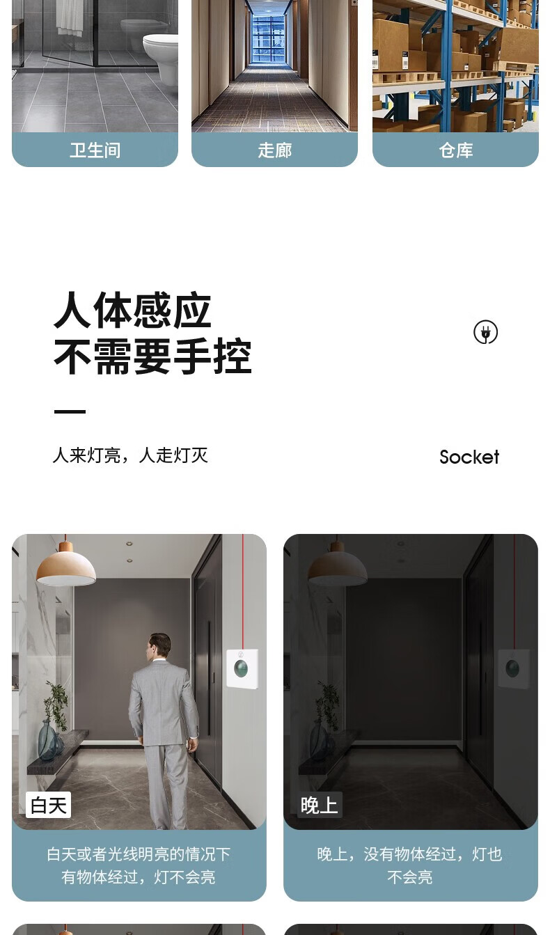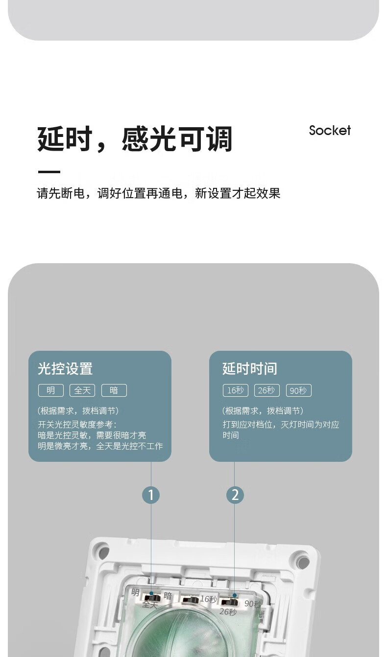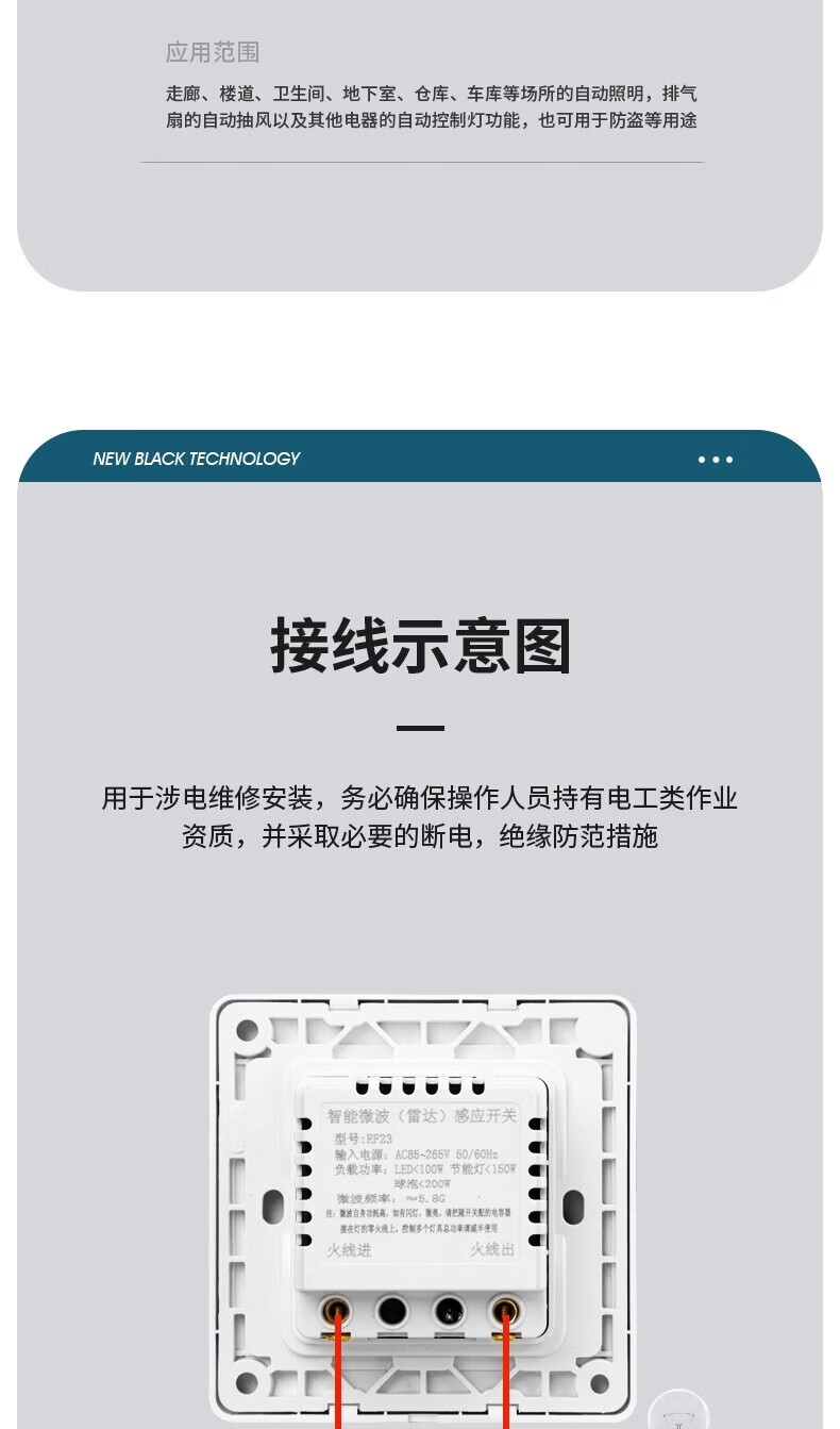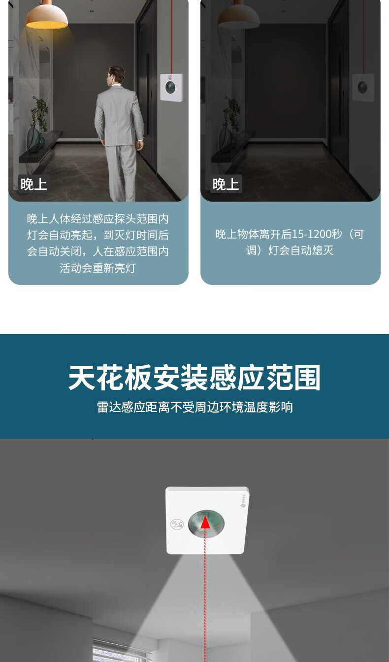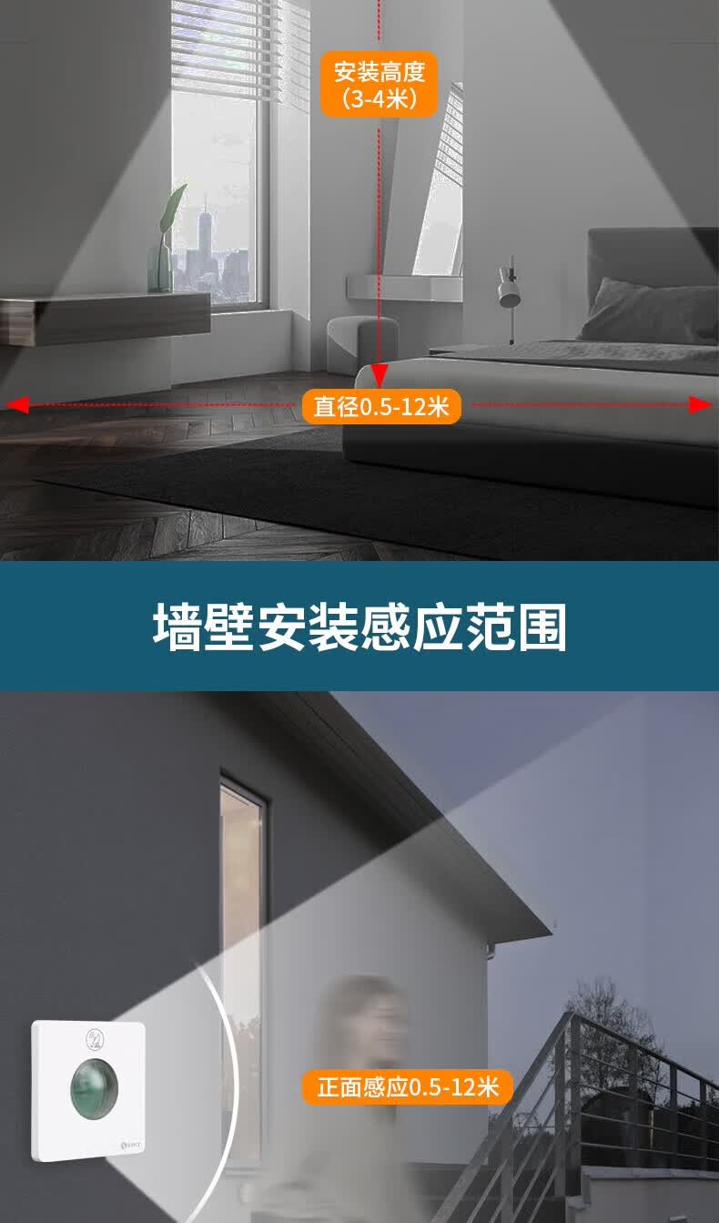 国际电工86型暗装微波雷达感应开关车库楼道LED灯家用220V延时光控感应器 二线制单火【白色】不可调