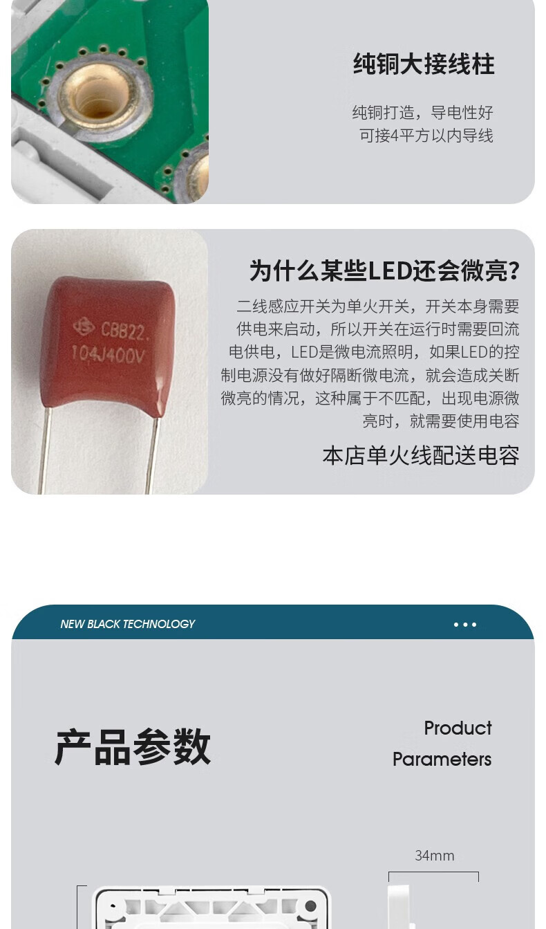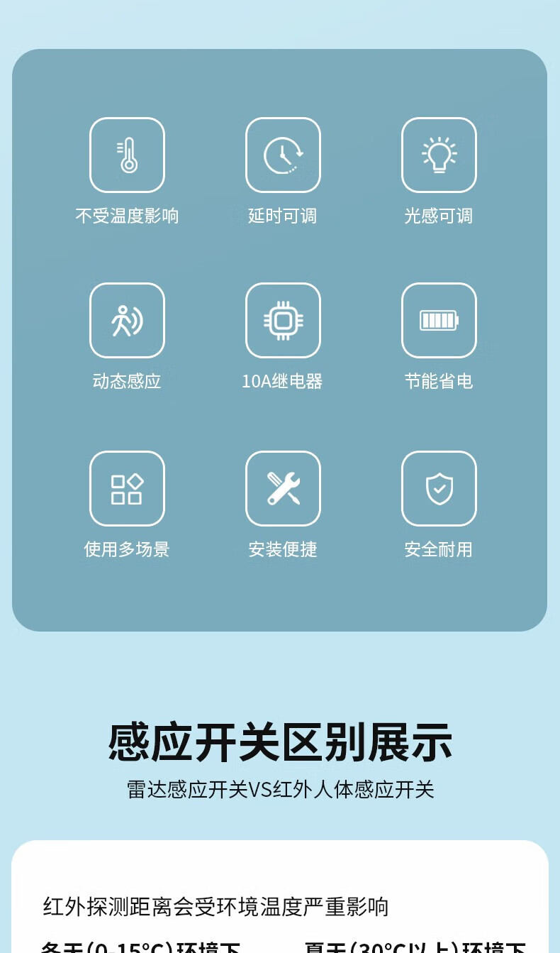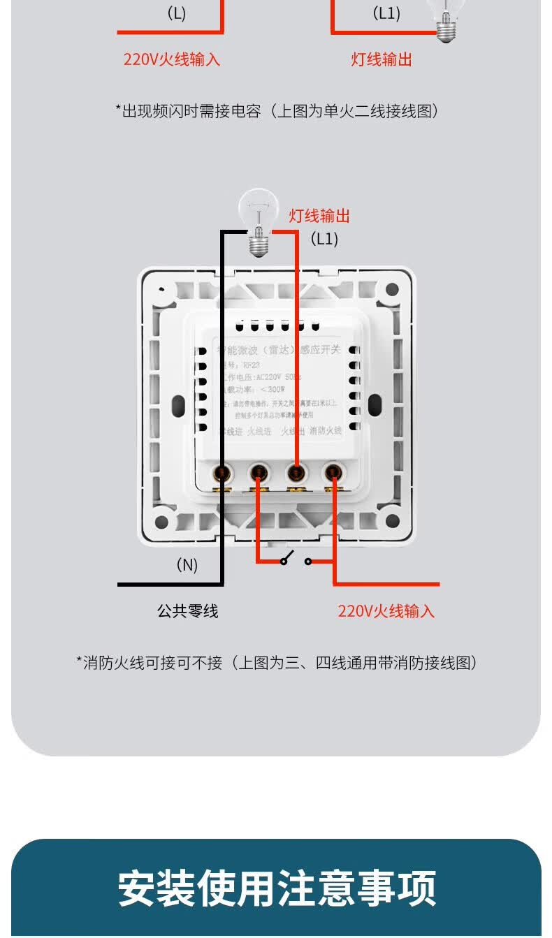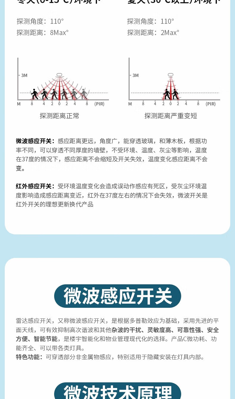 国际电工86型暗装微波雷达感应开关车库楼道LED灯家用220V延时光控感应器 二线制单火【白色】不可调