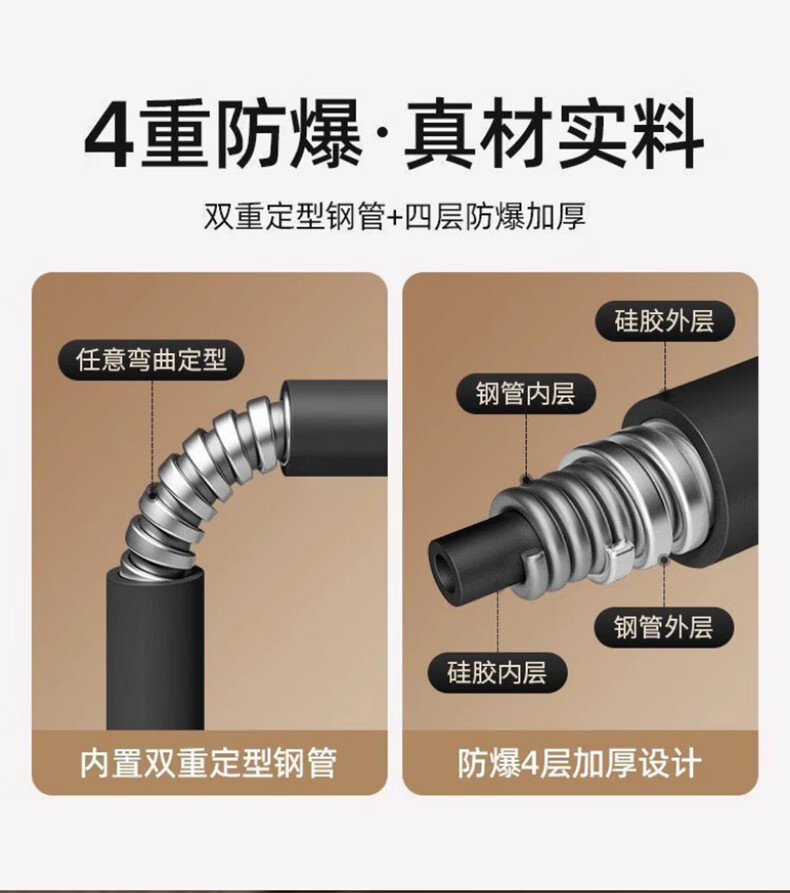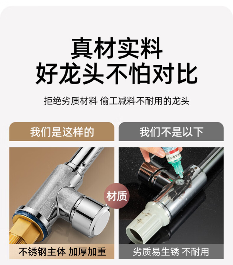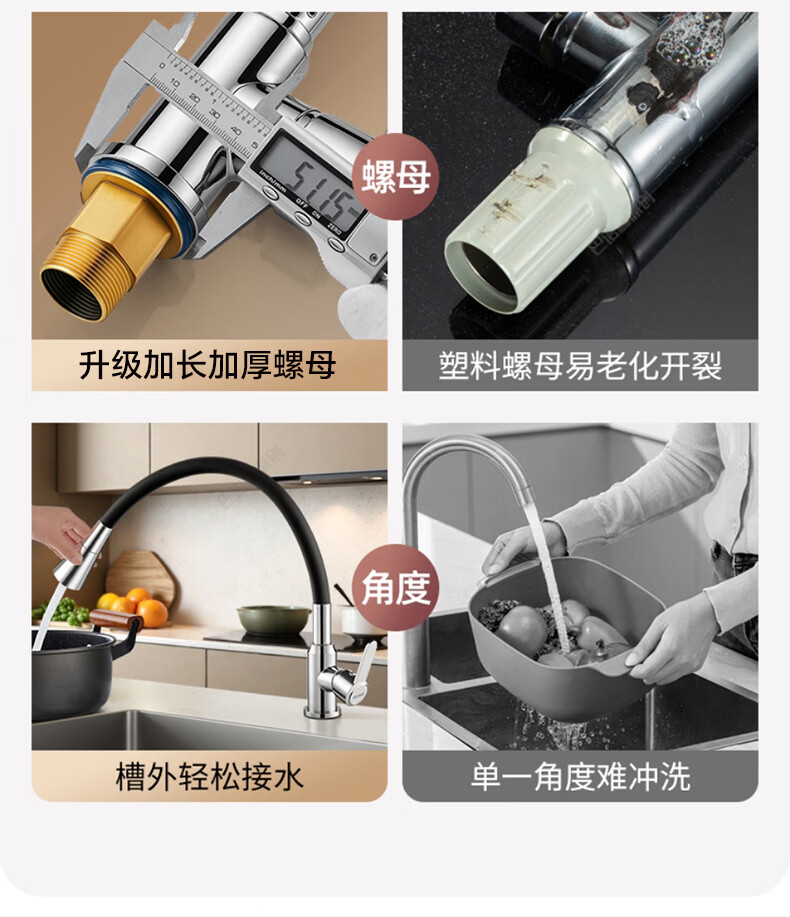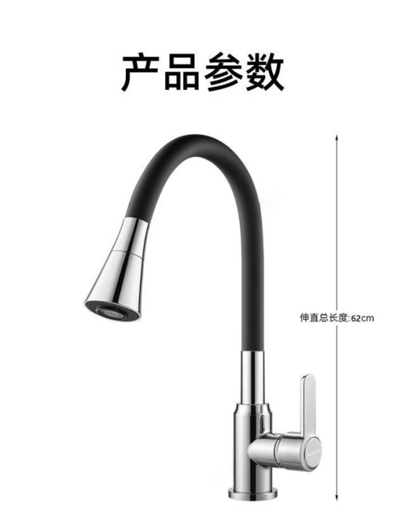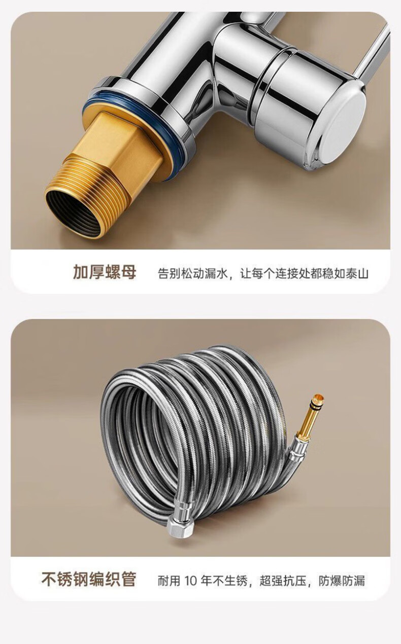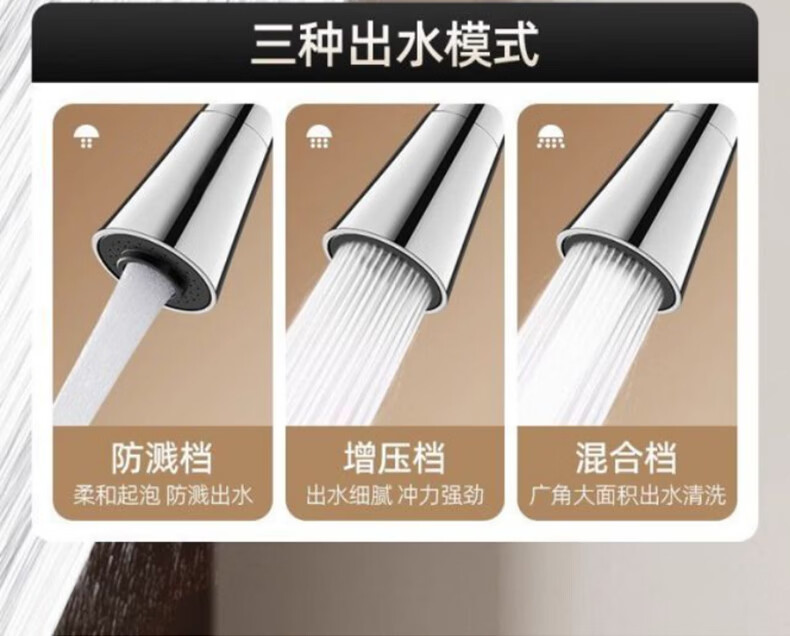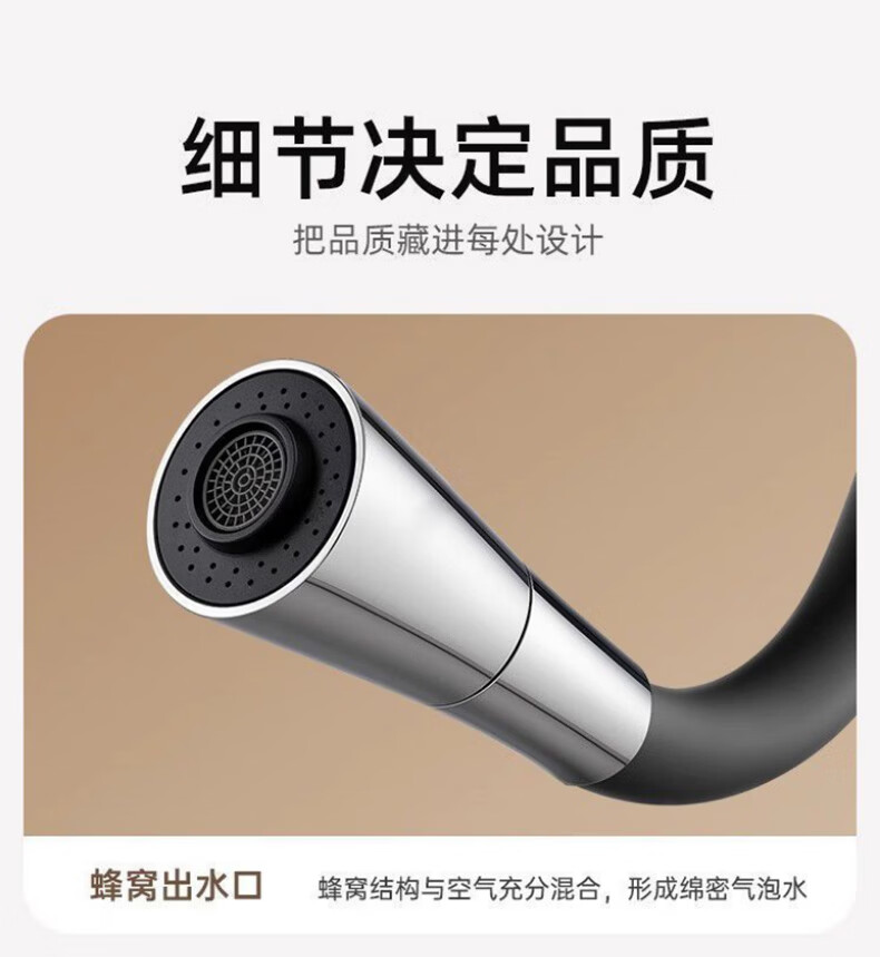Rosecret【德国】厨房水龙头高抛冷热水器二合一万向旋转不锈钢洗菜盆龙头 三档双温出水厨房龙头【银黑色】 增压防溅丨配80cm冷热进水管*2