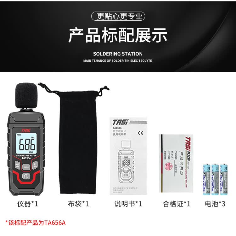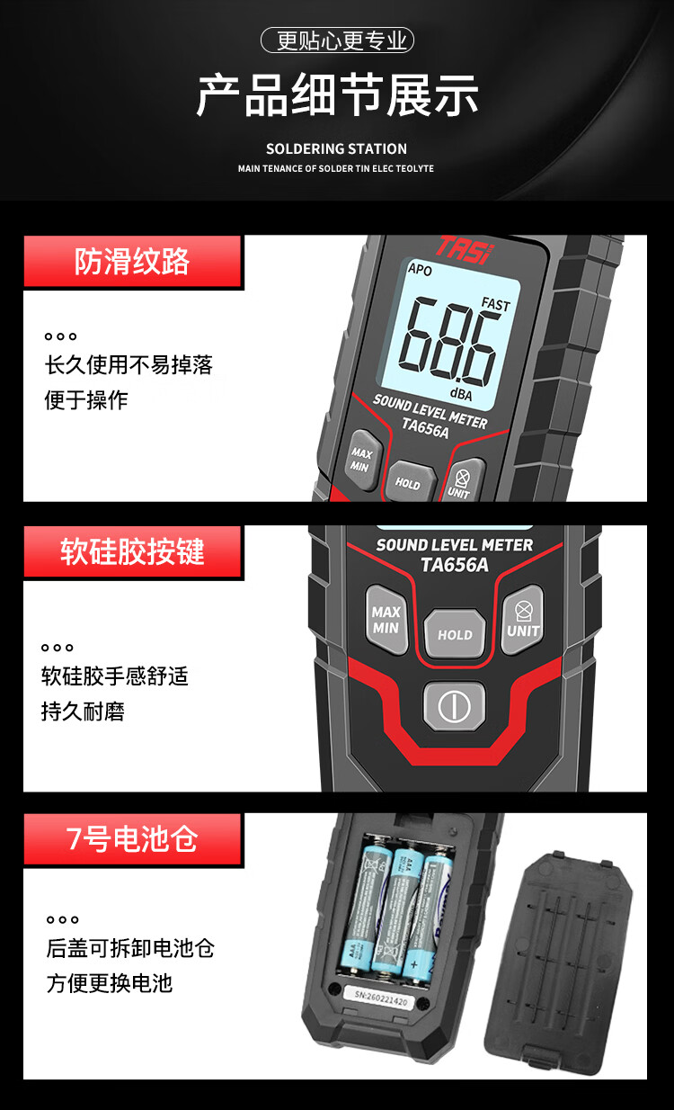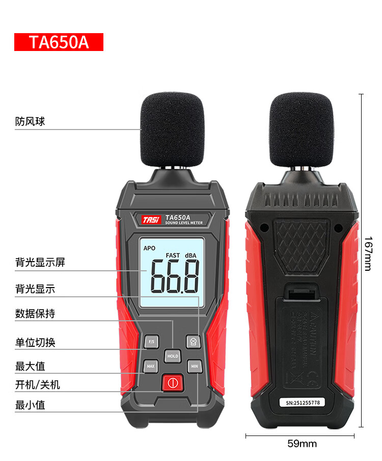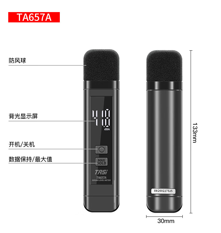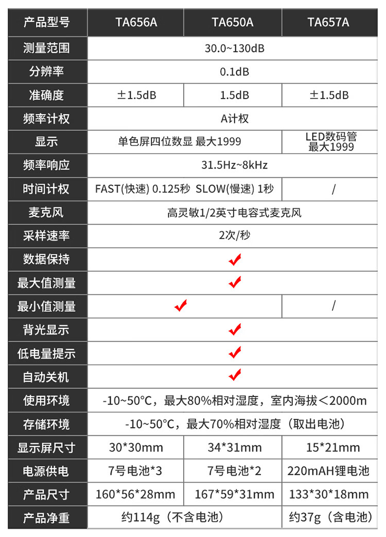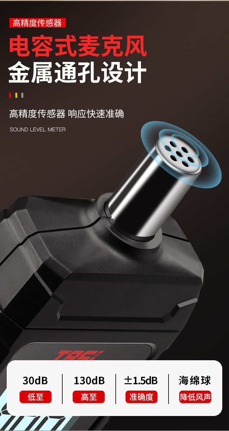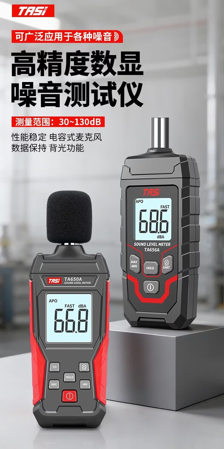 TASI高精度分贝仪工业环境专业级噪音计家用音量声级检测仪噪声测试仪 电池款TA656A【A计权/快慢计权】