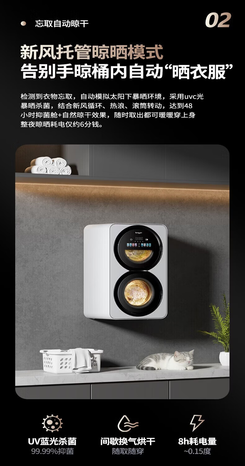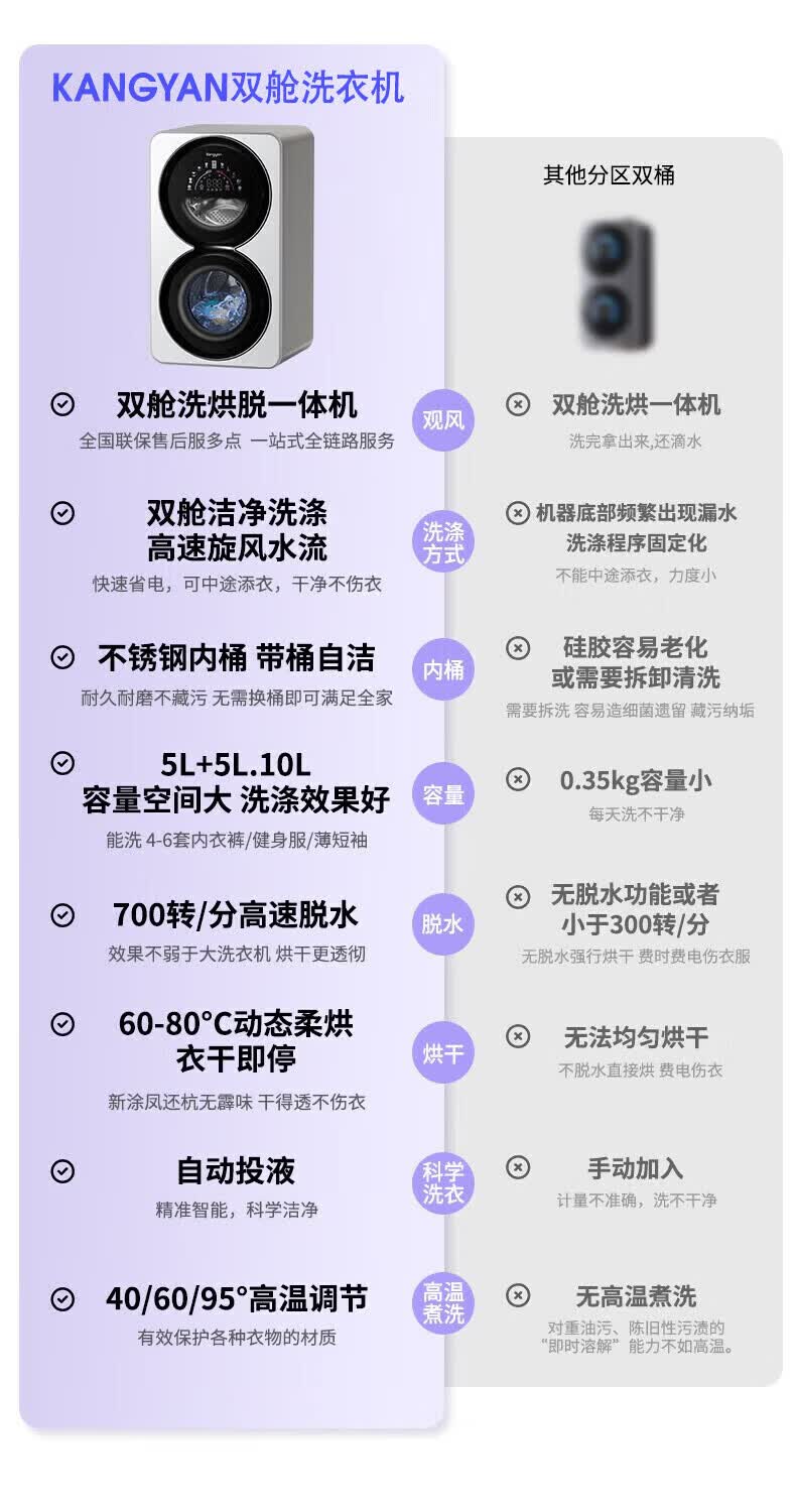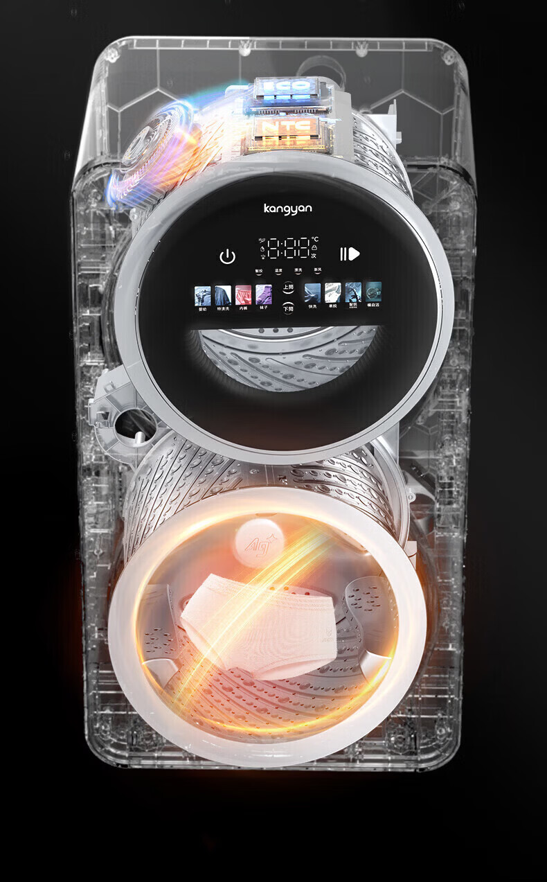 KANGYAN双桶分区洗护洗衣机 无刷电机静音 除菌除螨 99.99% 全自动小型洗脱一体机 【桌面款】洗烘一体机IAI自动投液I新风系统 一级能效IAI智能洗烘